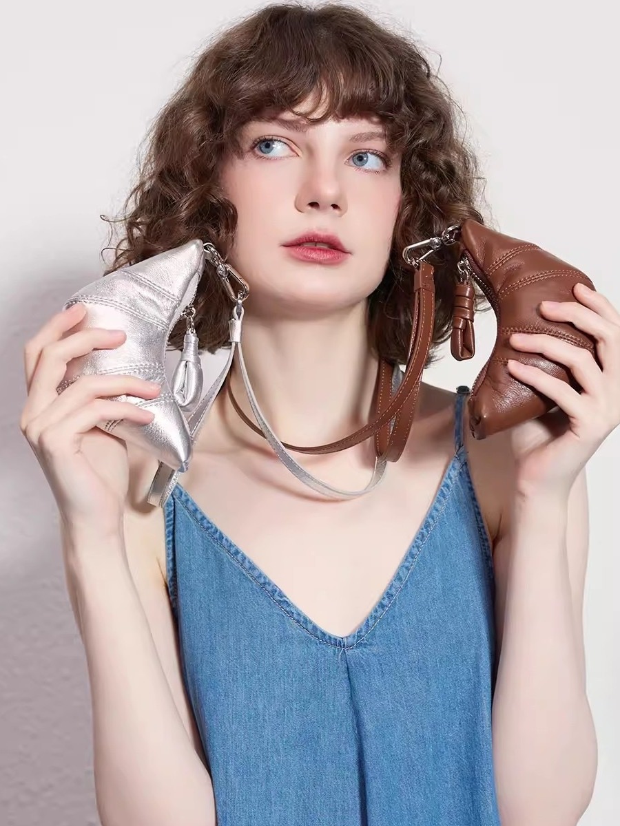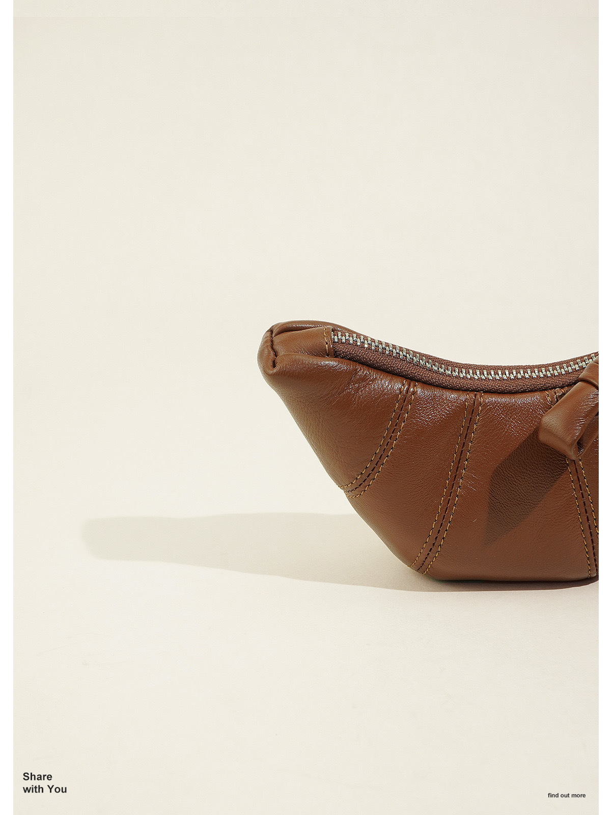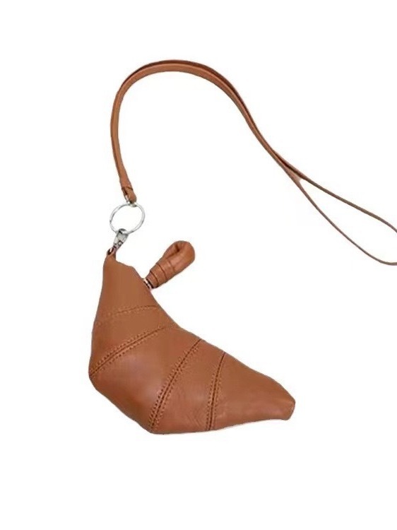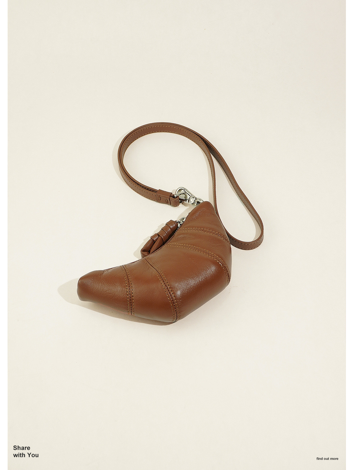 2025 도매 틈새 디자인 질감 부드러운 가죽 미니 크로와상 크로와상 복고풍 절묘한 휴대용 끈 동전 지갑