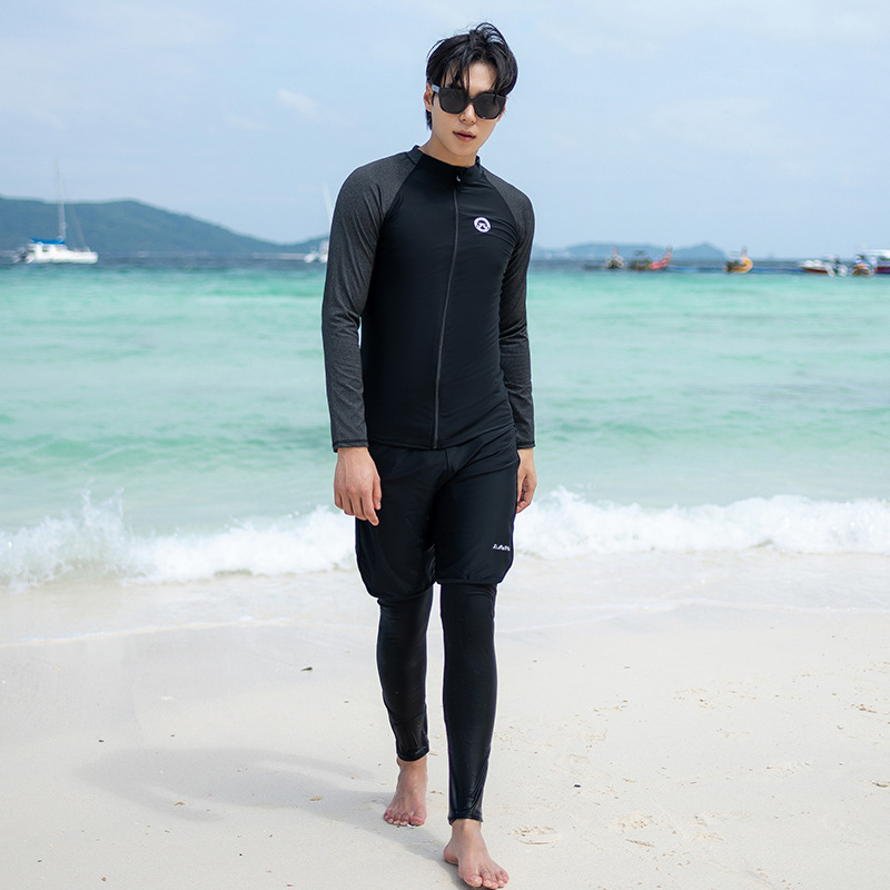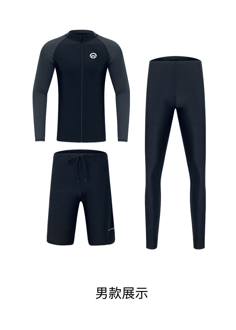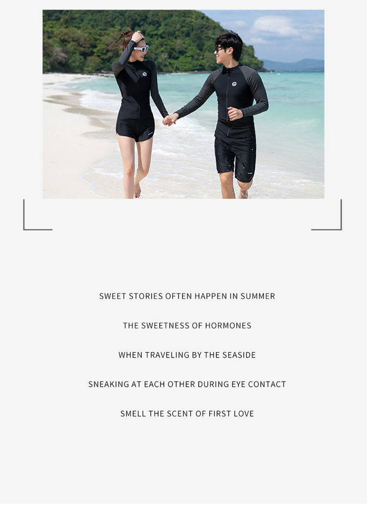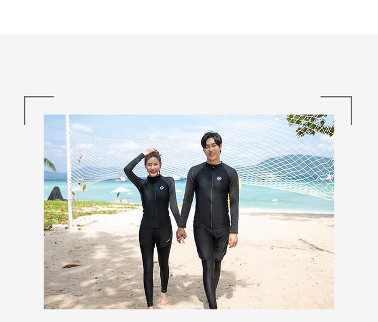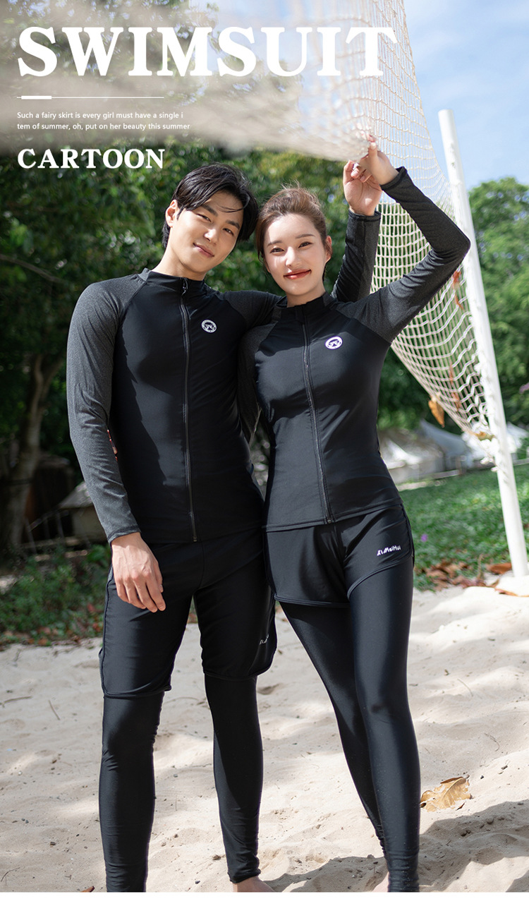 한 세대의 남성과 여성 수영복이 긴 소매 바지를 세트 배꼽 커버 슬림 보수적 인 커플 비치 의류
