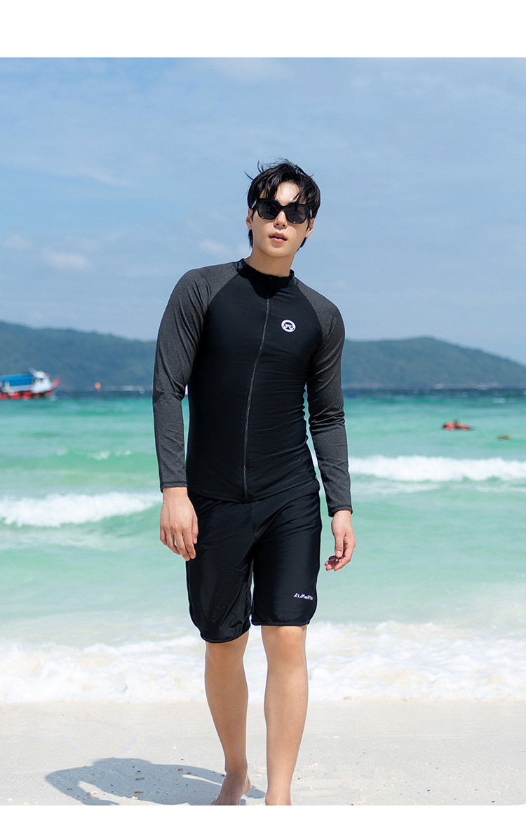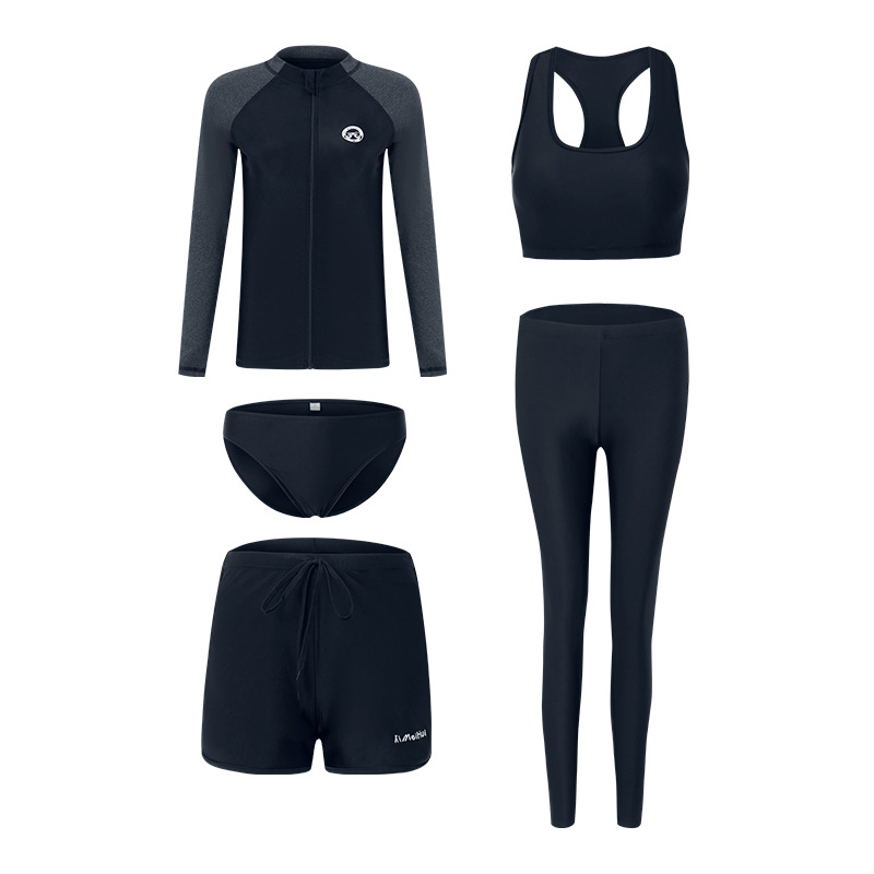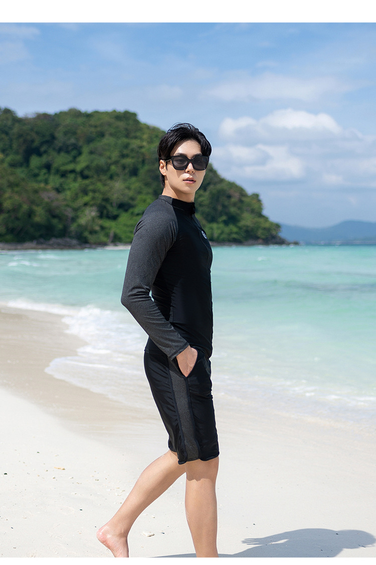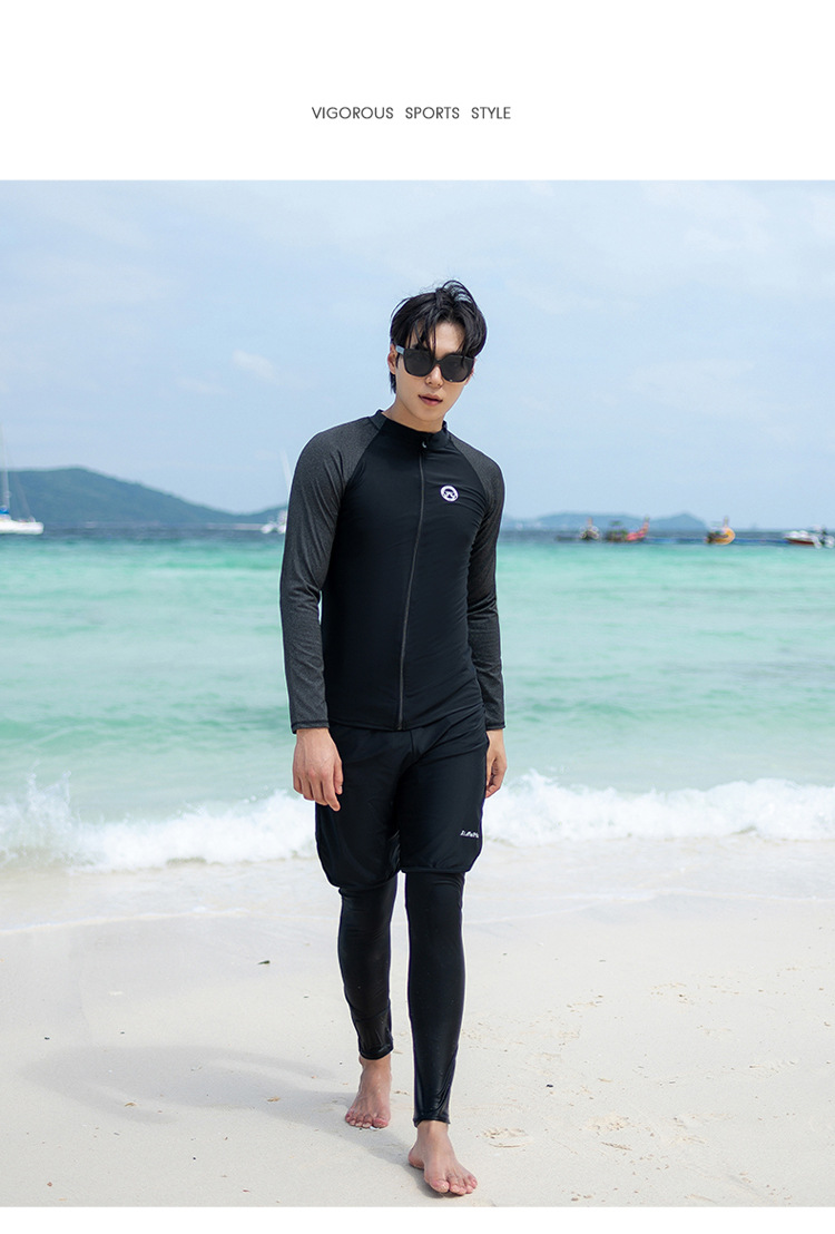 한 세대의 남성과 여성 수영복이 긴 소매 바지를 세트 배꼽 커버 슬림 보수적 인 커플 비치 의류
