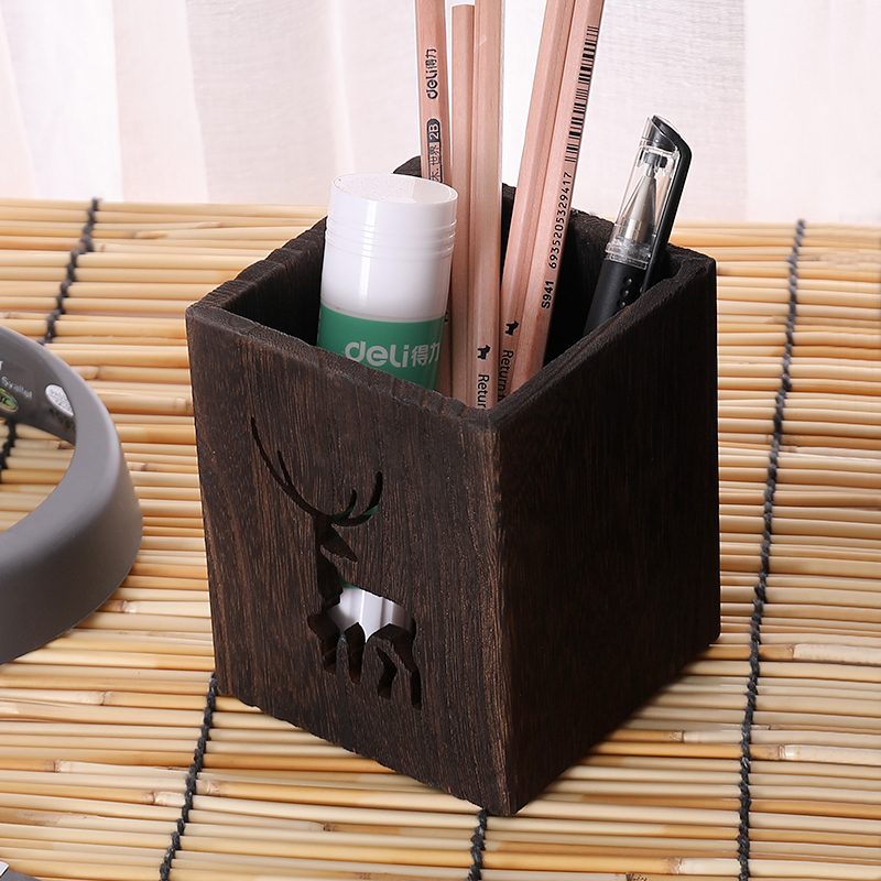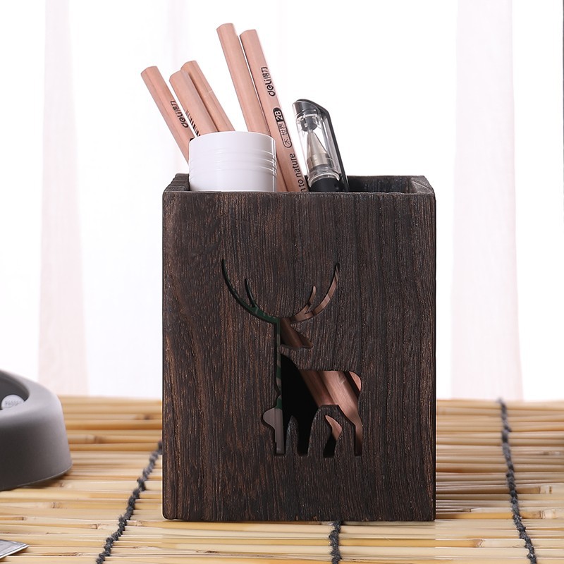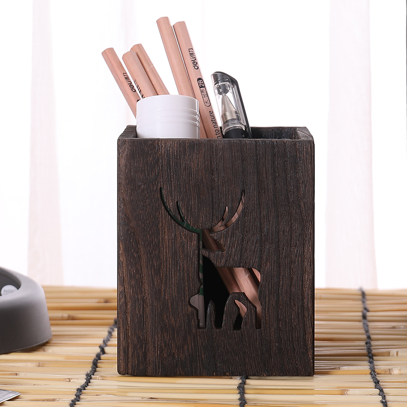 창조적 인 패션 귀여운 펜 홀더 단단한 나무 중국 복고풍 메이크업 브러시 데스크탑 저장 상자 사무실 용품
