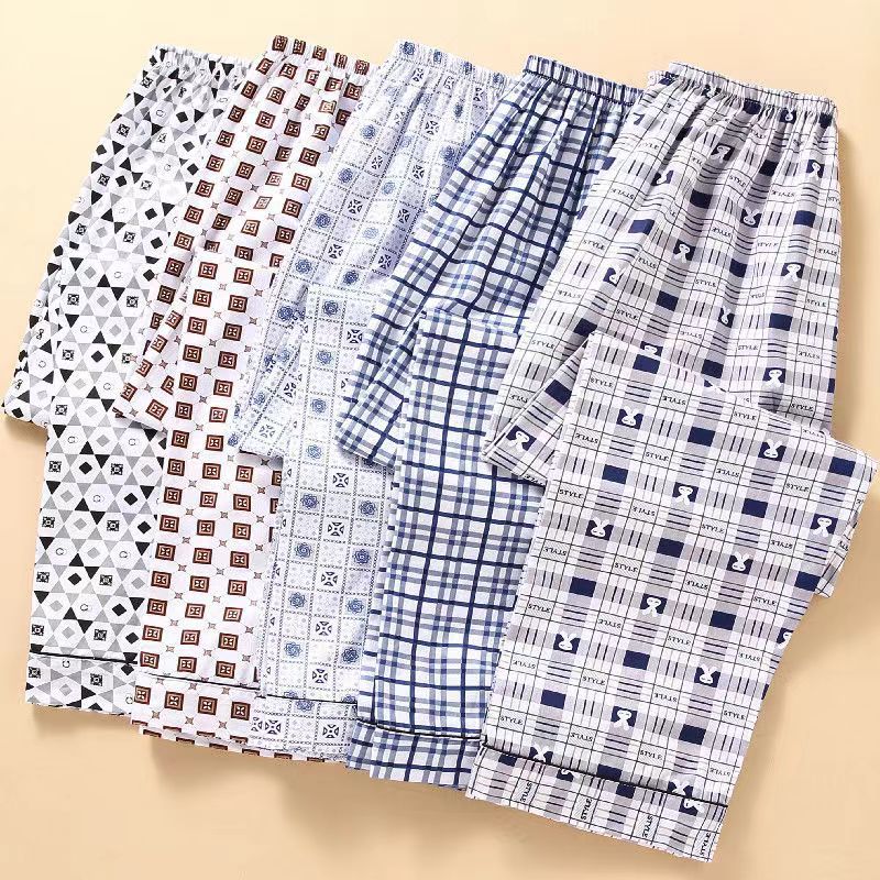 고급 순면 남성용 잠옷 바지, 봄/가을용, 특대 사이즈, 에어컨 바지, 외출용, 루즈핏, 캐주얼 홈웨어 바지