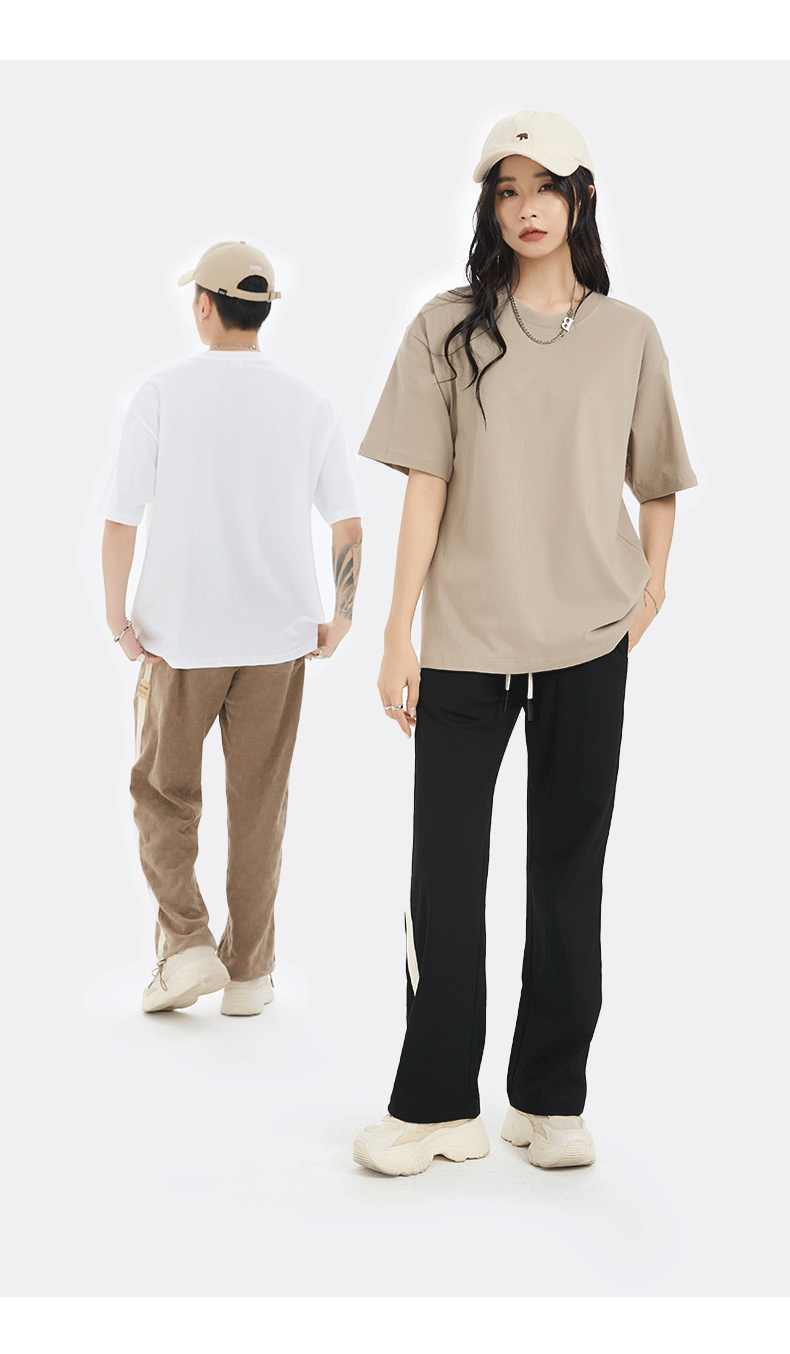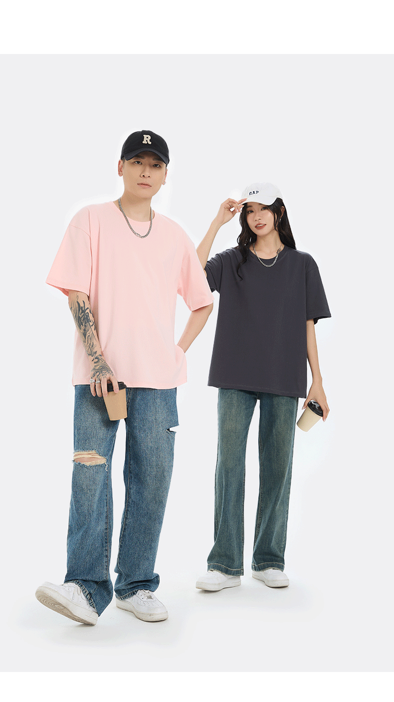 여름 반팔 티셔츠 남성용 헤비웨이트 220G 순면 드롭숄더 반팔 상의 루즈핏 라운드넥 남녀 공용 기본 티셔츠