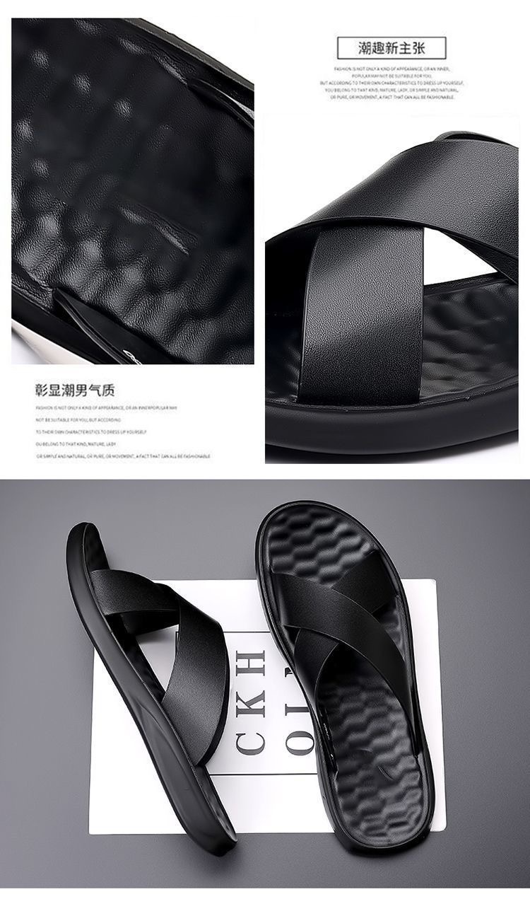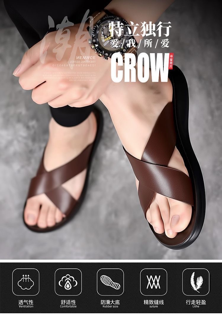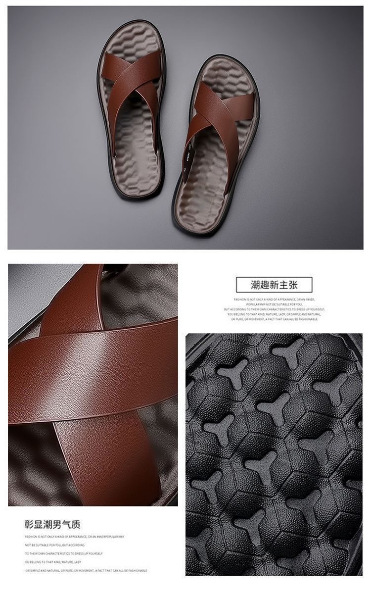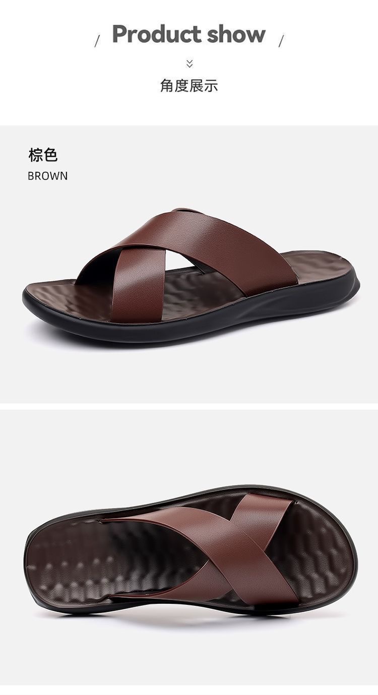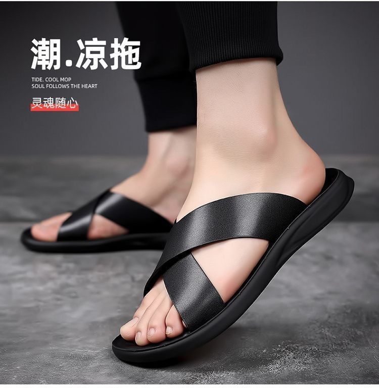 새로운 가죽 소가죽 슬리퍼 조수 남성 신발 여름 캐주얼 탈취제 야외 남성 슬리퍼 헤어 세대