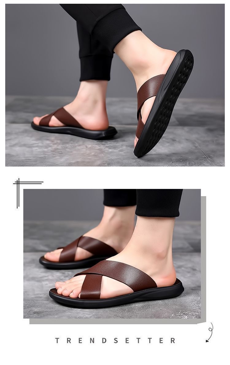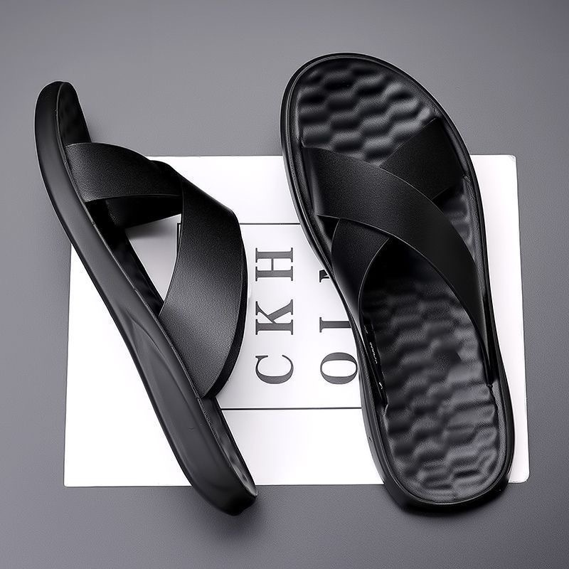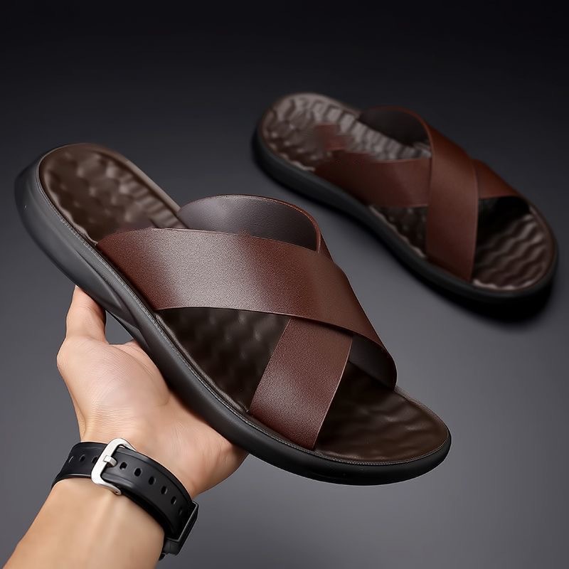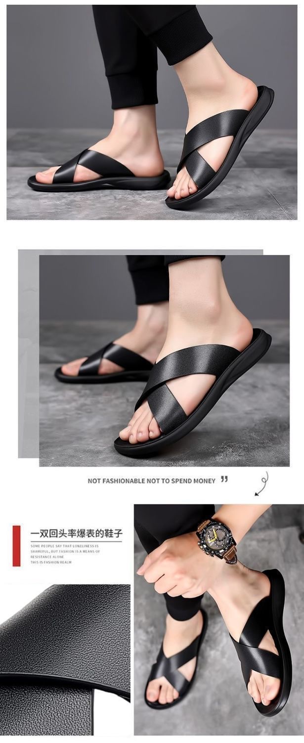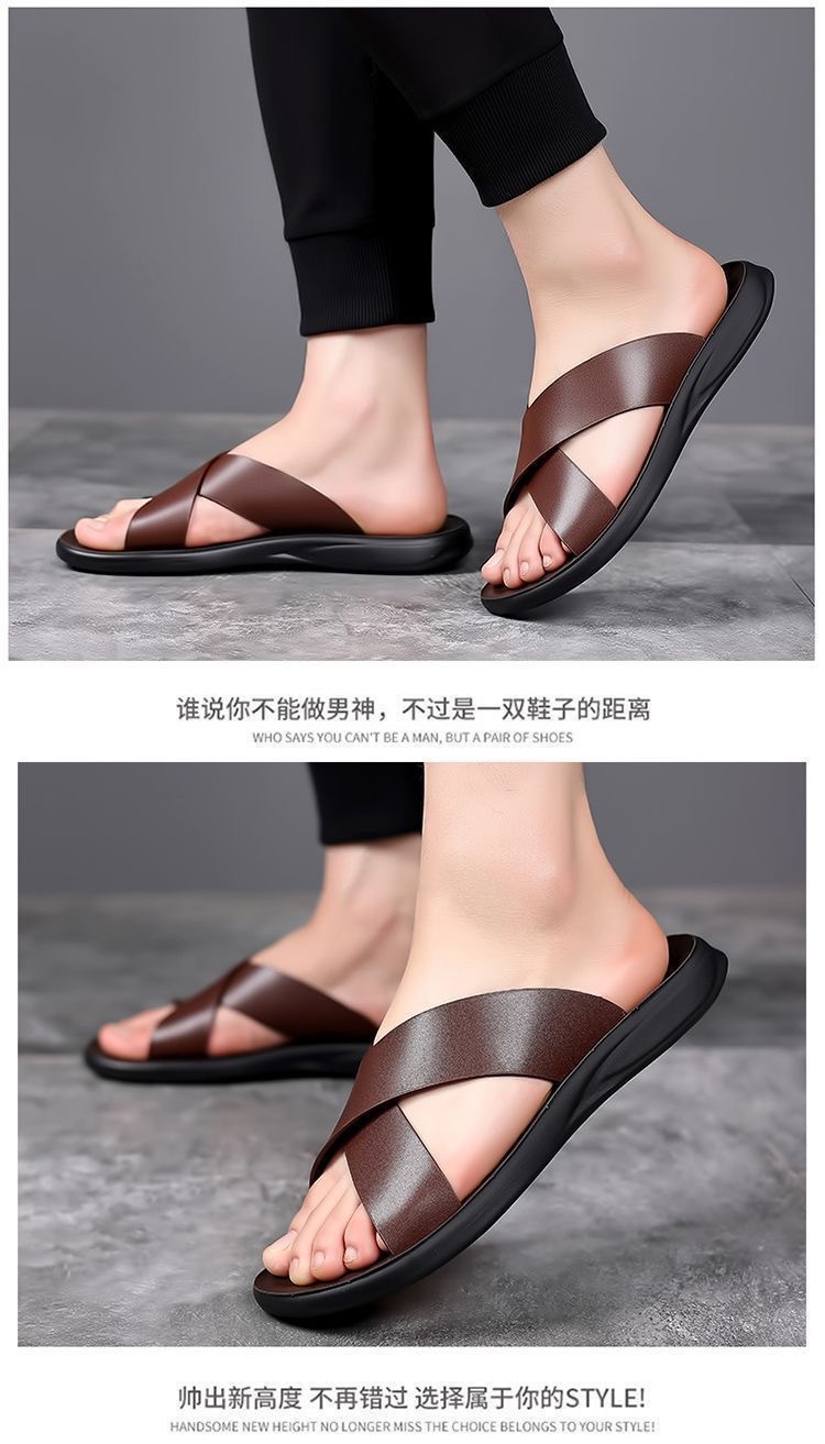새로운 가죽 소가죽 슬리퍼 조수 남성 신발 여름 캐주얼 탈취제 야외 남성 슬리퍼 헤어 세대