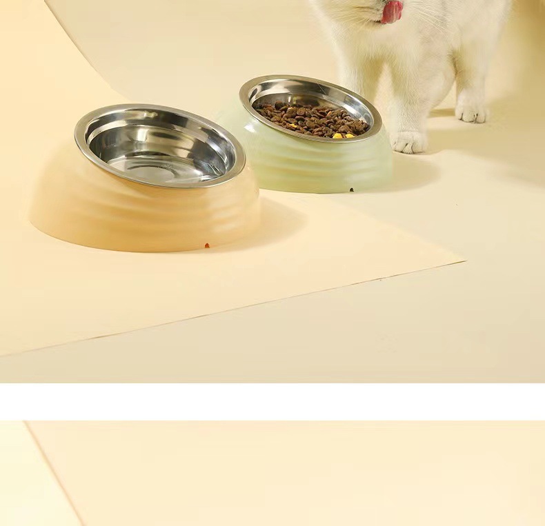 새로운 애완 동물 그릇 스테인레스 스틸 고양이 그릇 애완 동물 피더 목 보호 대각선 고양이 음식 식품 개 용품 도매