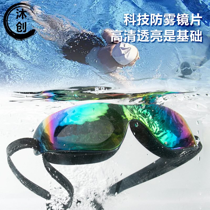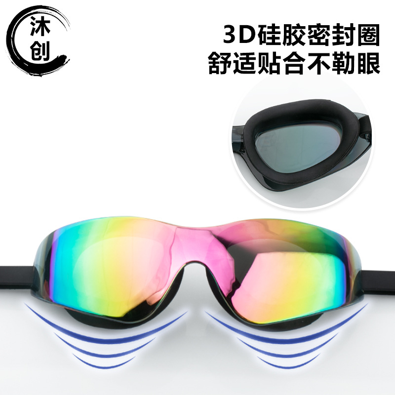 국경 간 뜨거운 판매 수영 고글 HD 방수 안개 방지 실리콘 수영 고글 원피스 대형 프레임 수영 고글 패션 원피스 수영 고글