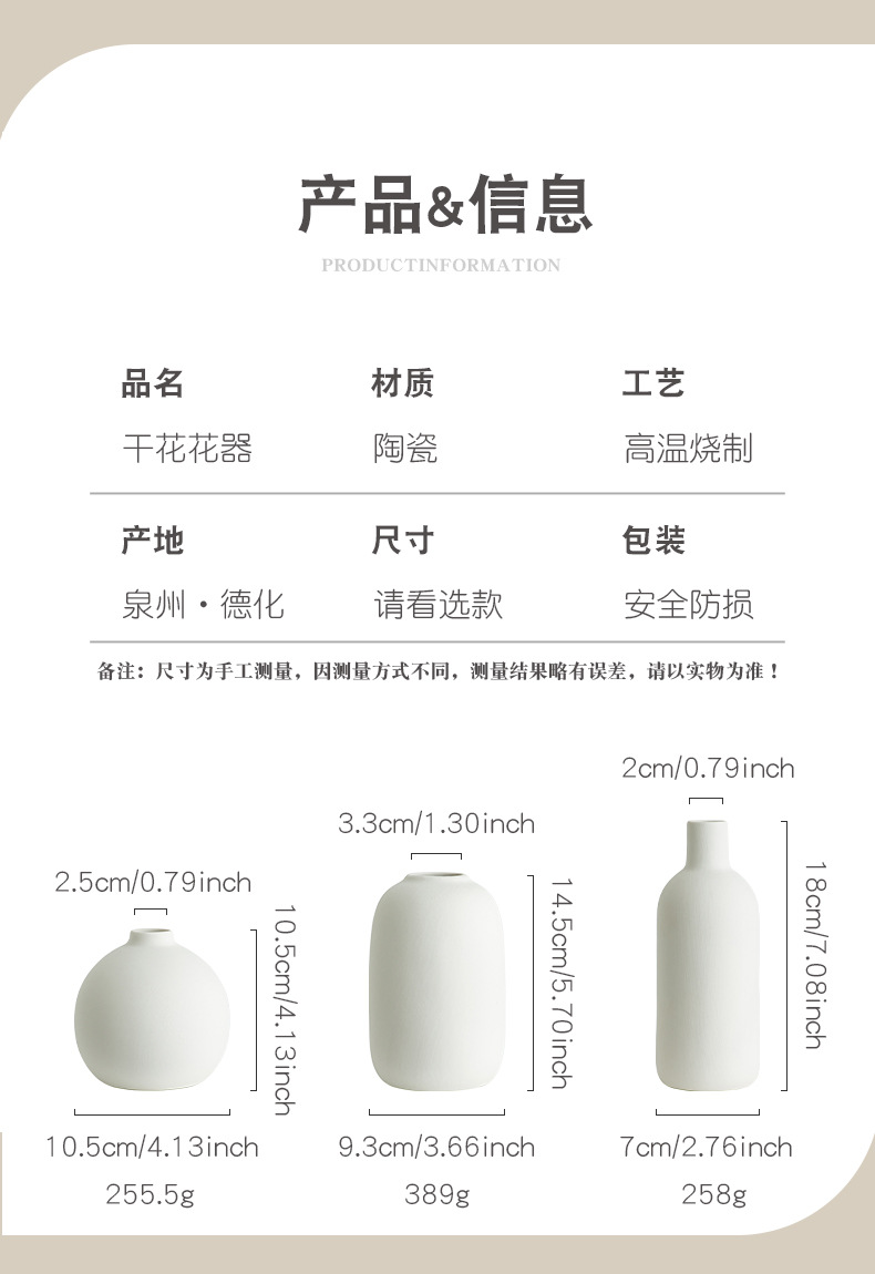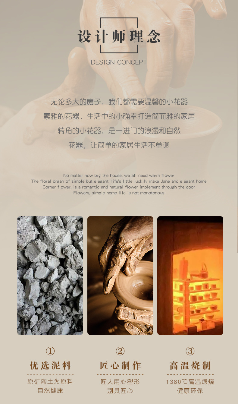 本司陶瓷均为我司生产基地独立设计、生产;工艺上以手工制做为主,花瓶内部和底部不在检测范围内,所售产品出现的小黑点或针孔等少许瑕疵均在国际行业标准的正常范畴之内。