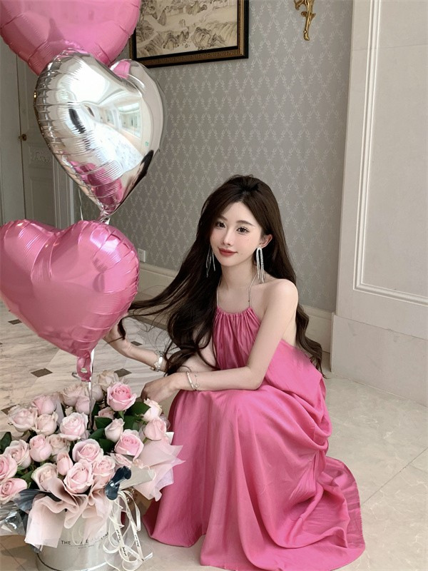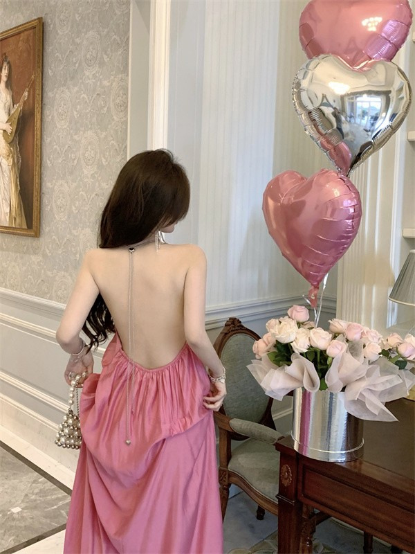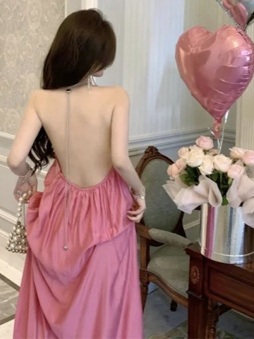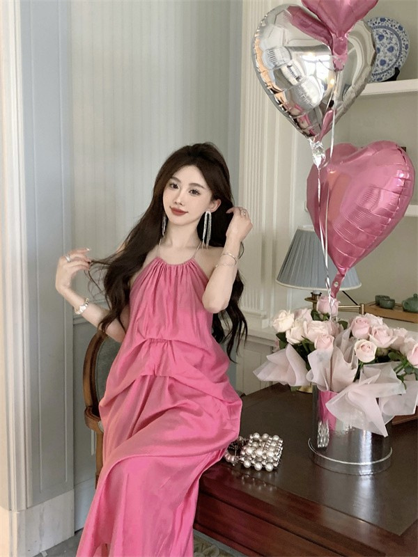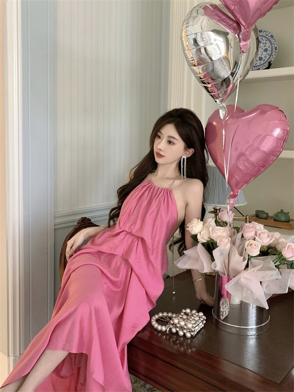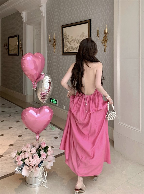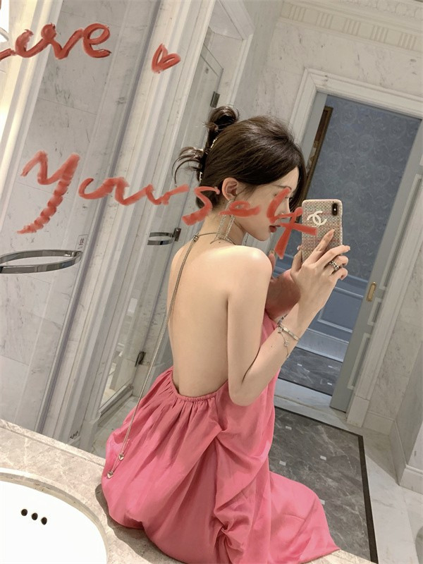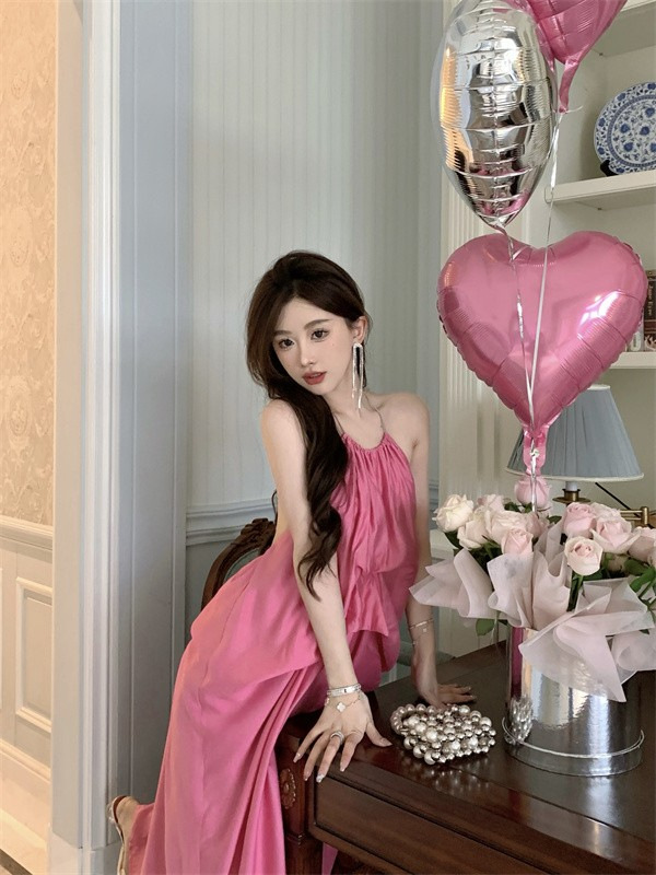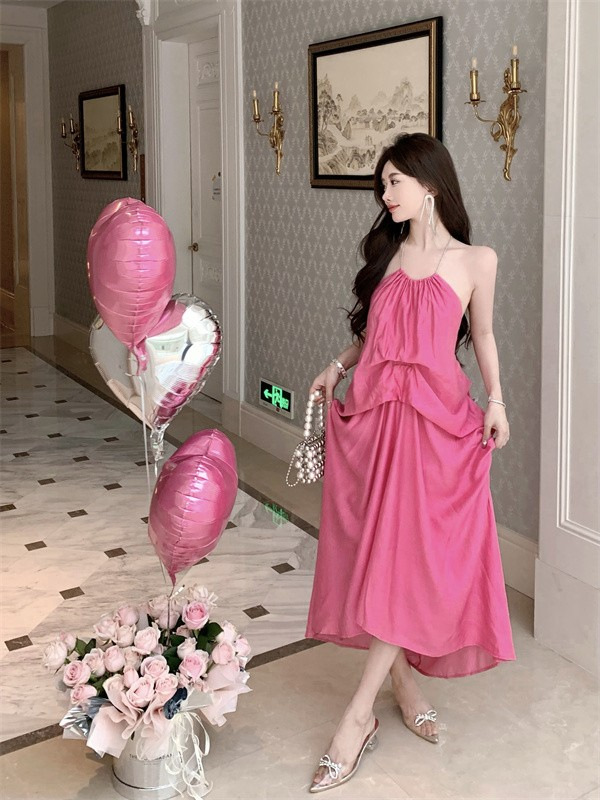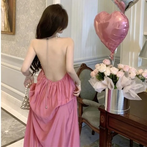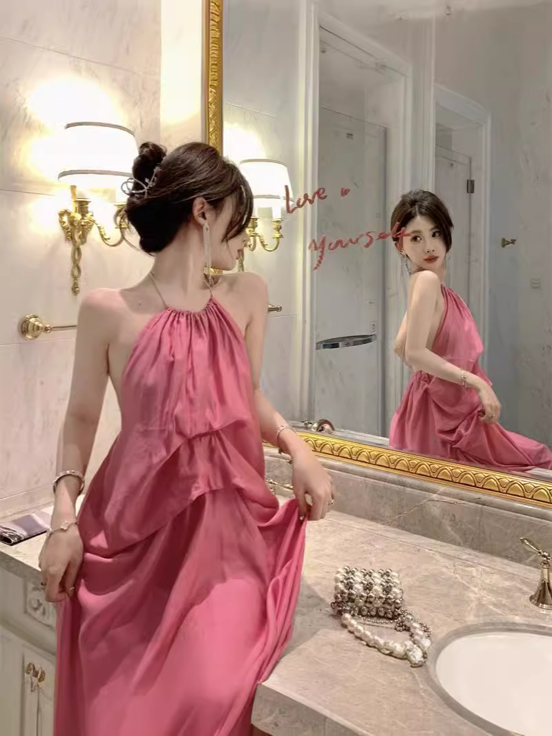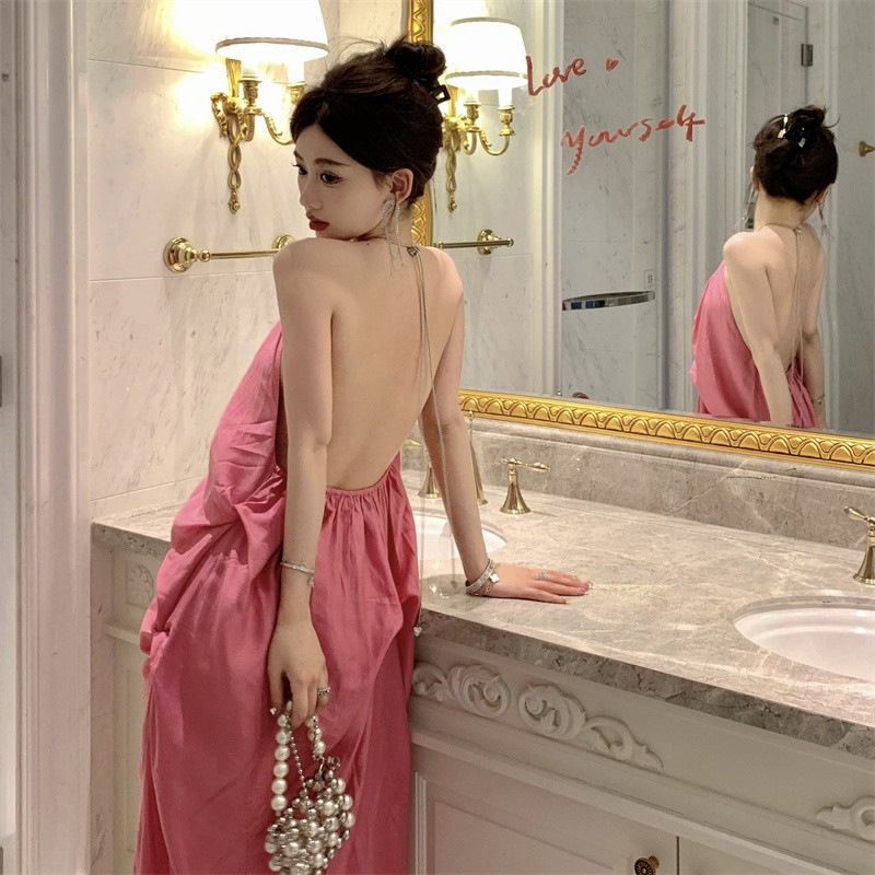 배경없는 목 프랑스 스타일 달콤한 휴일 해변 원피스 2024 여름 새로운 대형 느슨한 어깨 섹시한 원피스