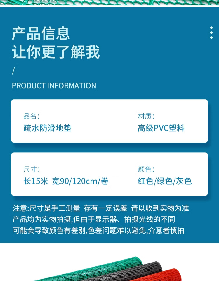 미끄럼 방지 매트, 중공 플라스틱 매트, 수영장 발 매트, 욕실 카펫, 욕실 및 주방 방수 및 오염 방지 PVC 매트