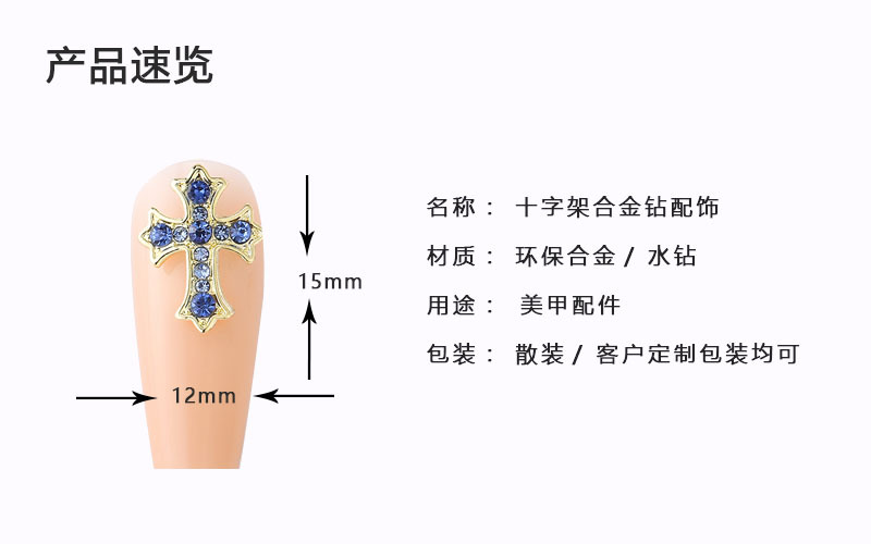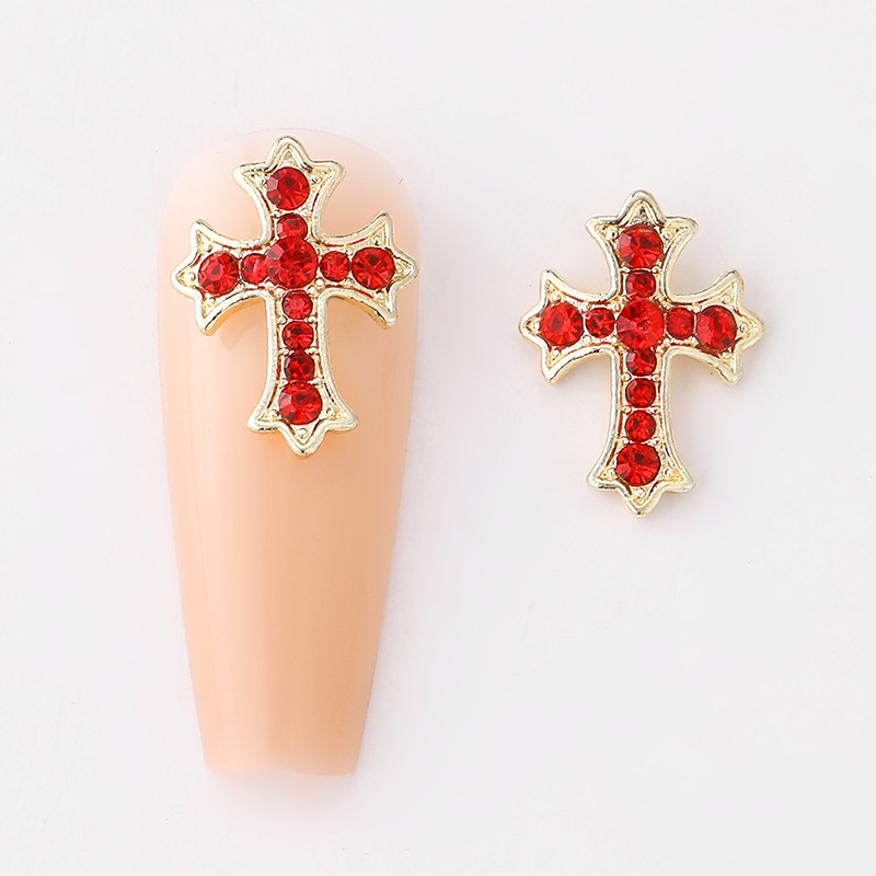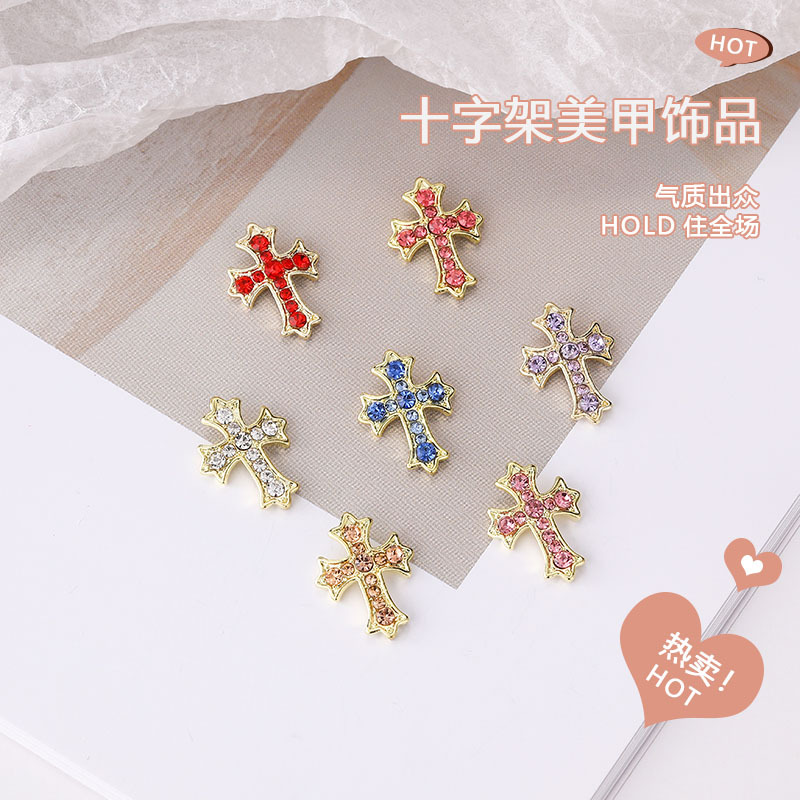 크로코어 스테레오 다이아몬드 크로스 네일 아트 쥬얼리 라이트 럭셔리 합금 크로스 라인 스톤 네일 장식 도매