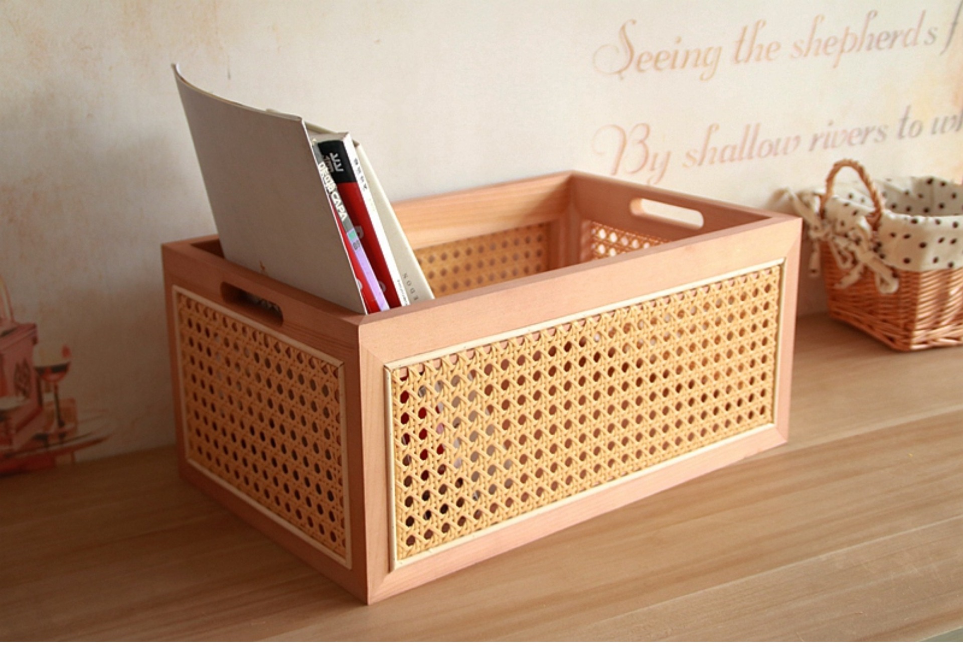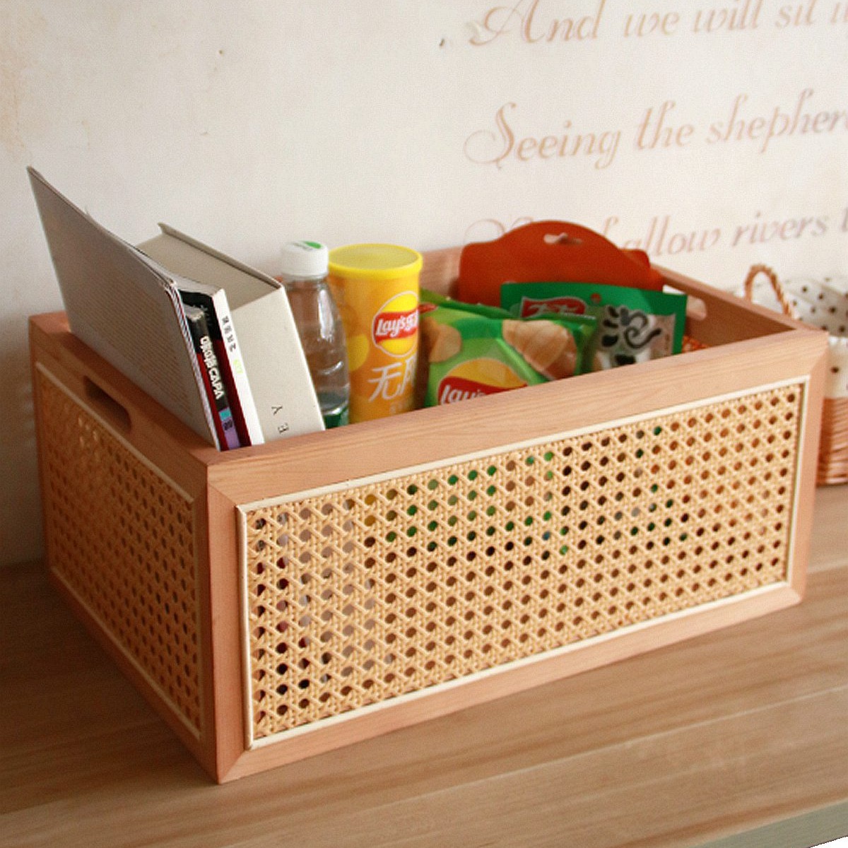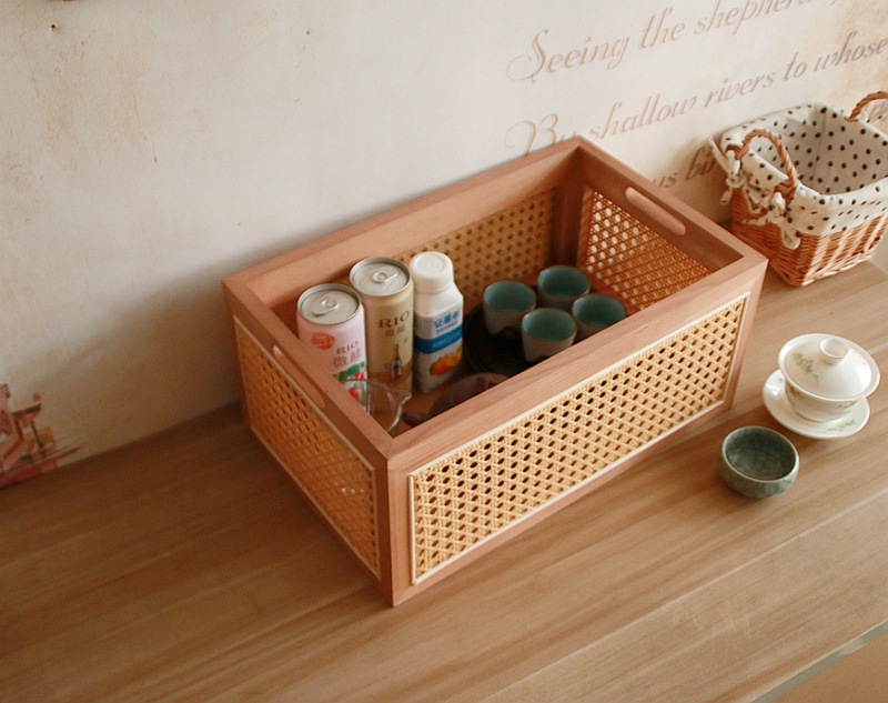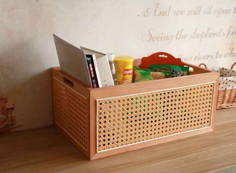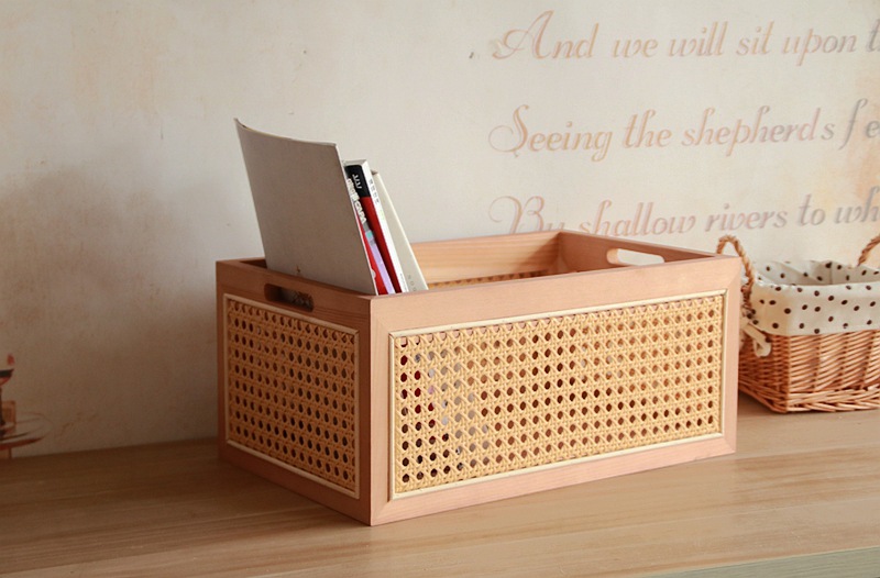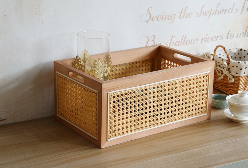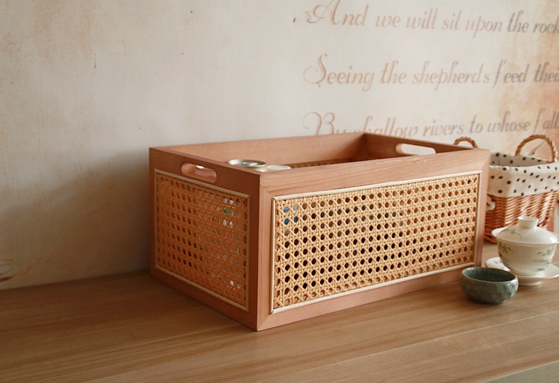 일본식 등나무 짠 단단한 나무 저장 상자 커피 테이블 스낵 상자 식료품 상자 장난감 대나무 짠 저장 바구니 보관 바구니