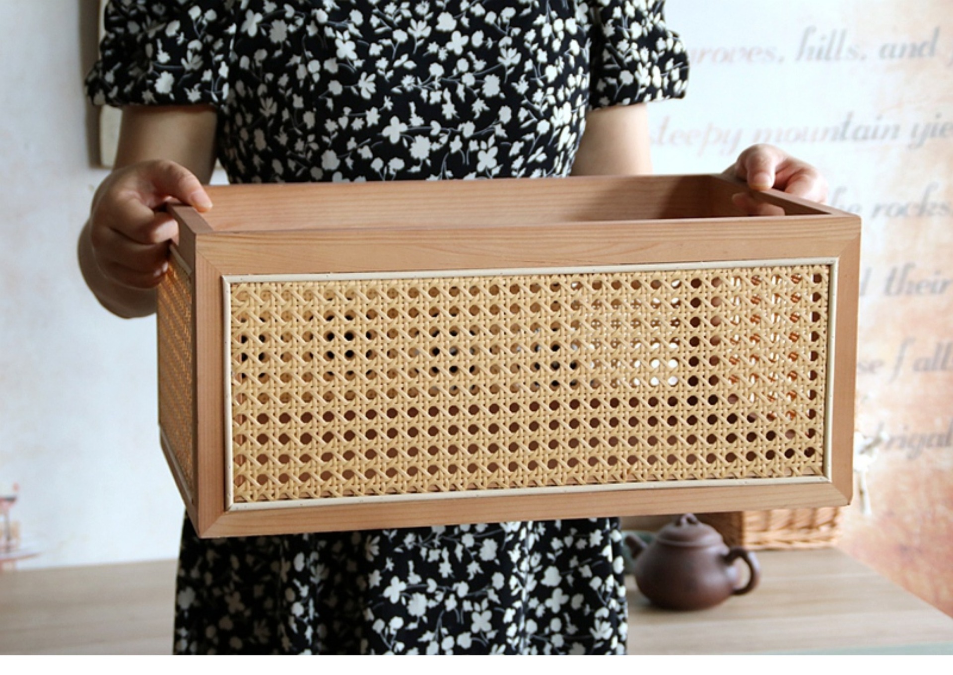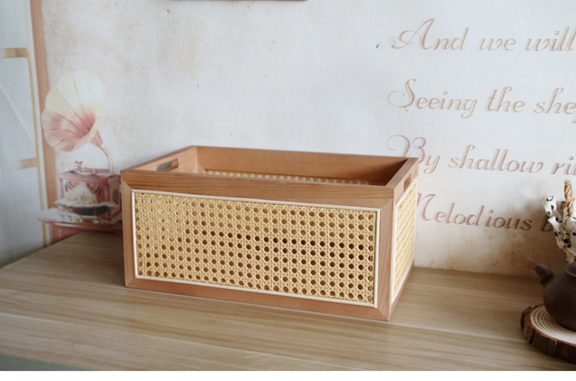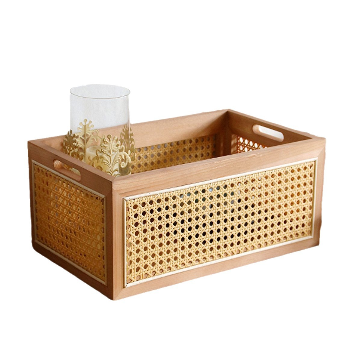 일본식 등나무 짠 단단한 나무 저장 상자 커피 테이블 스낵 상자 식료품 상자 장난감 대나무 짠 저장 바구니 보관 바구니