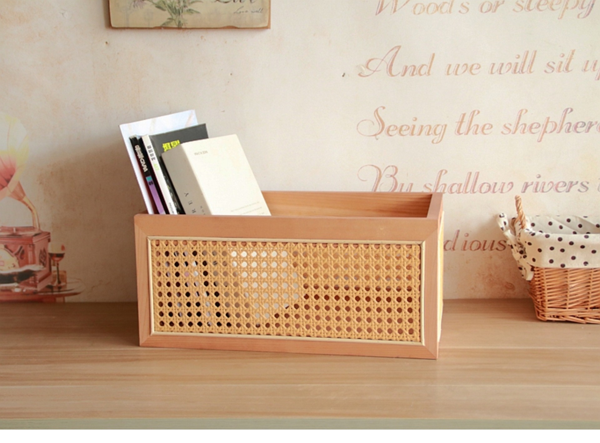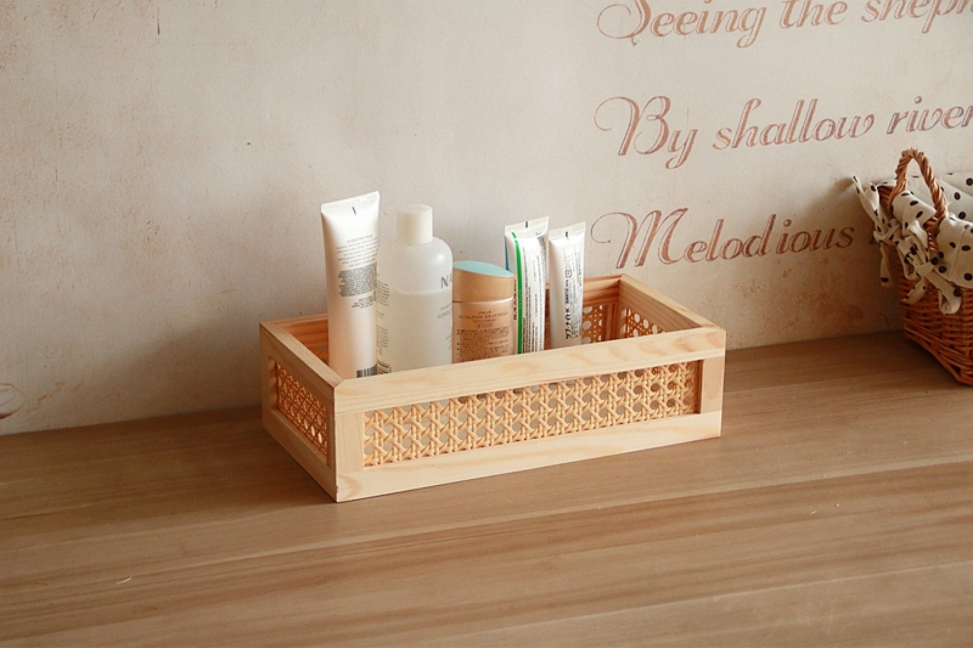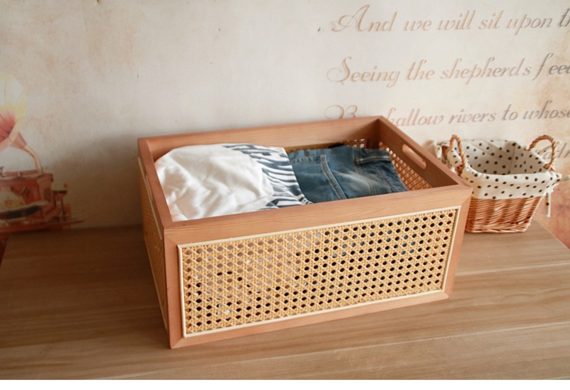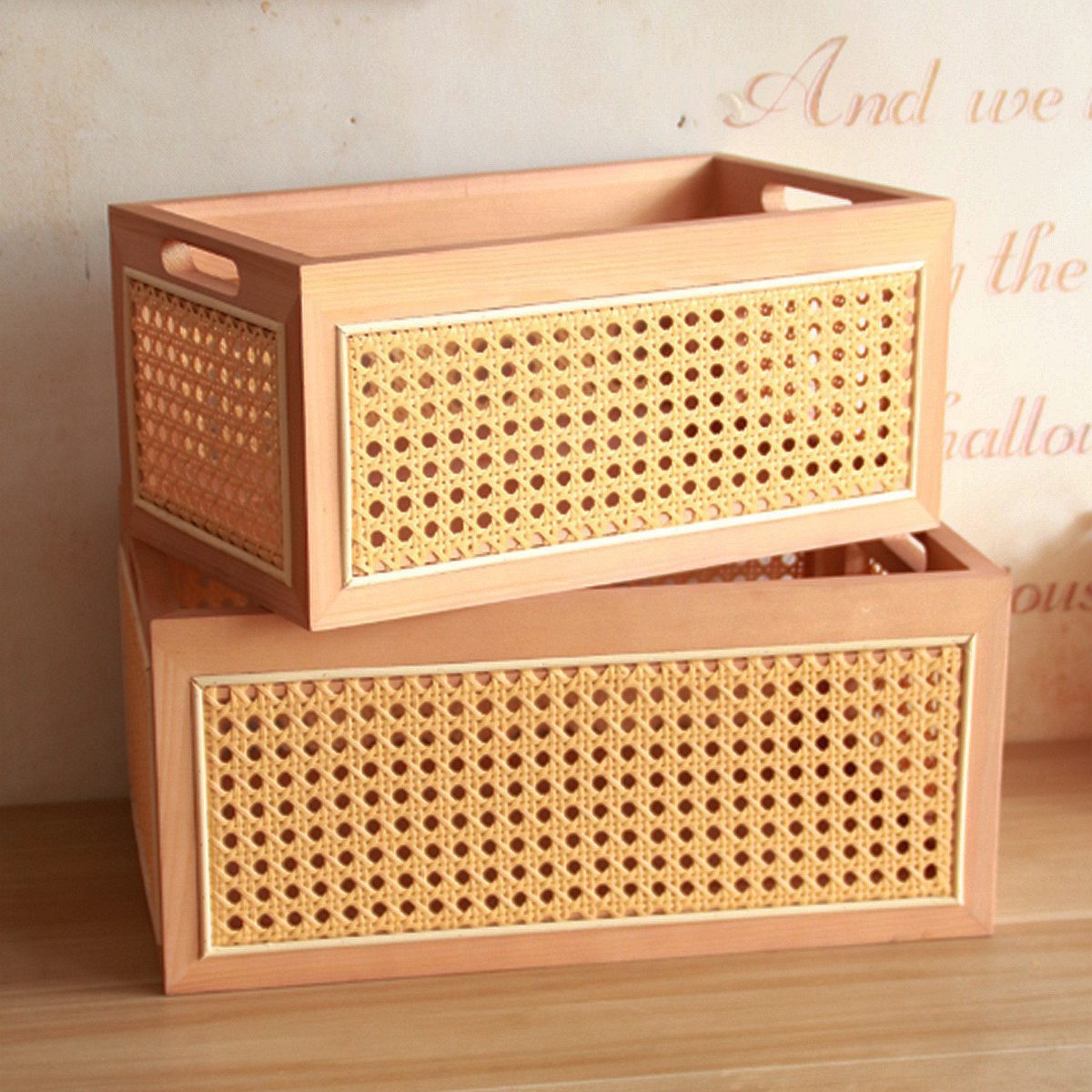 일본식 등나무 짠 단단한 나무 저장 상자 커피 테이블 스낵 상자 식료품 상자 장난감 대나무 짠 저장 바구니 보관 바구니