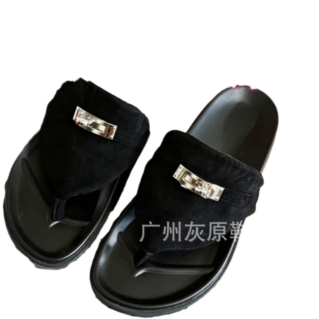 2024 년 여름 새로운 도착 클립 Toe 실버 버클 헤링만 로마 플랫 여성 레트로 카우히드가 여성용 캐주얼 샌들