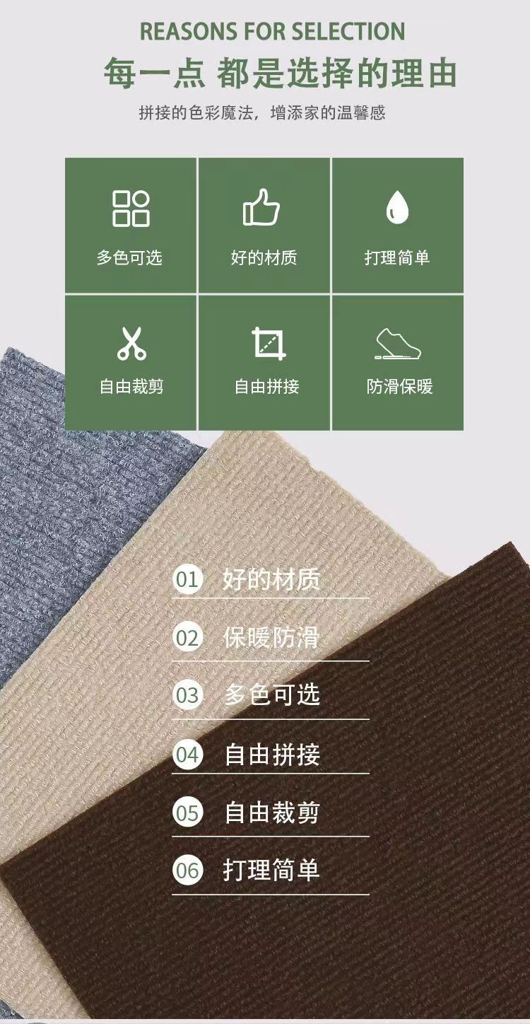 일본식 자체 접착 스티칭 바닥 매트 카펫 애완 동물 어린이 거실 침실 홈 오피스 미끄럼 방지 고무 매트