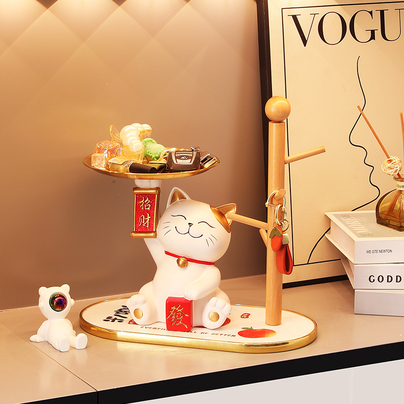행운의 고양이 장식품 가게 프런트 데스크 계산원 홈 오프닝 선물을 흔들며 창조적 인 트레이 행운의 고양이 도매