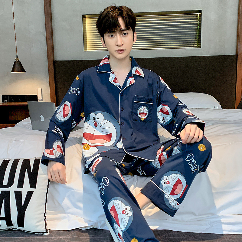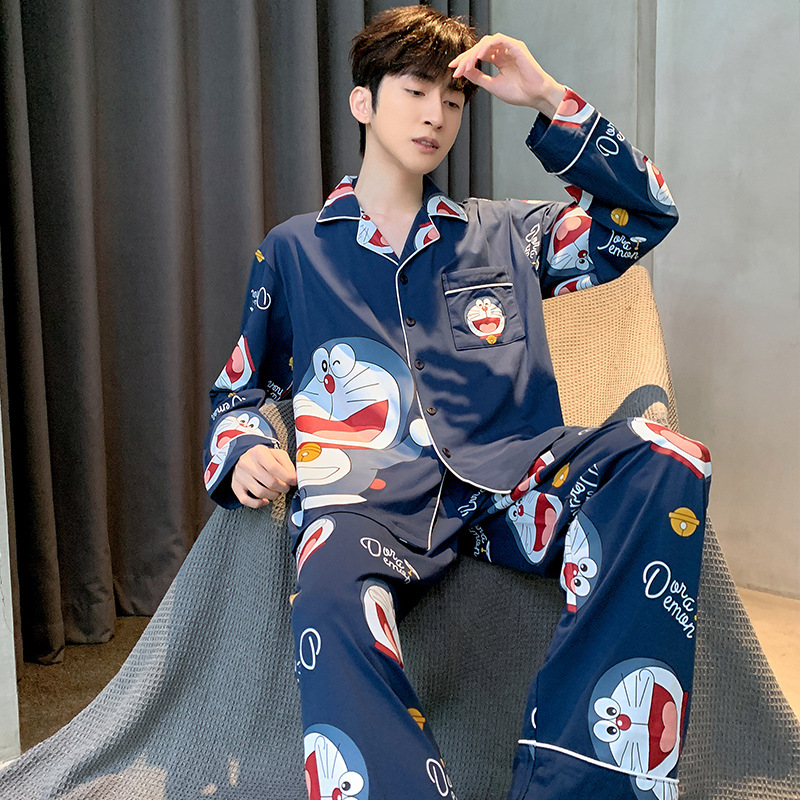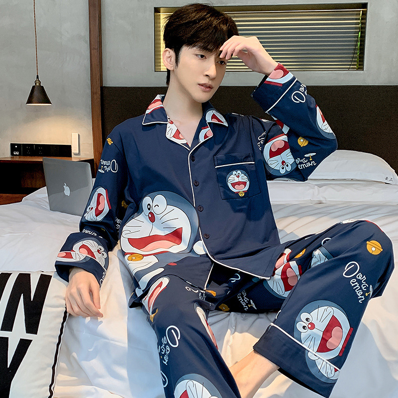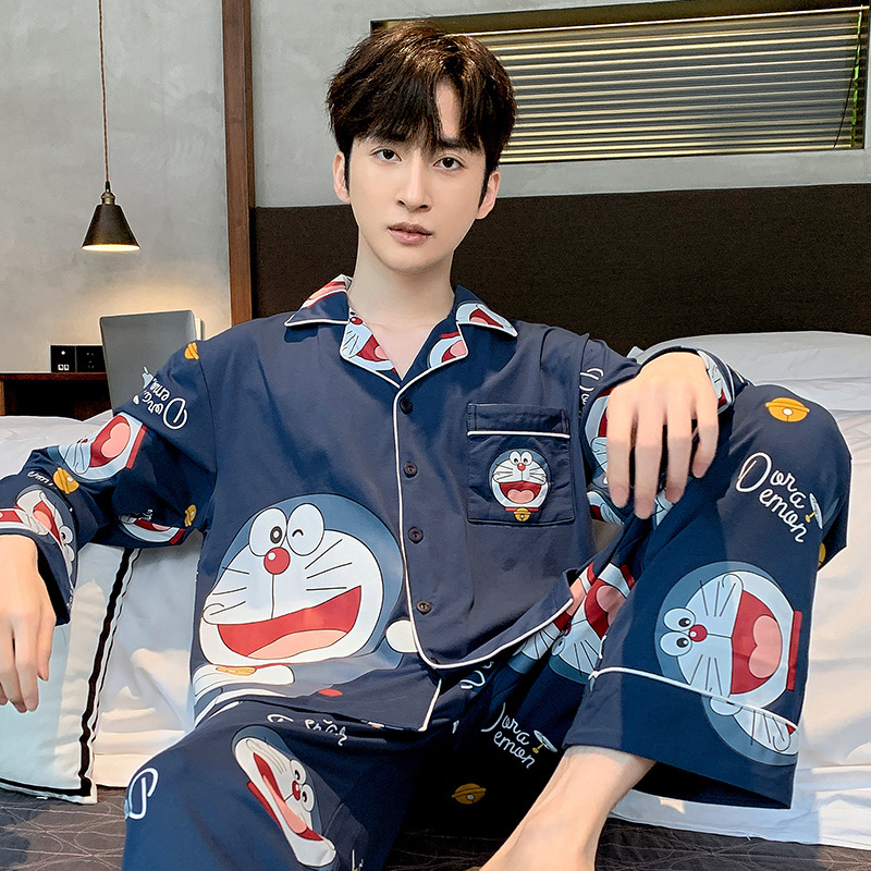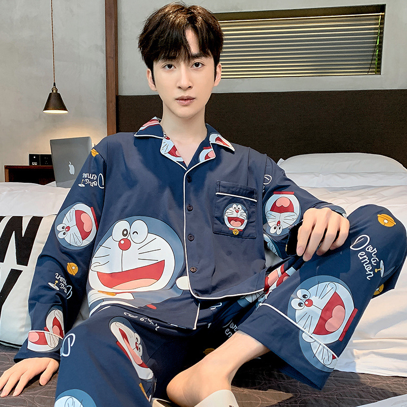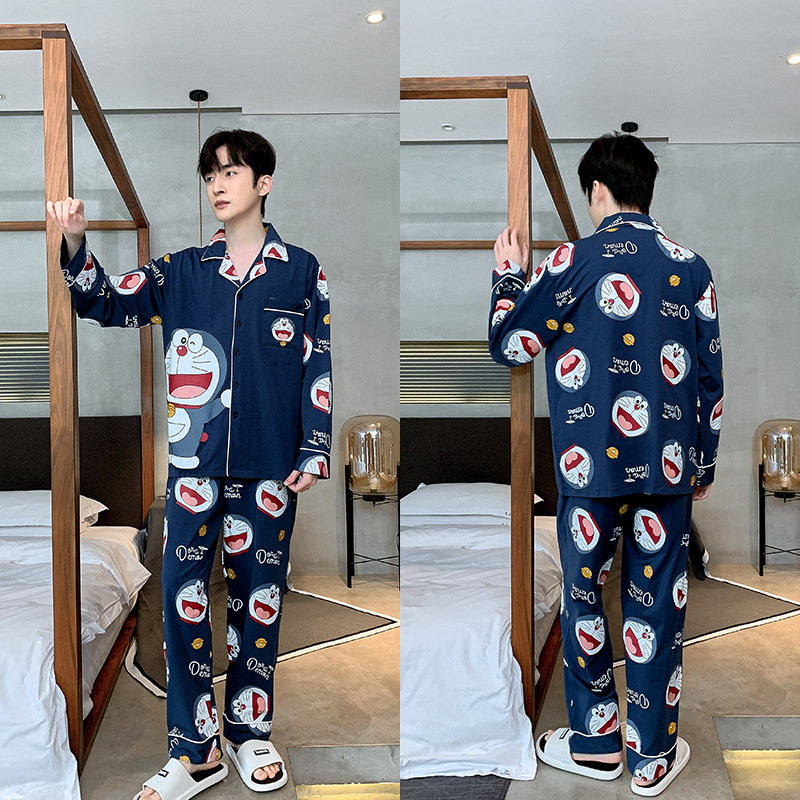 2023新款男士睡衣仿棉长袖春秋款青少年夏季天男生280斤家居服装
