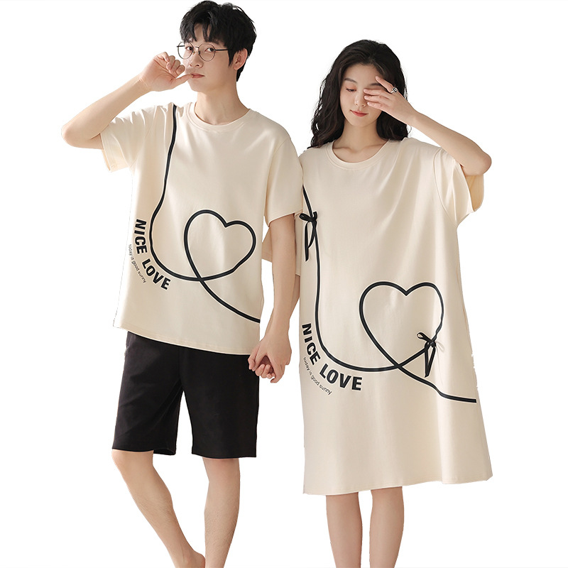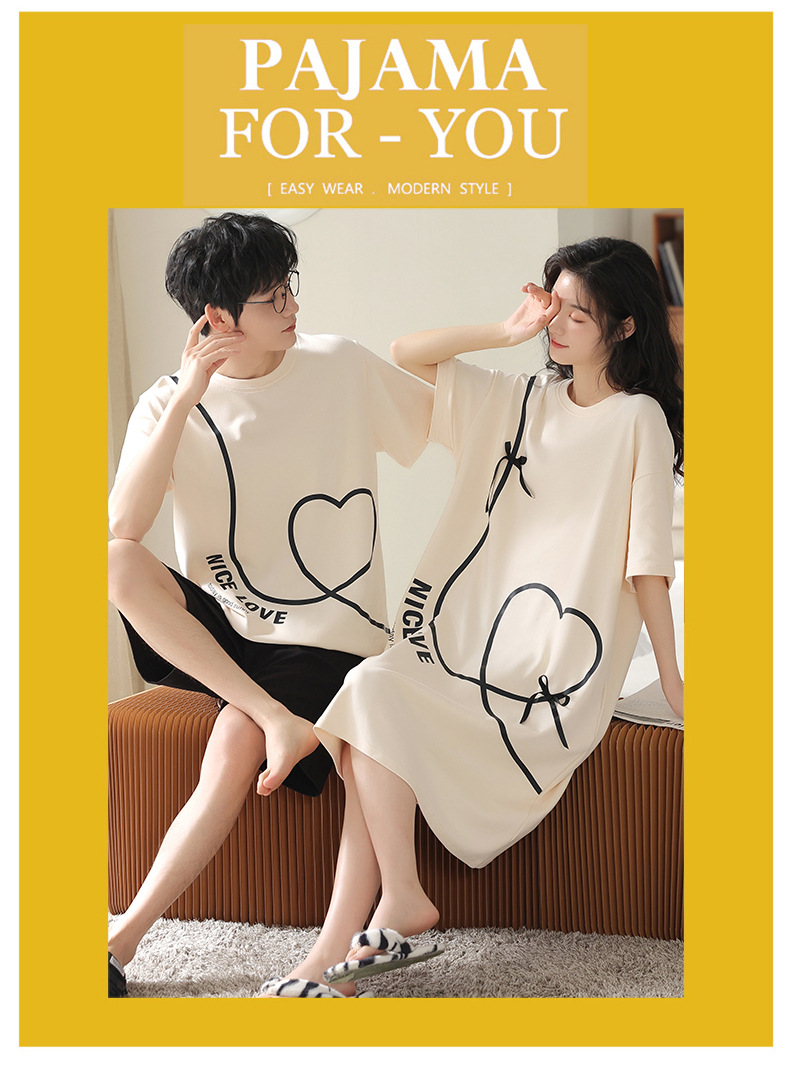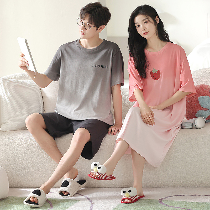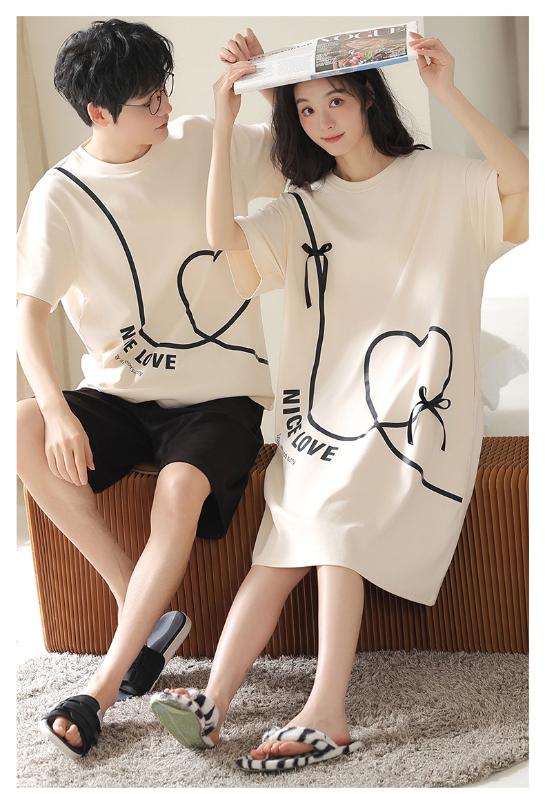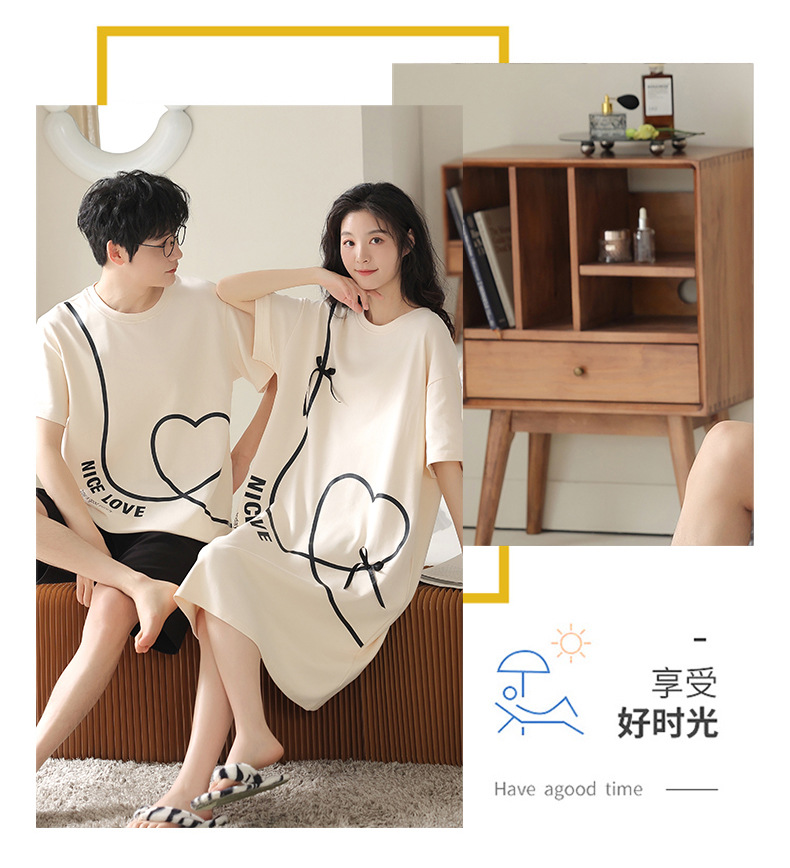 커플 잠옷 남자의 여름 순면 반팔 나이트 드레스 여성의 캐주얼 느슨한 달콤한 귀여운 홈 의류 세트