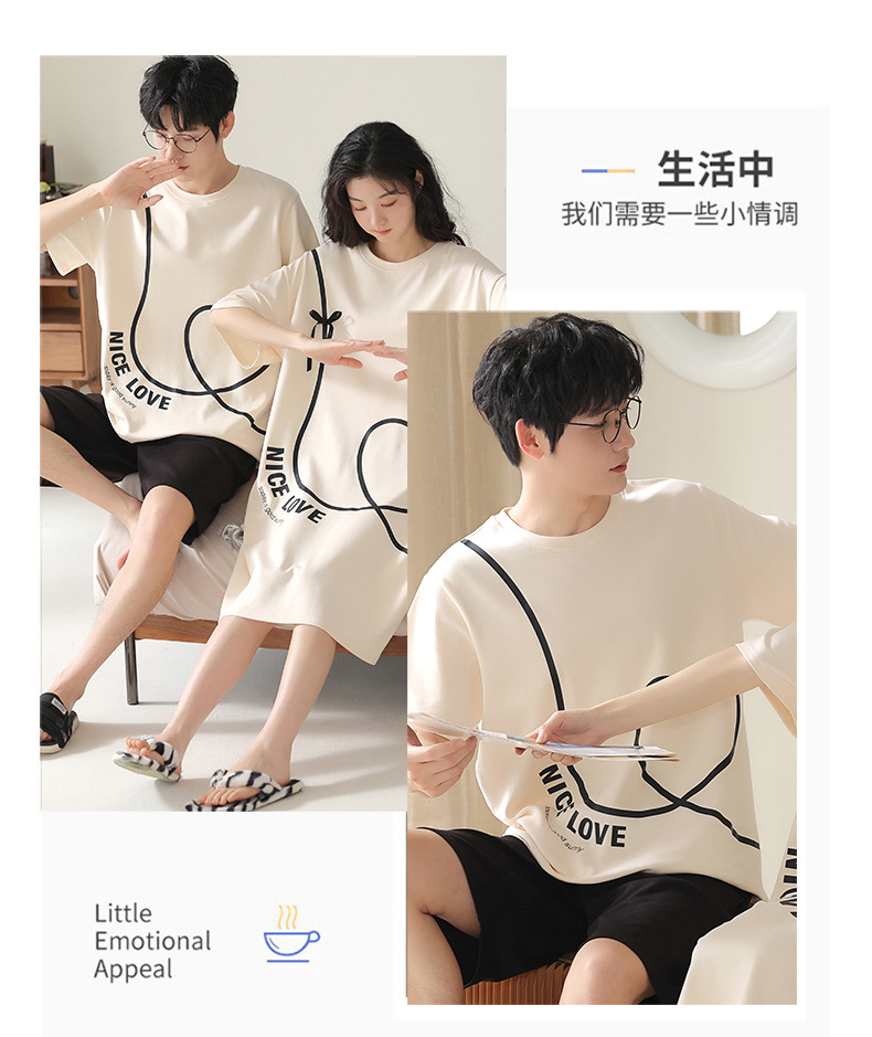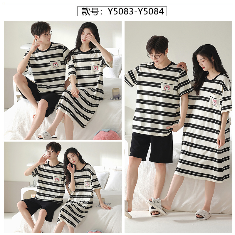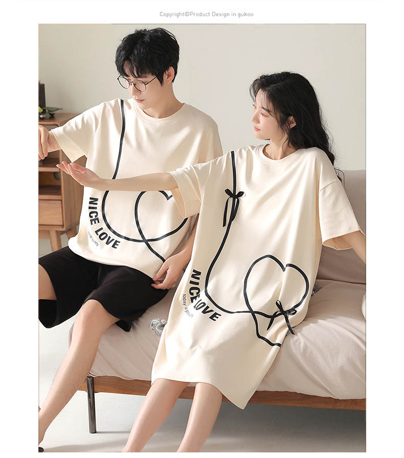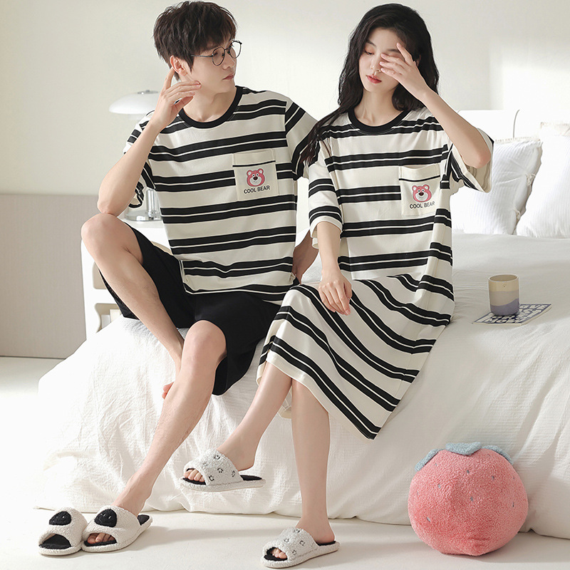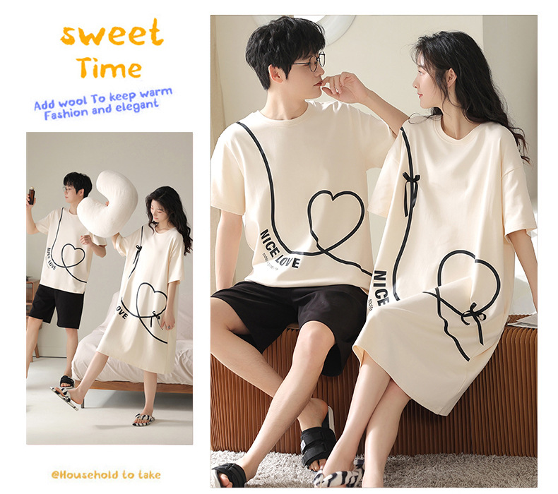커플 잠옷 남자의 여름 순면 반팔 나이트 드레스 여성의 캐주얼 느슨한 달콤한 귀여운 홈 의류 세트