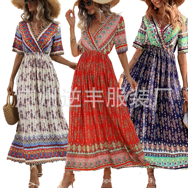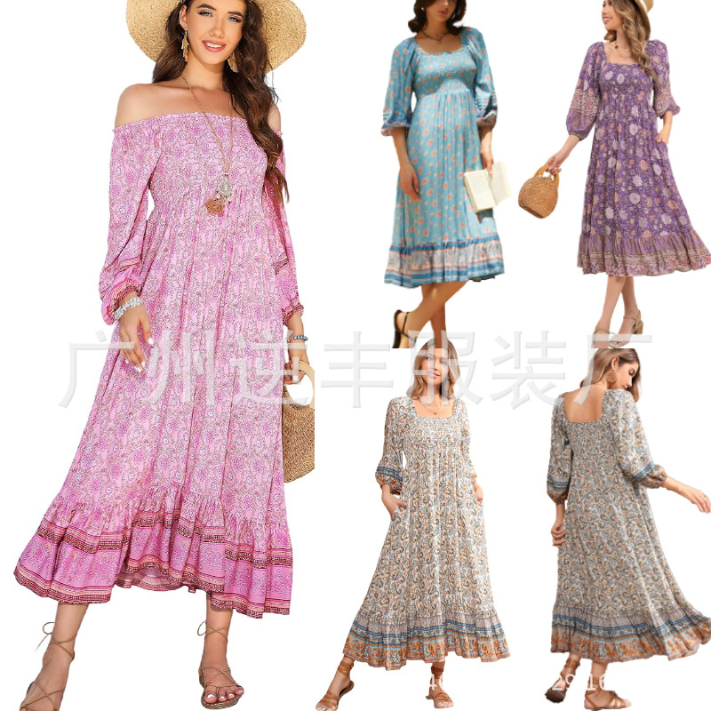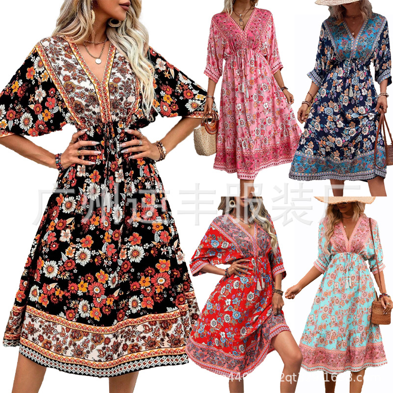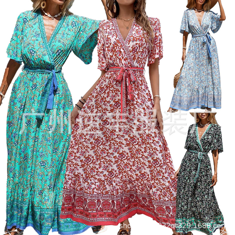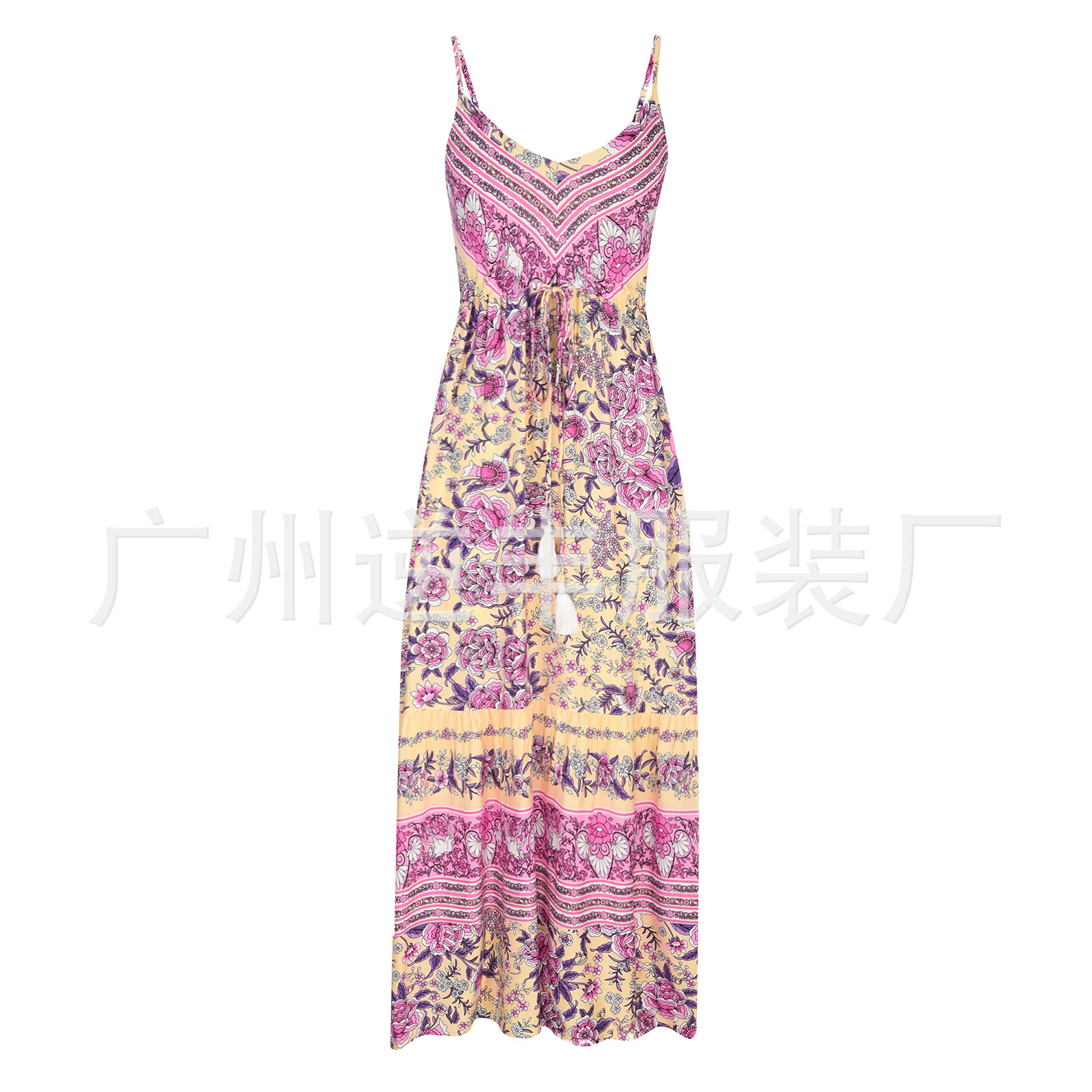 아마존 해외 인기상품 유럽 및 미국 여성복 프린지 스트랩 보헤미안 드레스 휴가용 비치 롱 드레스