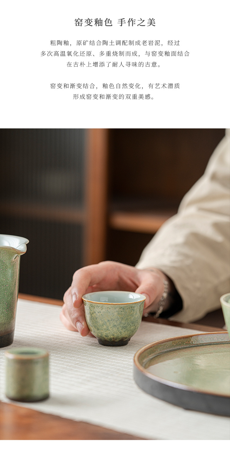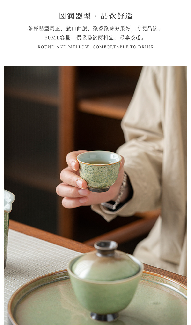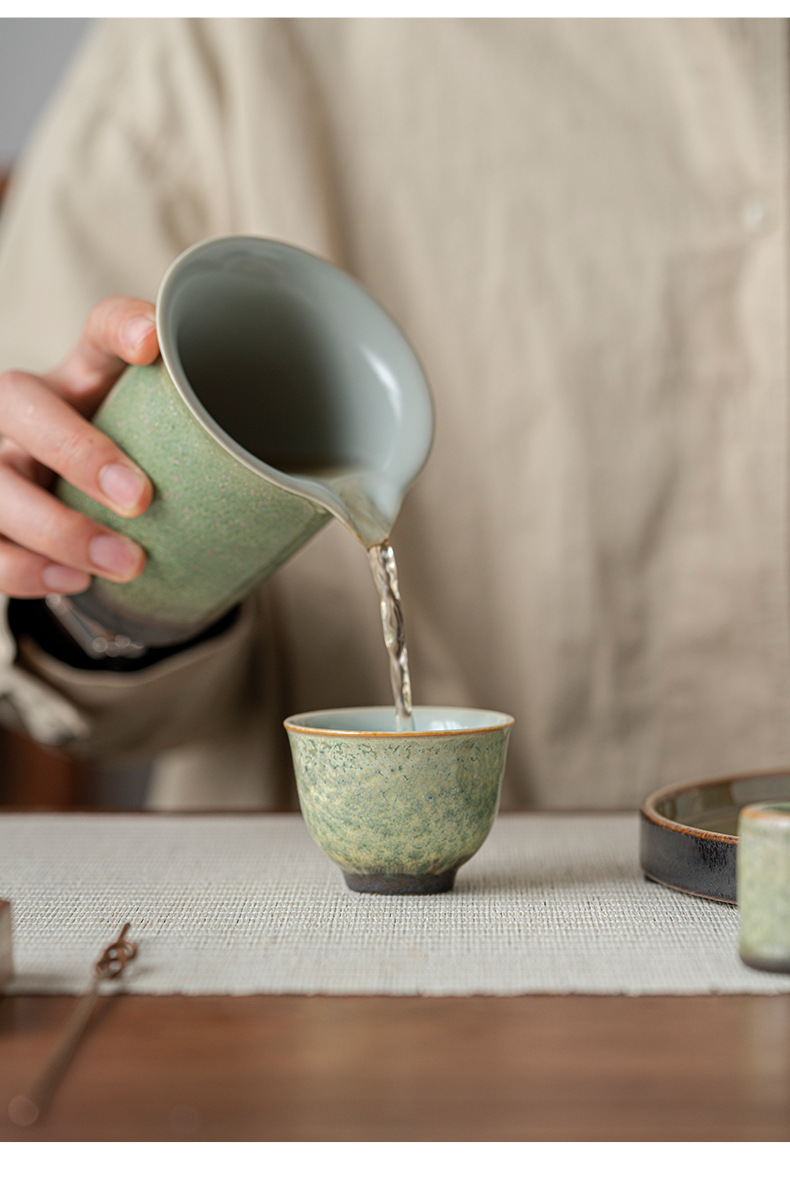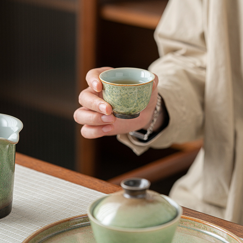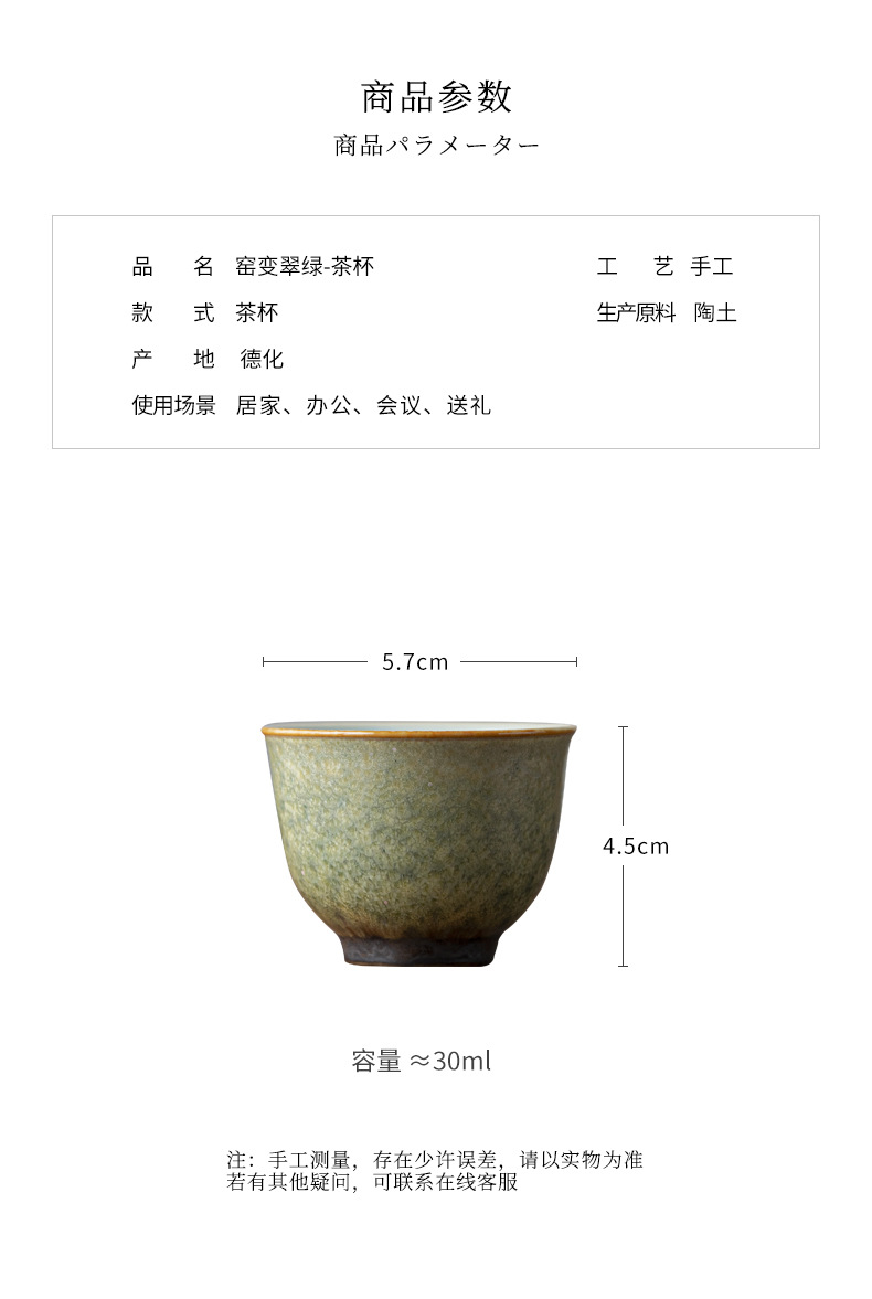 에메랄드 그린 가마 변경 티 컵 시음 컵 세라믹 쿵푸 차 세트 가정용 작은 차 그릇 안티-스케일링 핸드 레트로 싱글 컵 마스터 컵