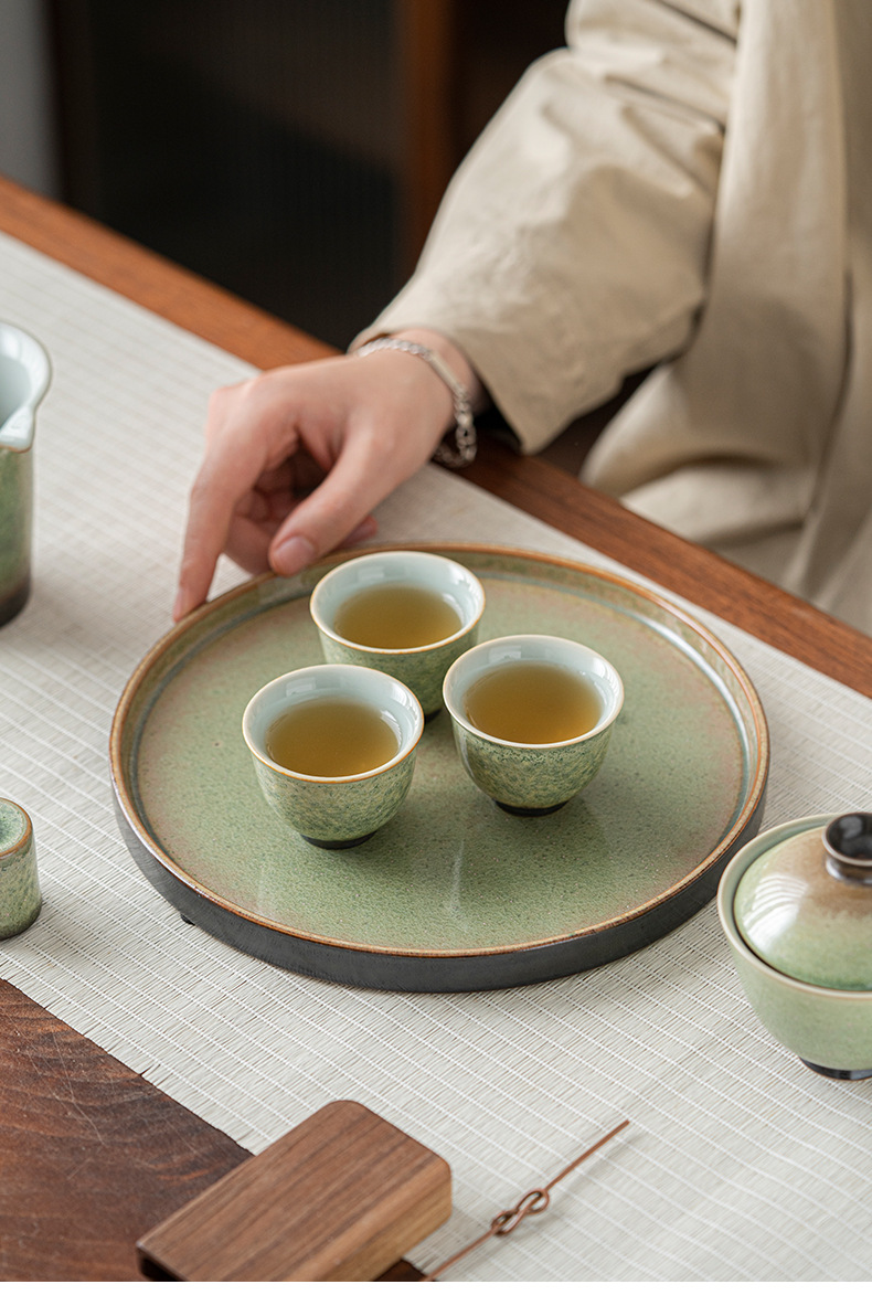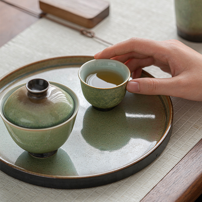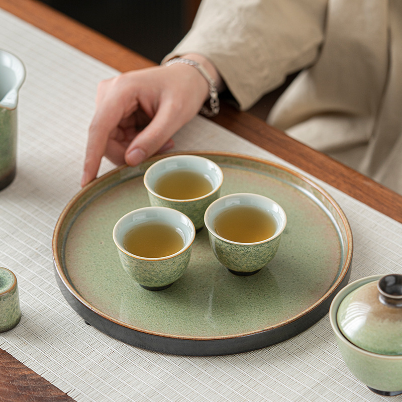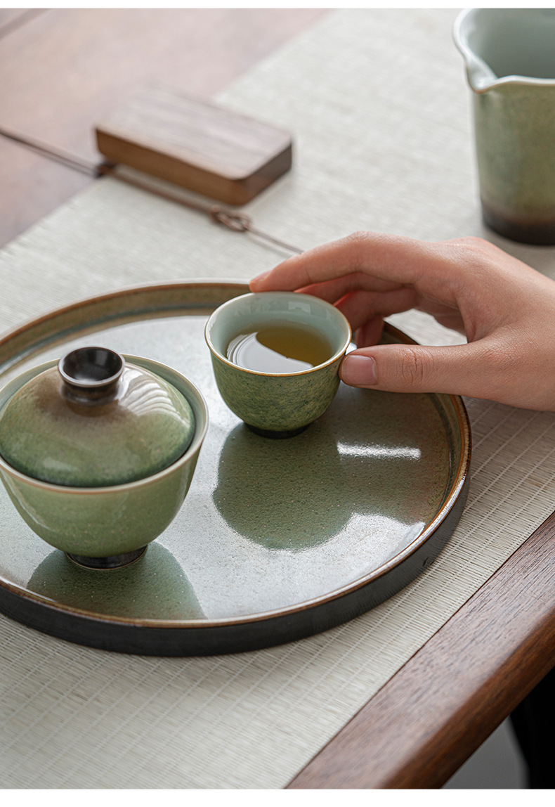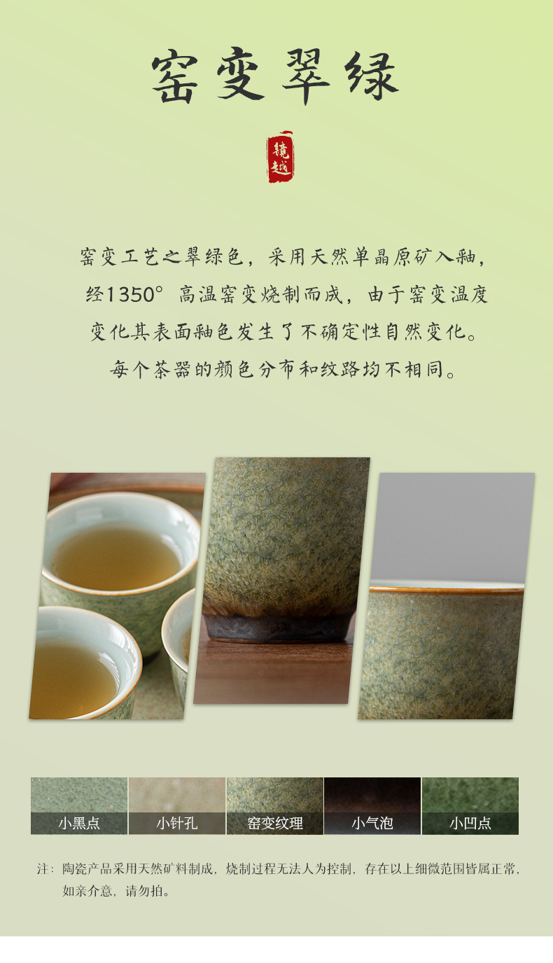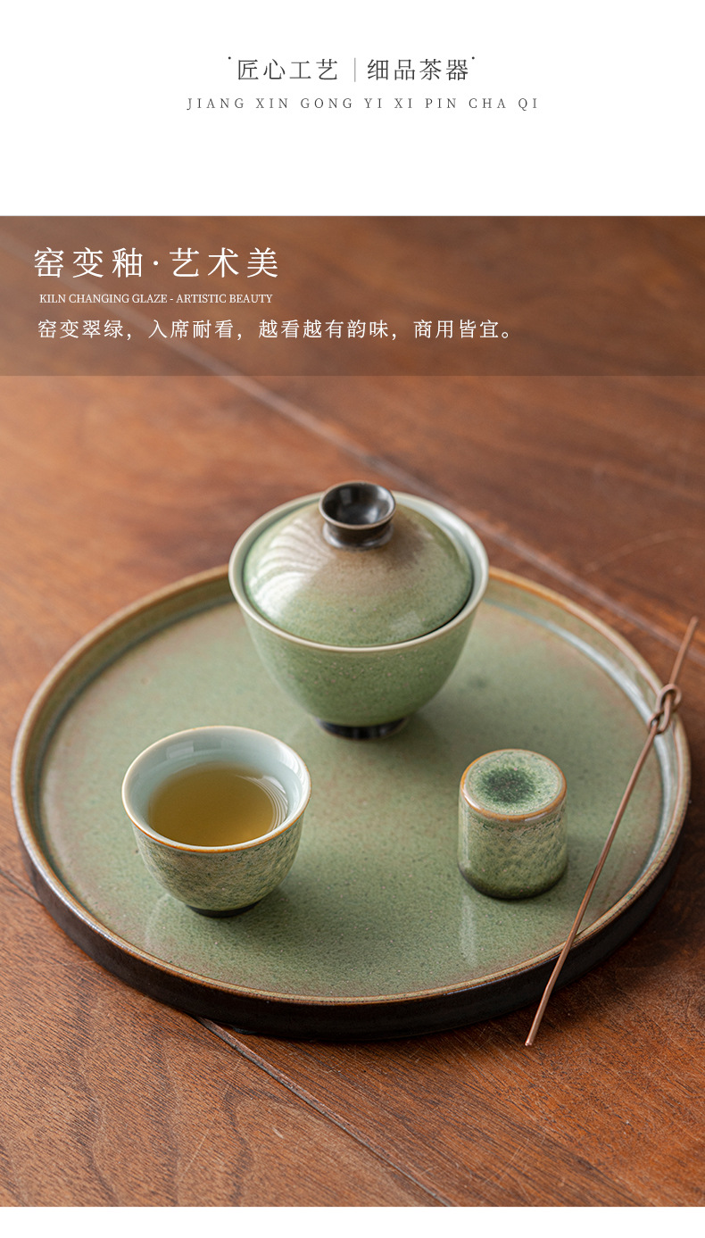 에메랄드 그린 가마 변경 티 컵 시음 컵 세라믹 쿵푸 차 세트 가정용 작은 차 그릇 안티-스케일링 핸드 레트로 싱글 컵 마스터 컵
