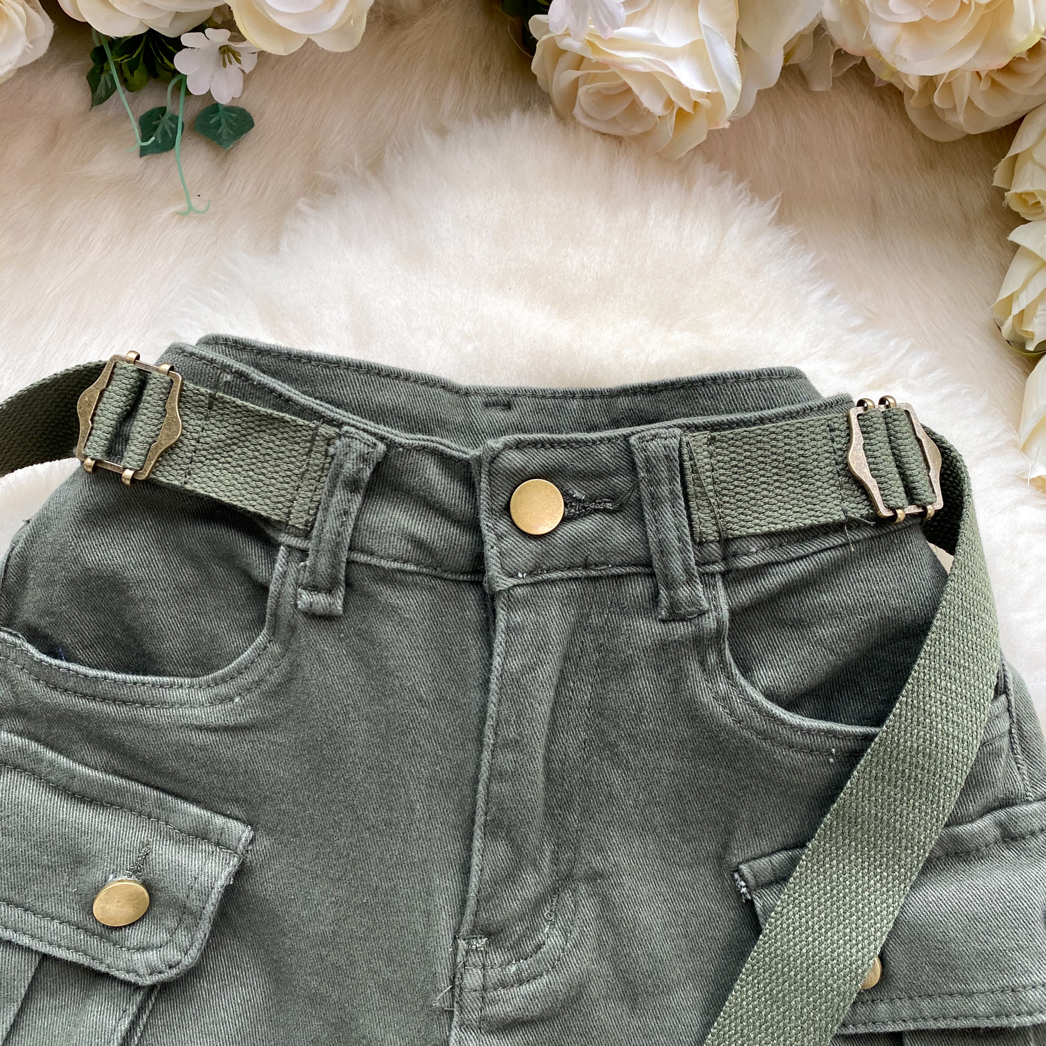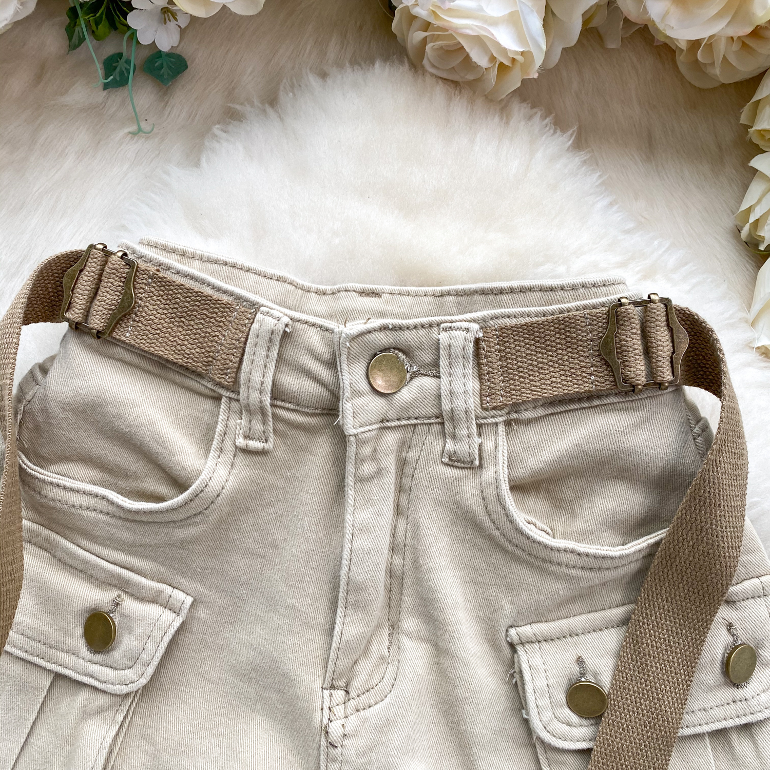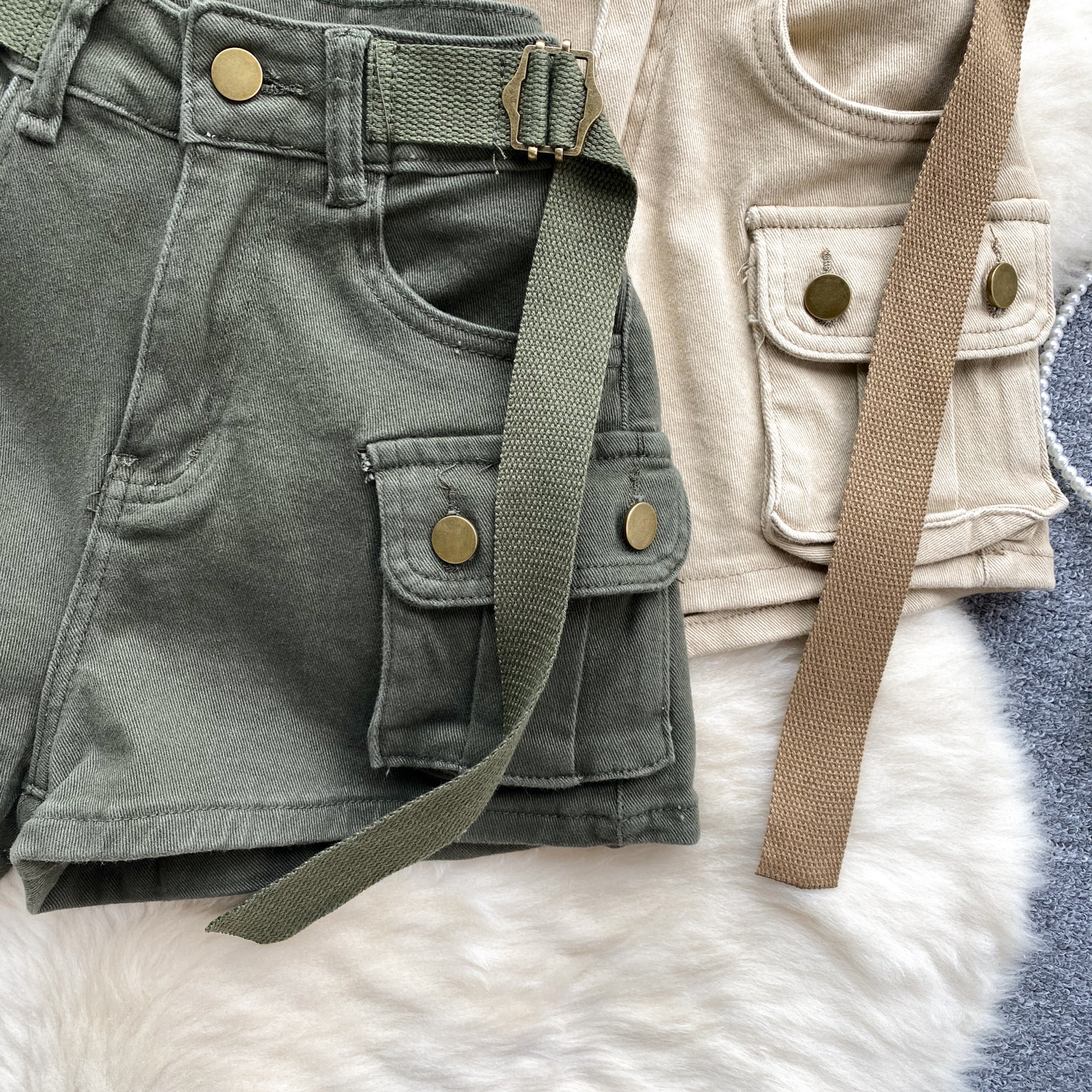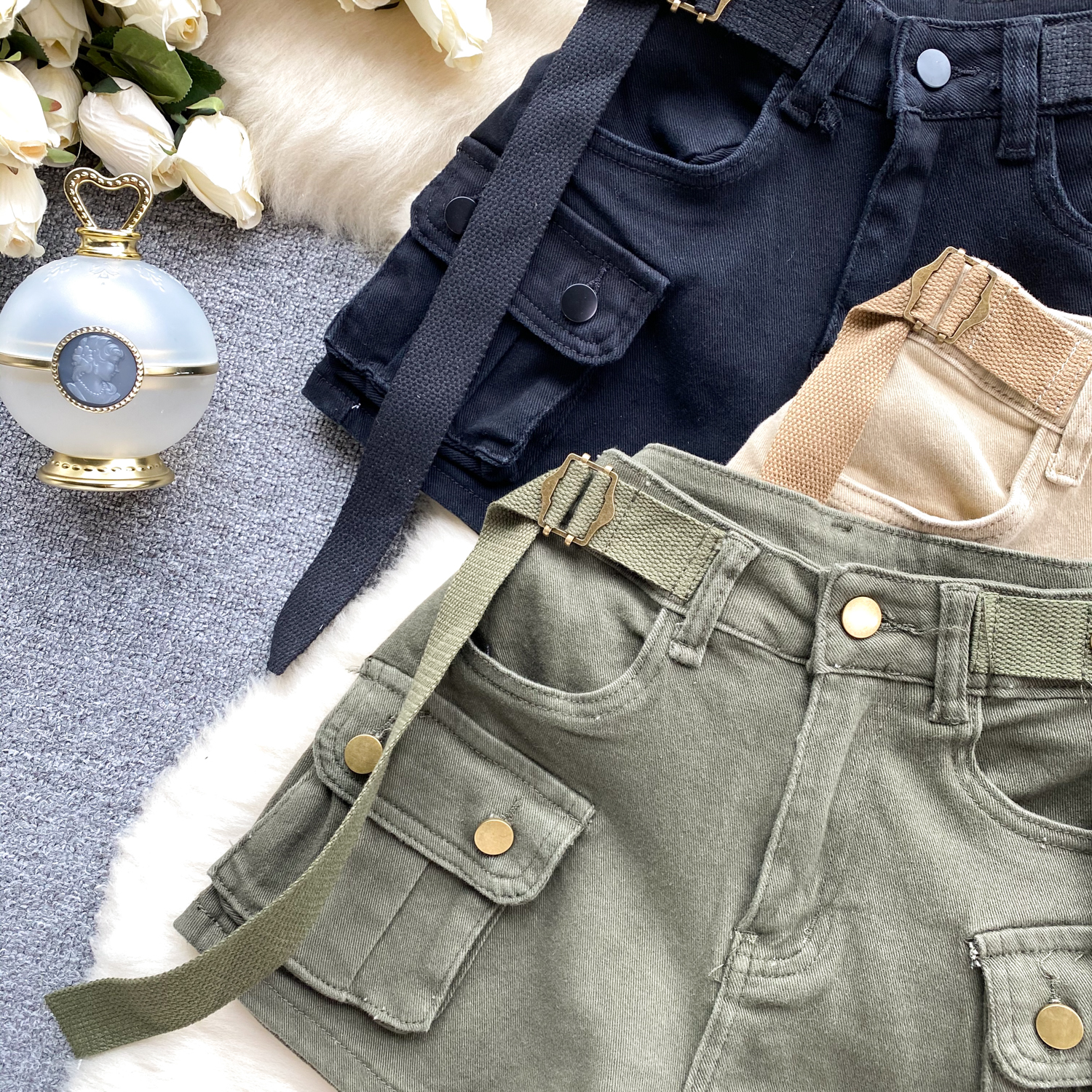 세련된 홍콩 스타일 레트로 툴링 큰 포켓 슬림 핏 짧은 디자인 센스 청바지 핫 걸 스타일 반바지 여성용 트렌디 핫 팬츠