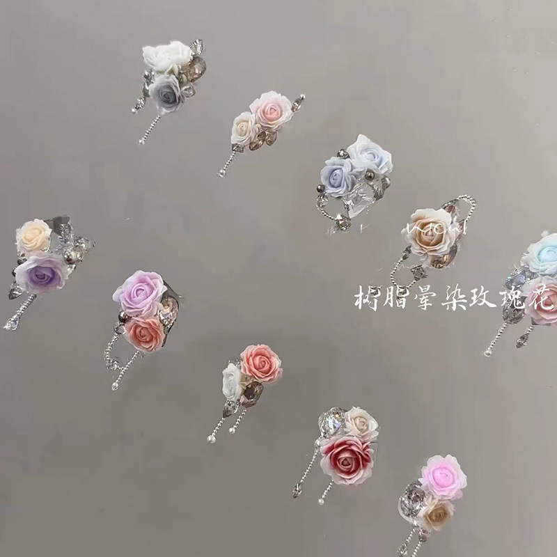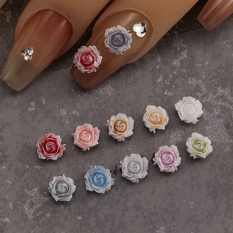 샤오홍슈 동일 스타일 수제 조각 네일 아트 장식 야광 장미꽃 입체 레진 장미꽃 네일 액세서리