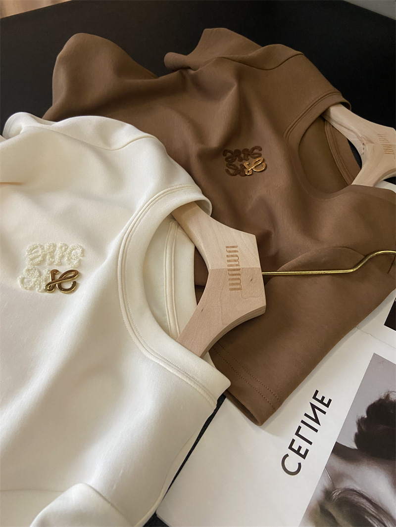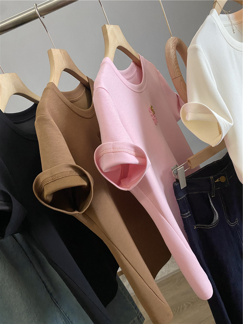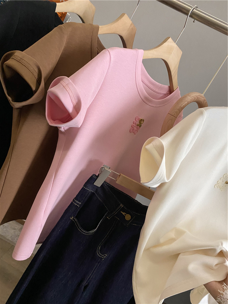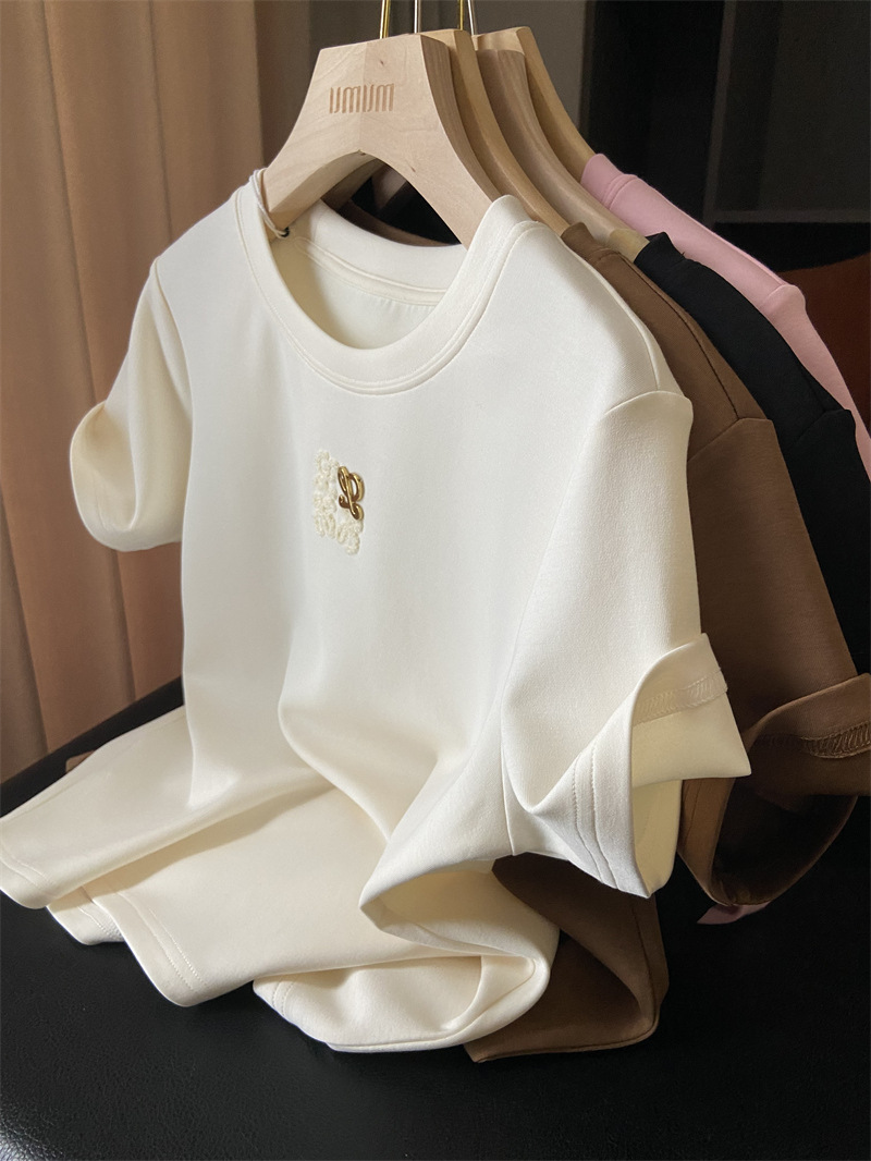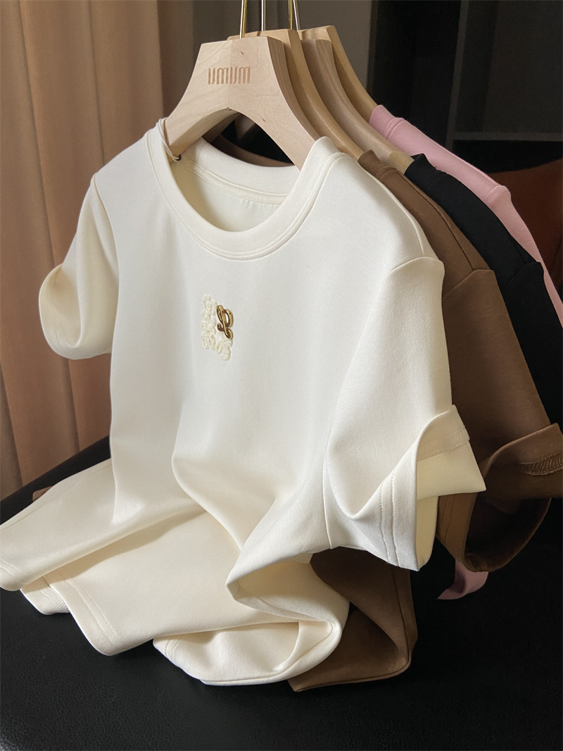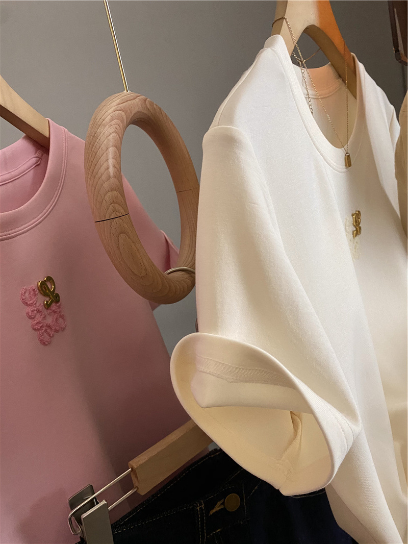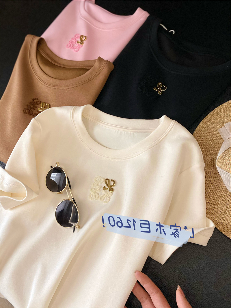 아울렛 ~ 철수 여성 중공업 타월 자수 캐주얼 크루 넥 반팔 티셔츠 여성용 여름 뉴 루즈 재킷