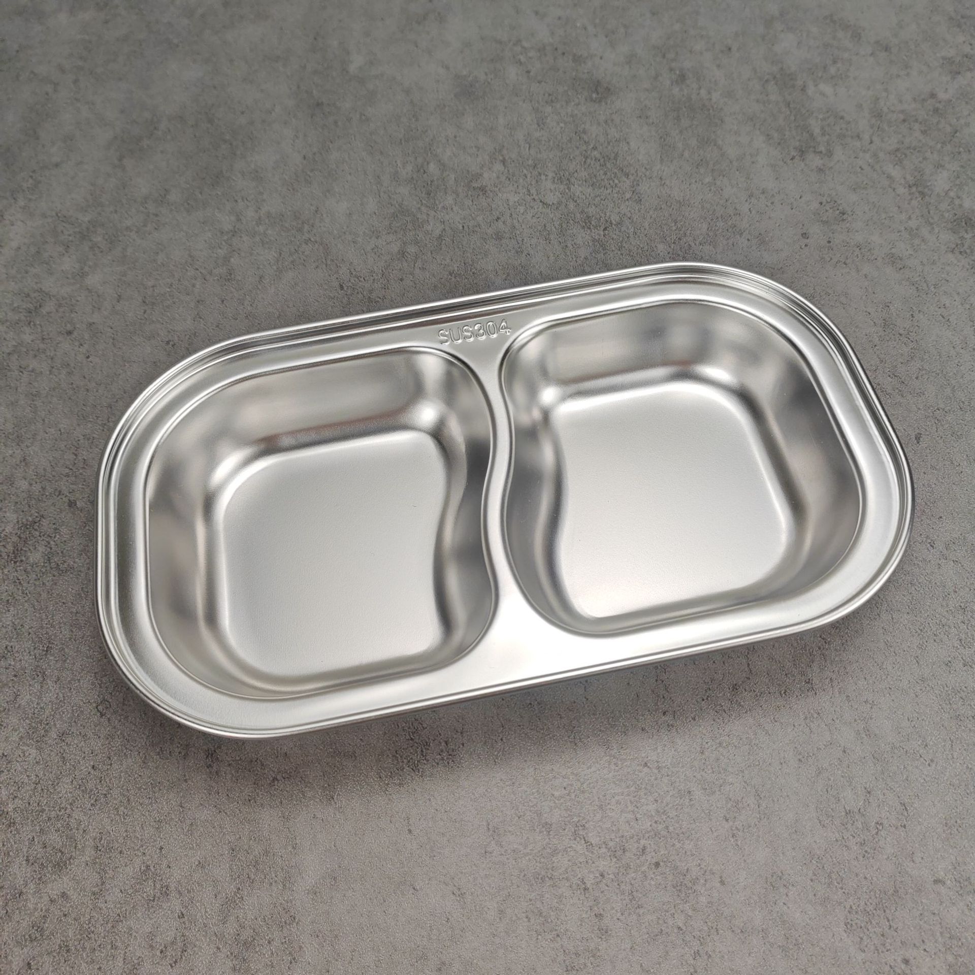 304 스테인리스 한국식 식판 분할 간식 접시 두 칸 사각 접시 유치원 어린이 패스트푸드 접시 트레이 식기