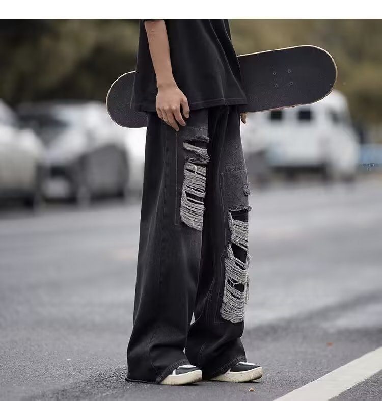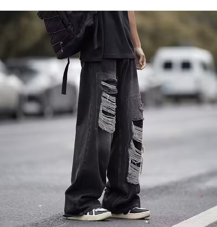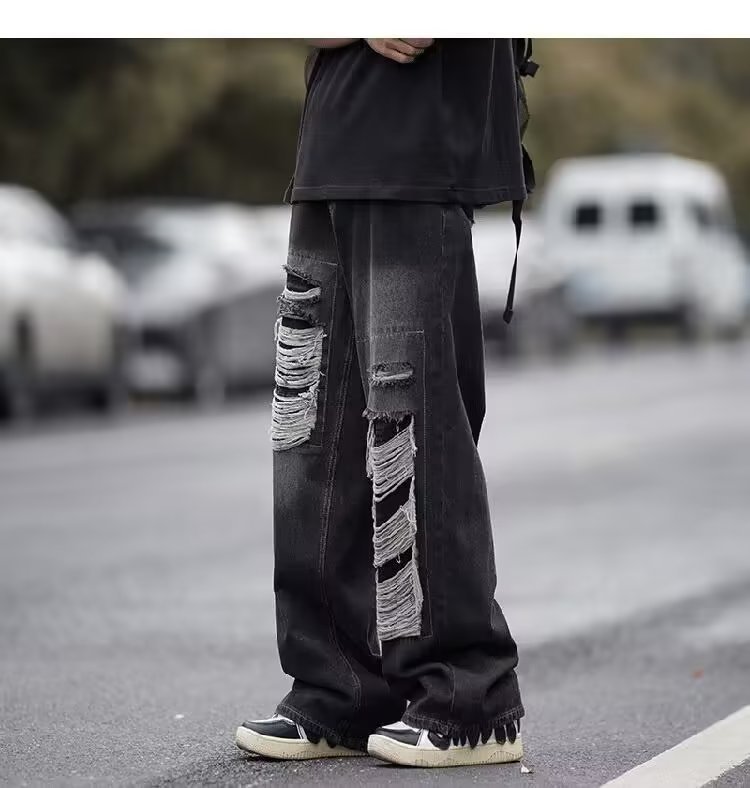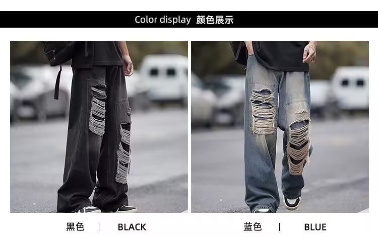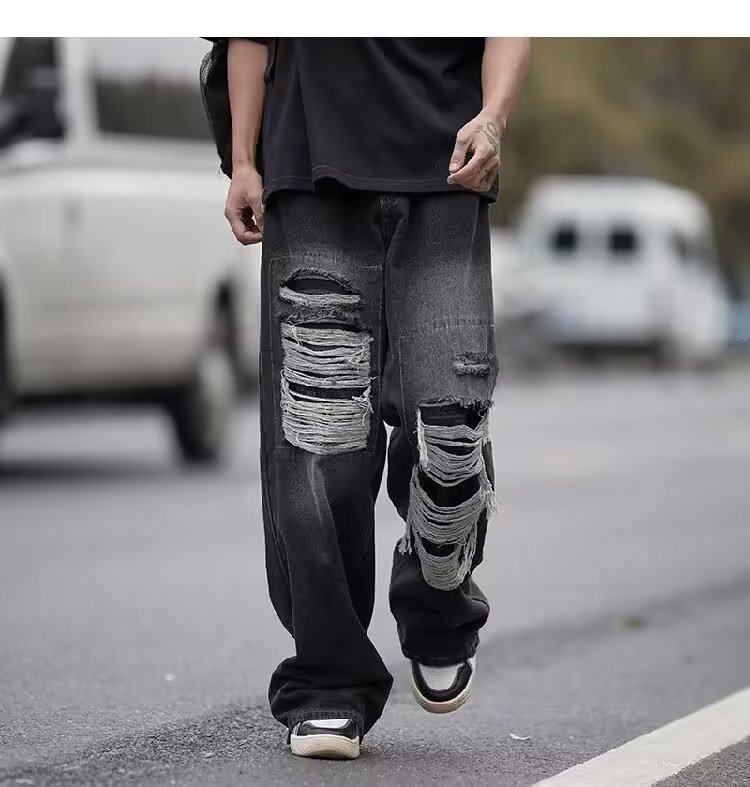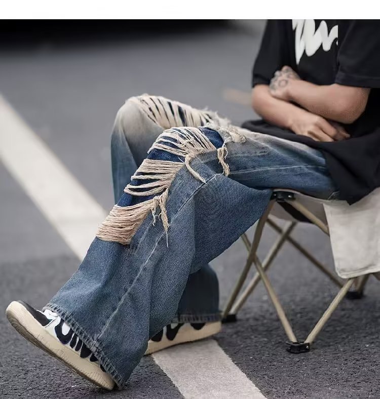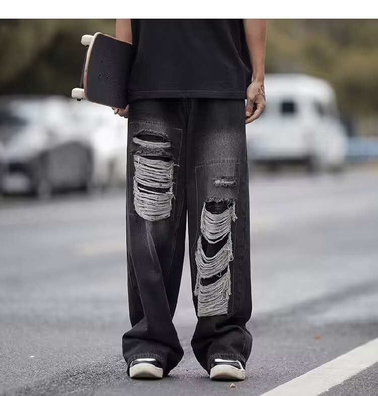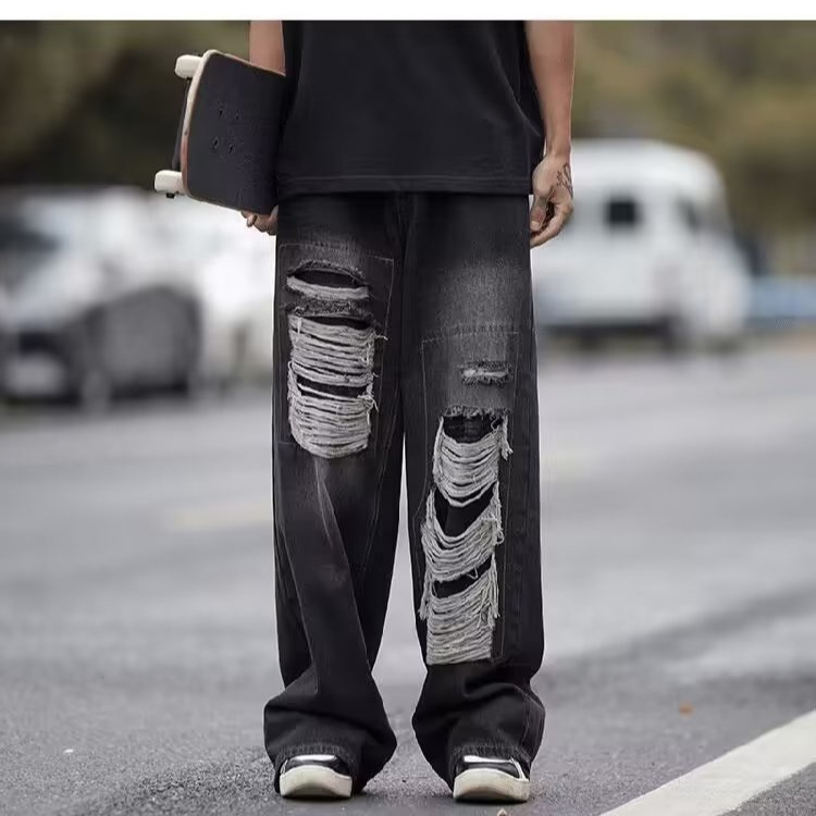아메리칸 스타일 레트로 찢어진 청바지 남성용 여름 오래 된 느슨한 넓은 다리 스트레이트 튜브 트렌디 브랜드 하이 스트리트 팬츠