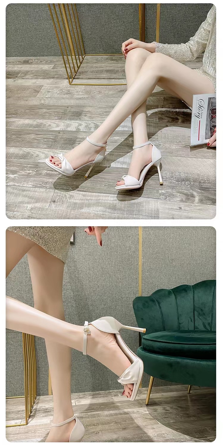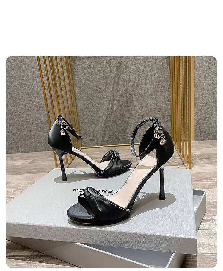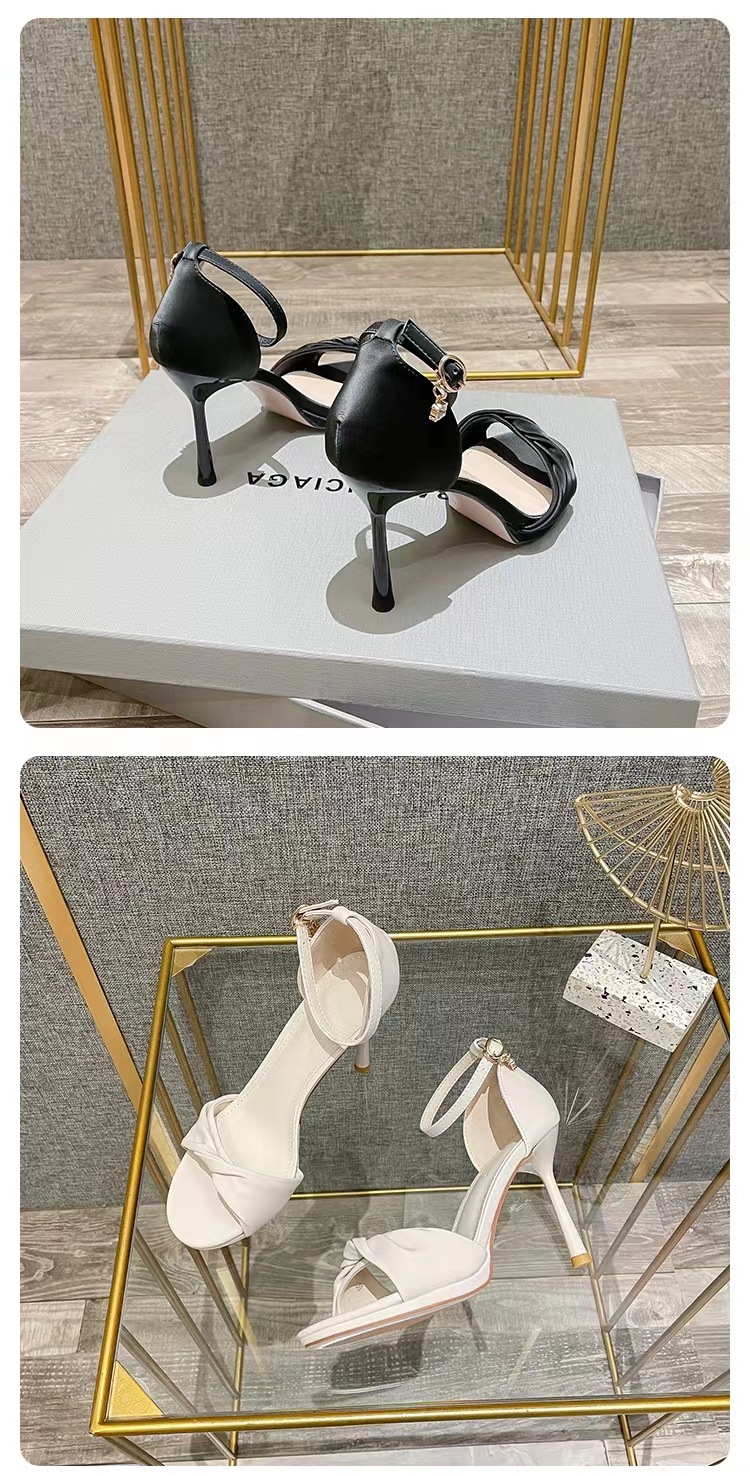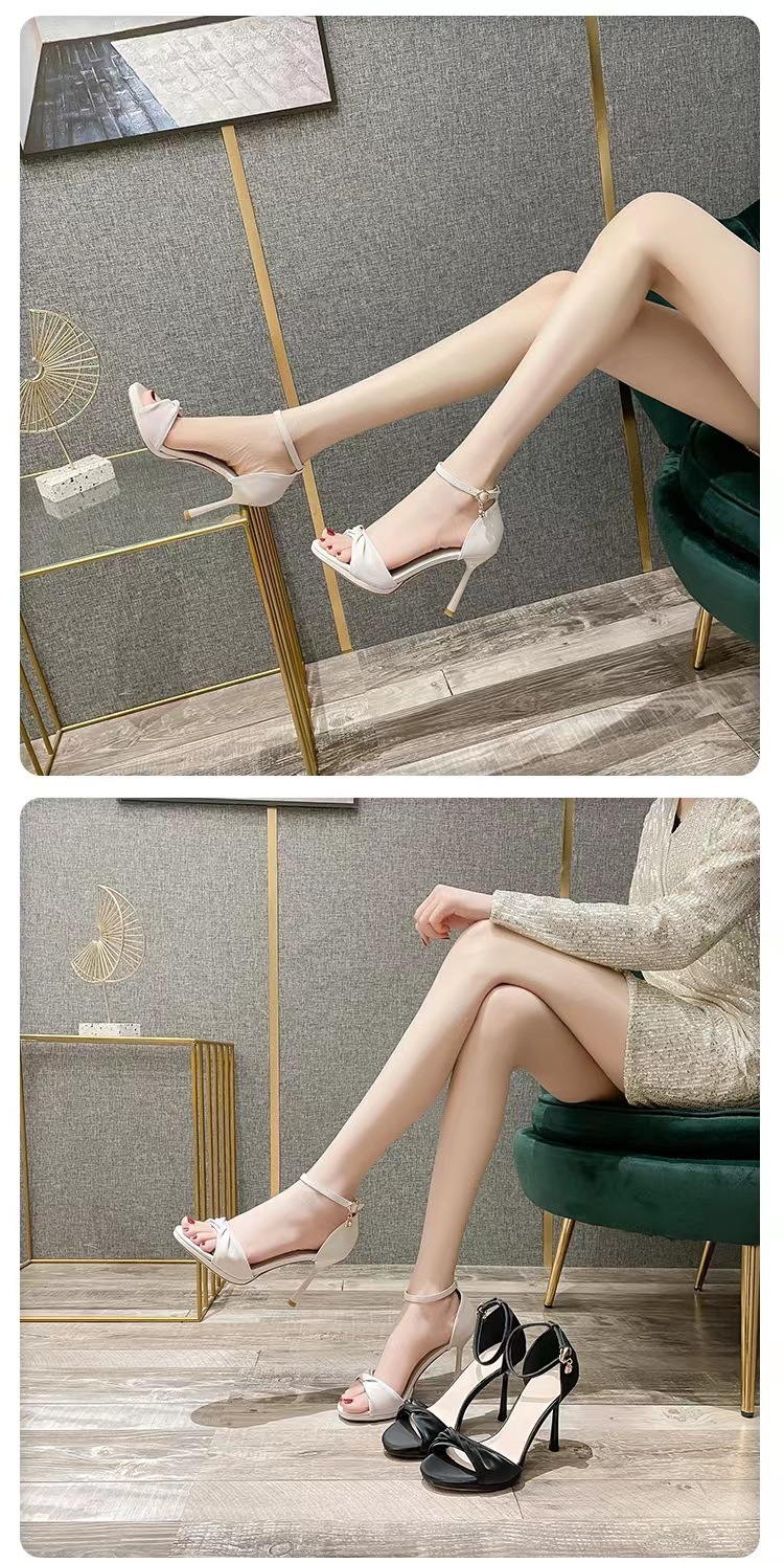 여성용 하이힐 2025년 여름 신상품 원스트랩 트위스트 블랙 스틸레토 섹시하고 아름다운 다용도 오픈토 샌들