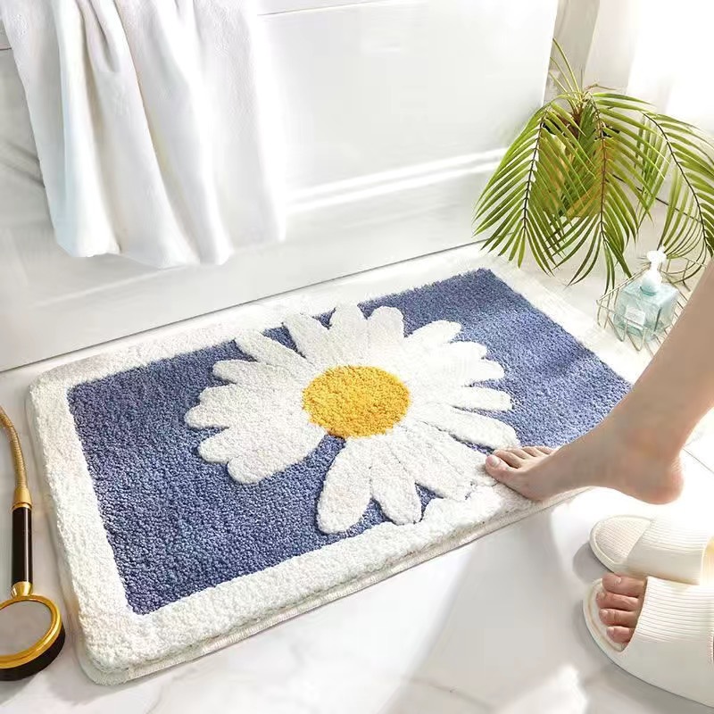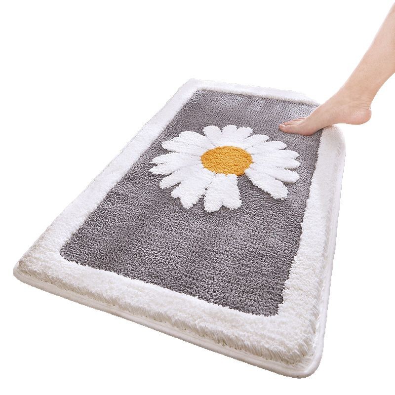 가정용 욕실 화장실 욕실 방수 미끄럼 방지 및 얼룩 방지 바닥 매트를위한 작은 신선한 꽃 플러시 모조 캐시미어 바닥 매트