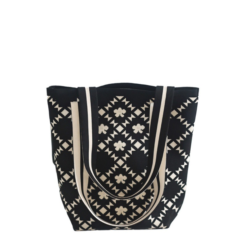 대용량 니트 백 2024 새로운 여성용 가방 인기있는 서양 스타일 올 매치 숄더 백 토트 백 버킷 백 사첼