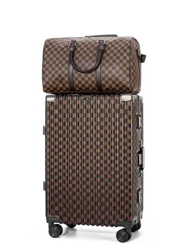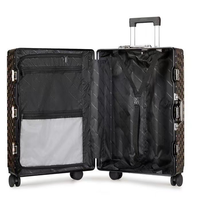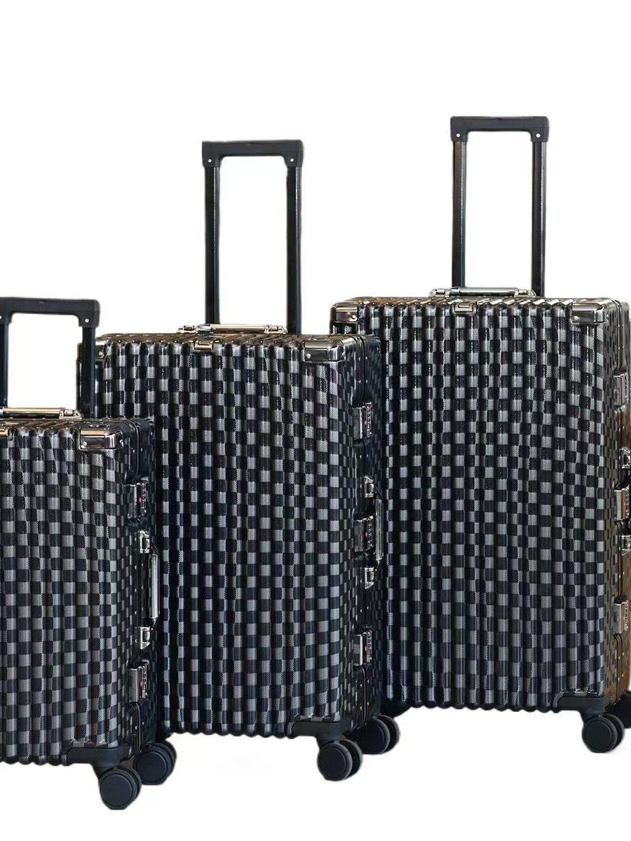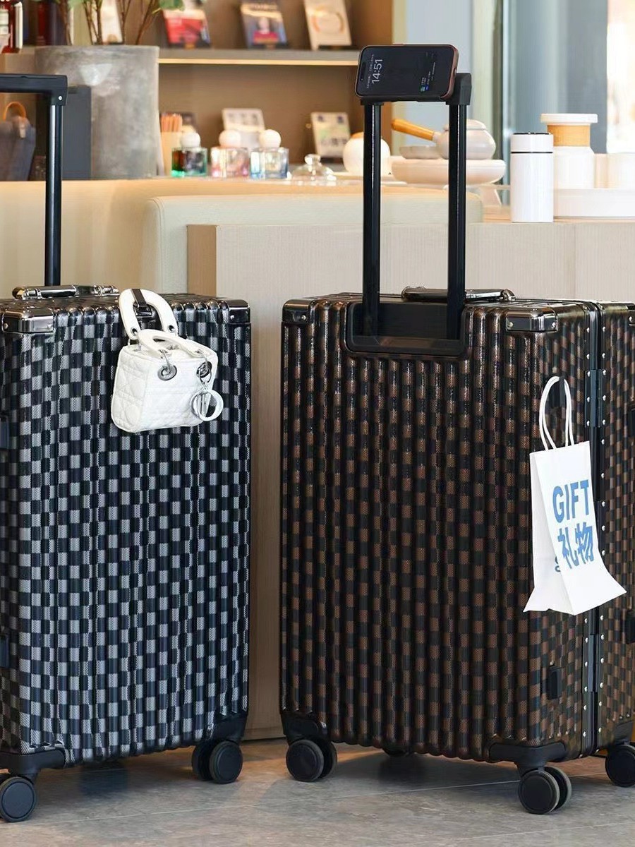 체커보드 무늬 트롤리 캐리어, 무소음 회전 바퀴 여행가방, 20inch 기내용 캐리어, 남녀공용 학생용 트롤리 캐리어