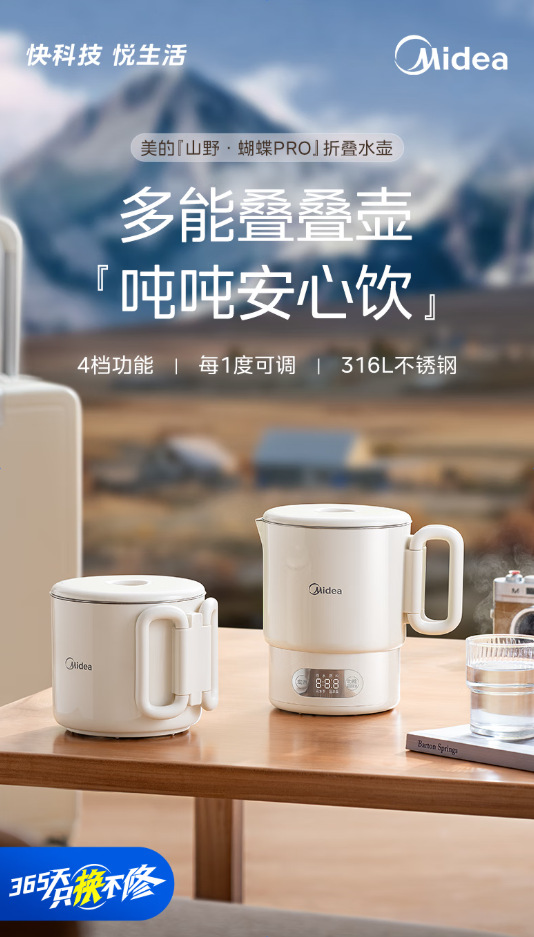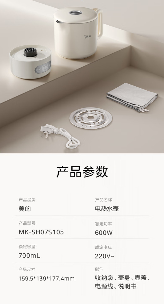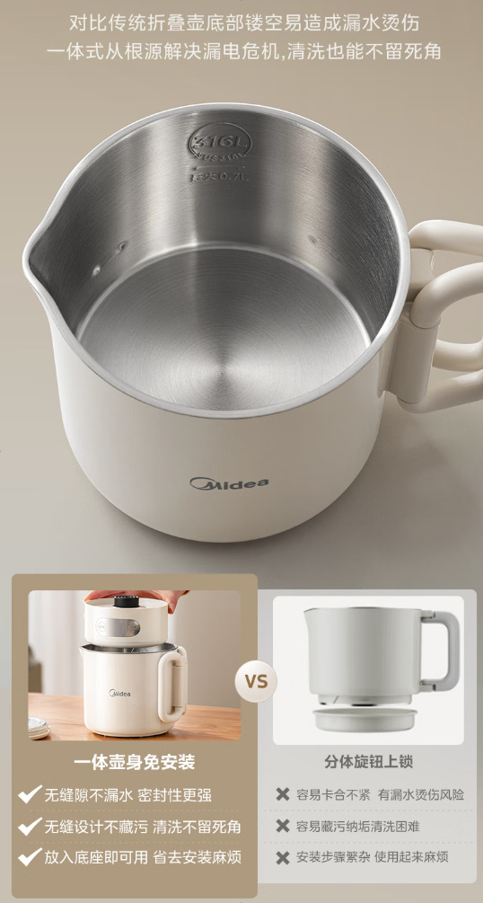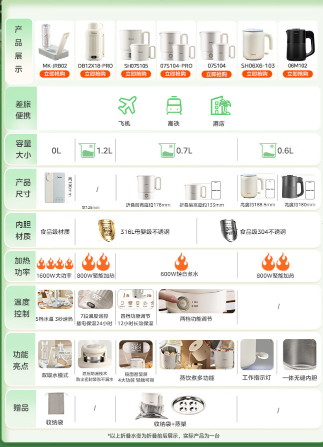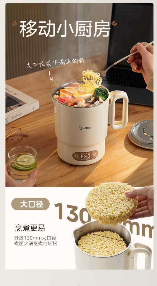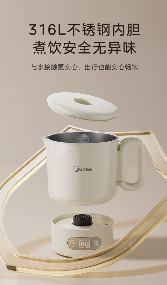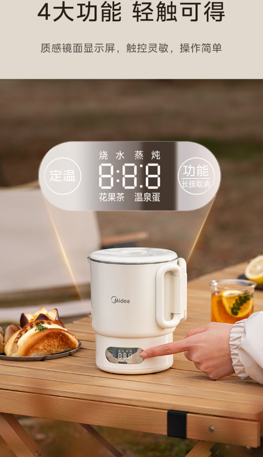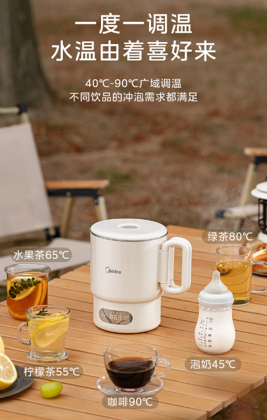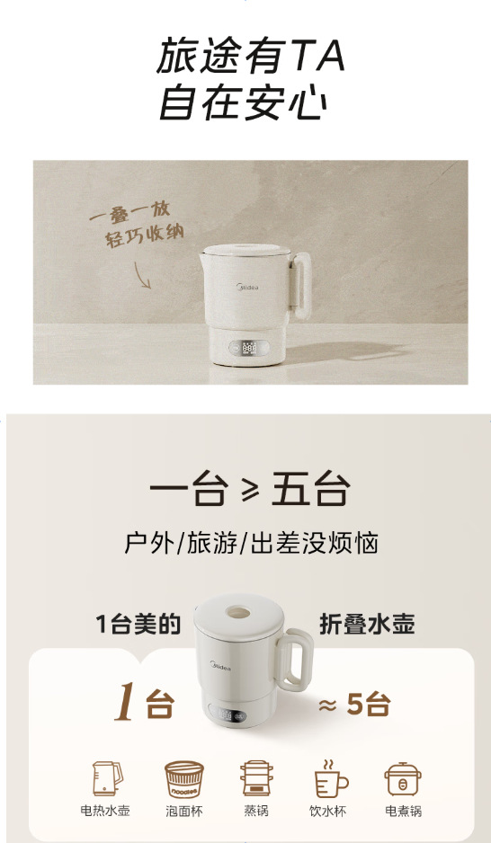 Midea 휴대용 전기 주전자 접이식 스테인레스 스틸 주전자 여행 및 출장 가정용 주전자 MK-SH07S105