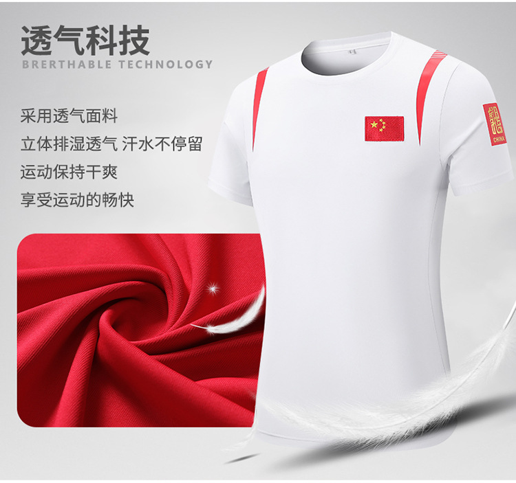 중국 팀 티셔츠 수영 코치, 빠른 건조 스포츠 반팔 피트니스 농구 어린이 무술 국가 의류 도매