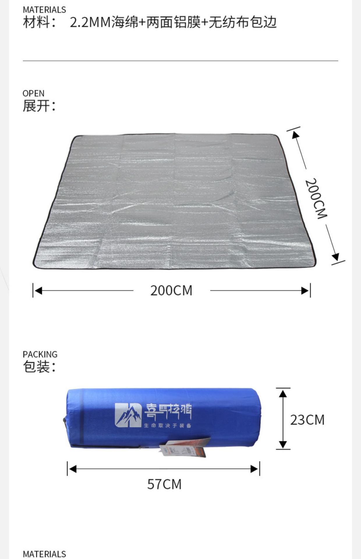 히말라야 알루미늄 필름 방습 매트 야외 캠핑 텐트용 매트 피크닉 매트 해변 매트 휴대용 방수 알루미늄 호일