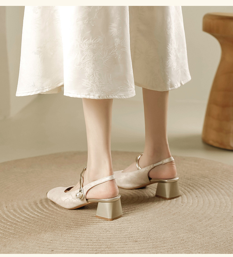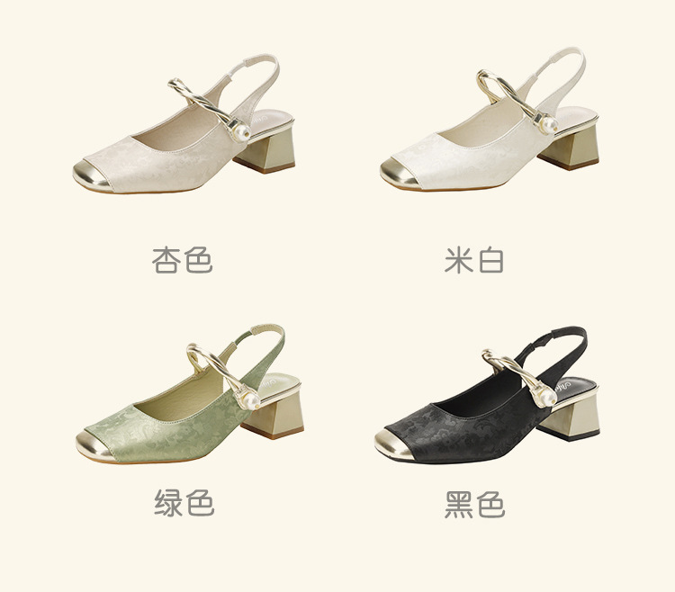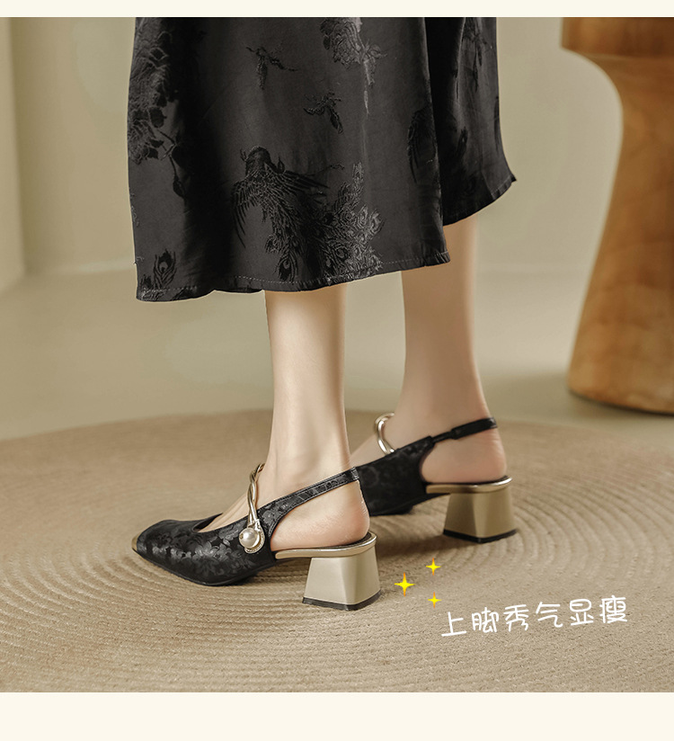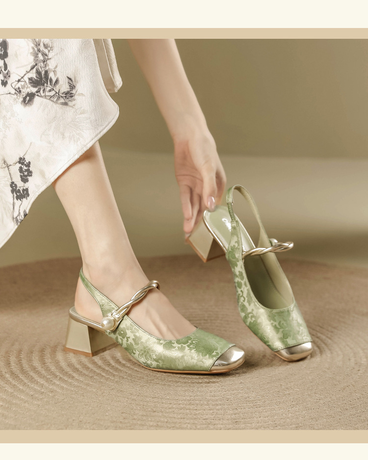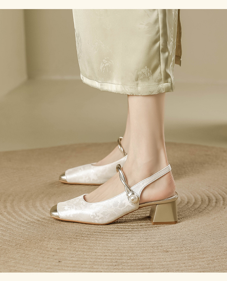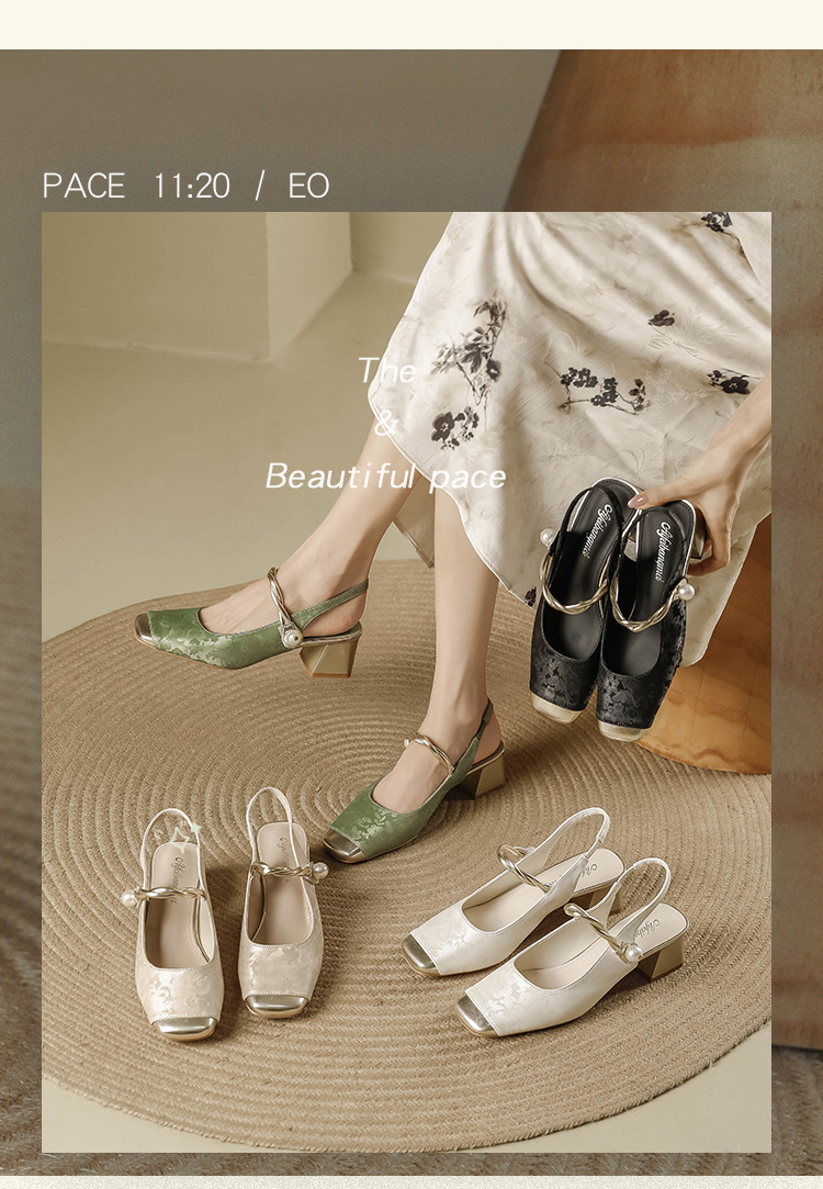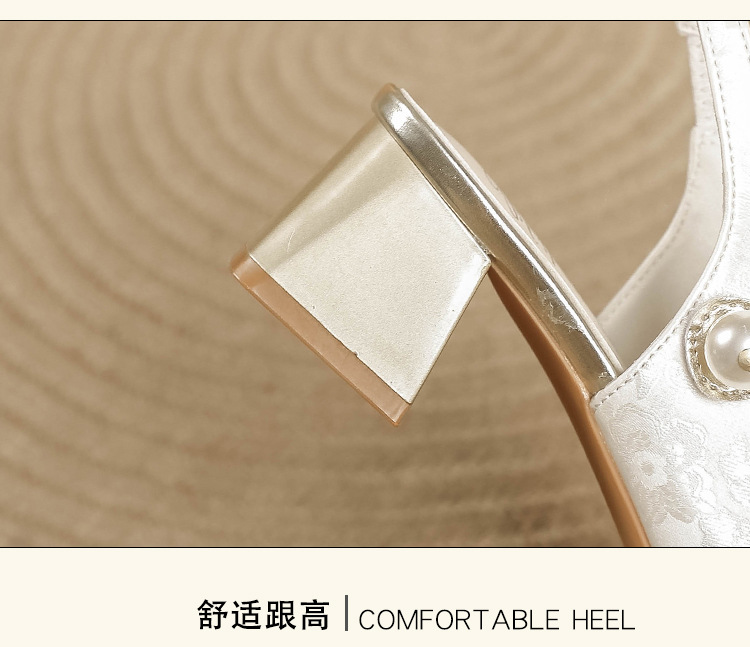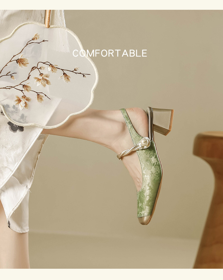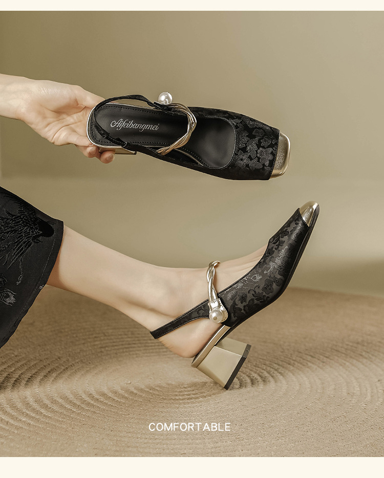 진주 샌들을 곁들인 재고 내셔널 스타일 샌들 두꺼운 힐 컬러 블록 여름 메리 제인 하이힐 신발 후면 빈 샌들