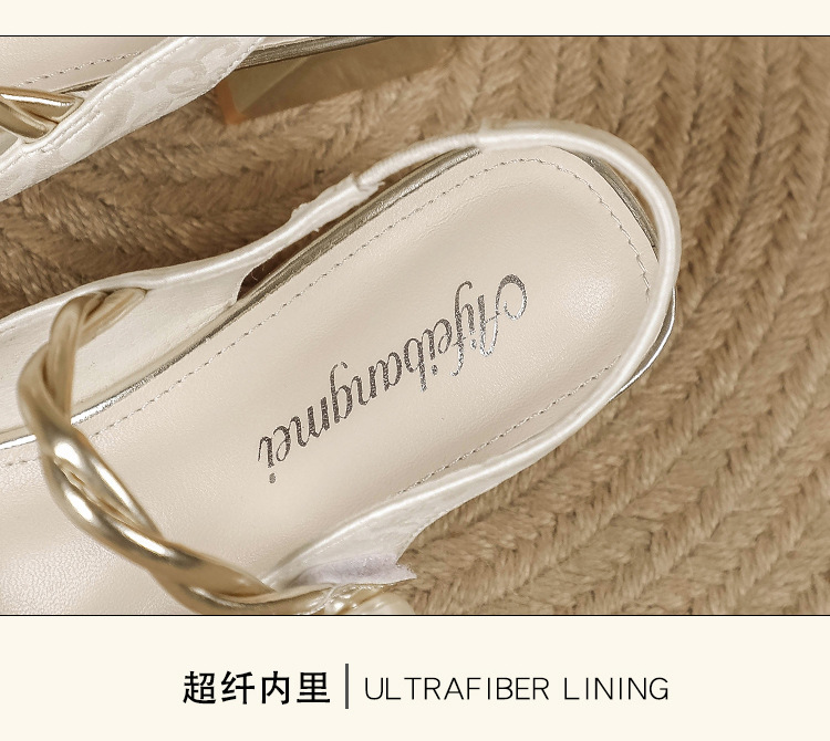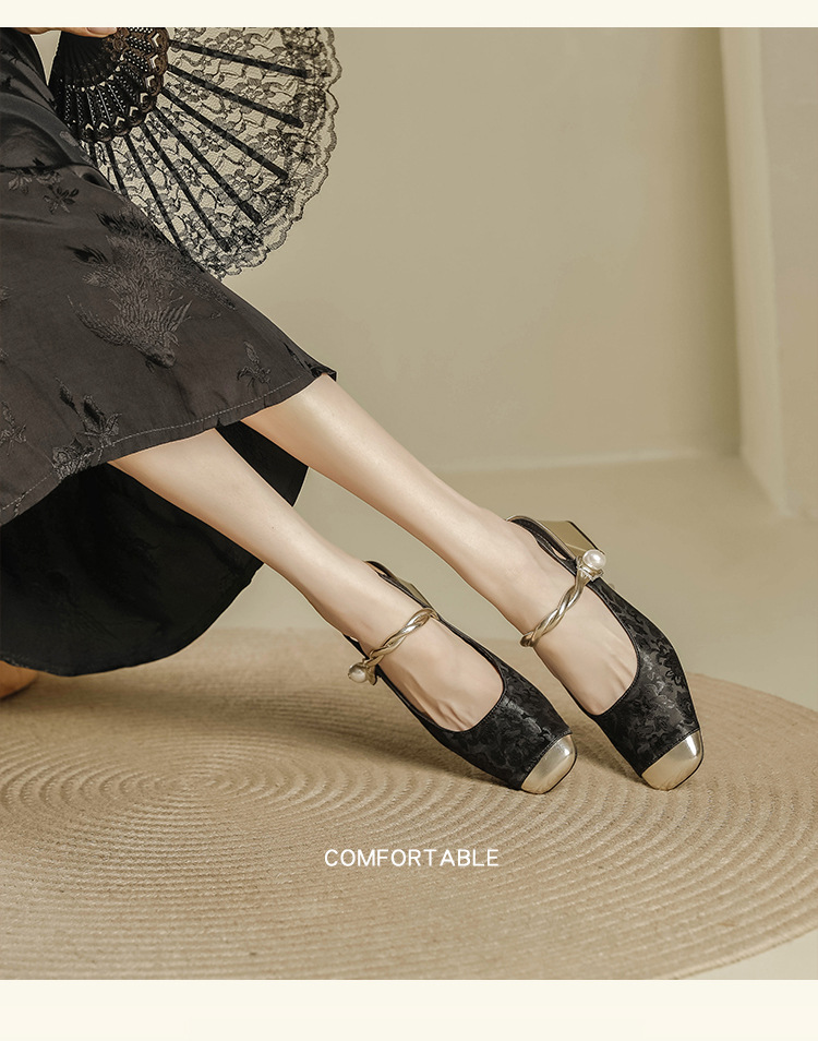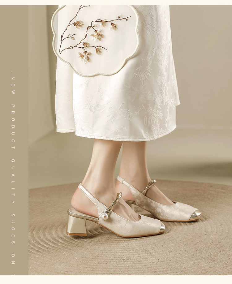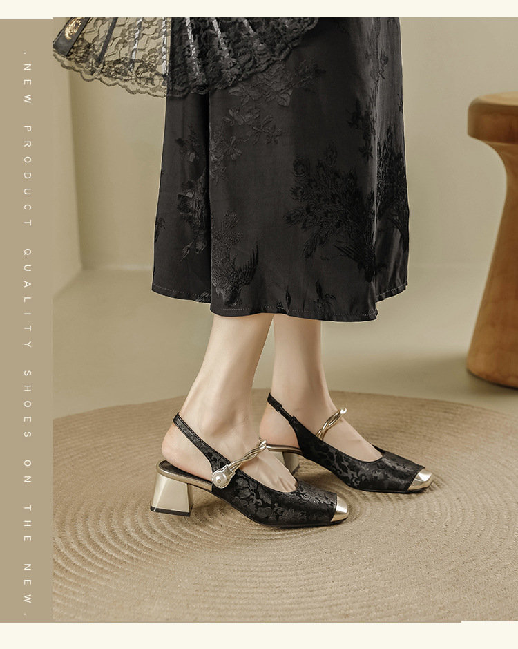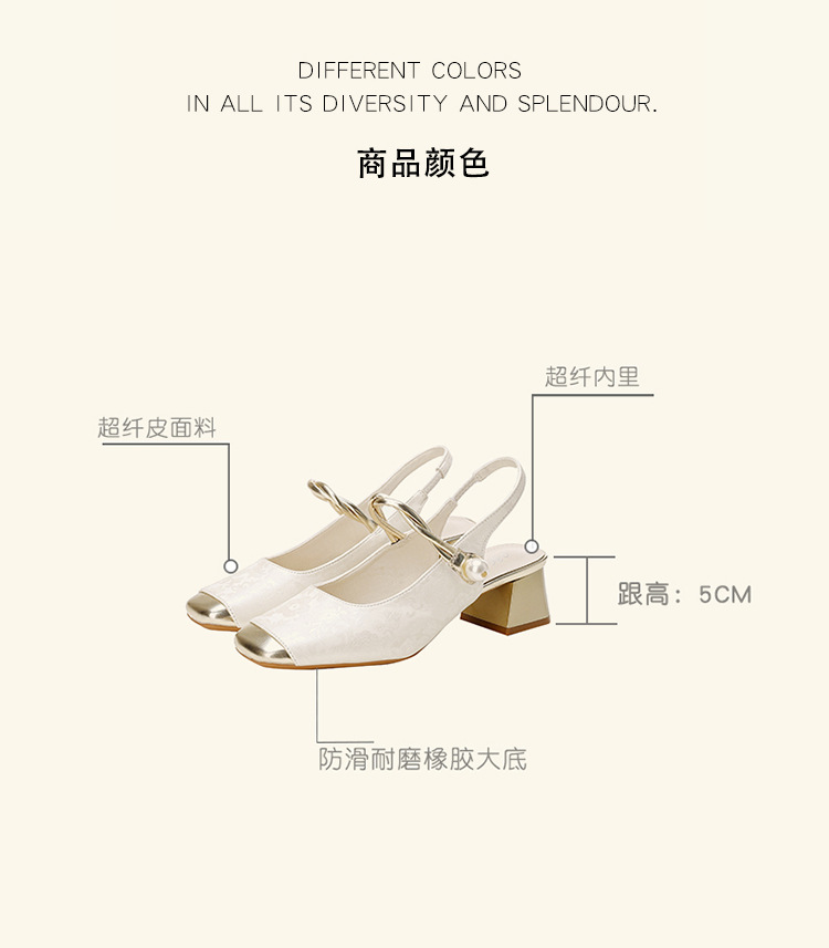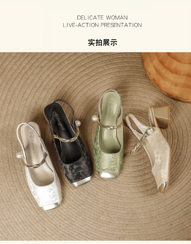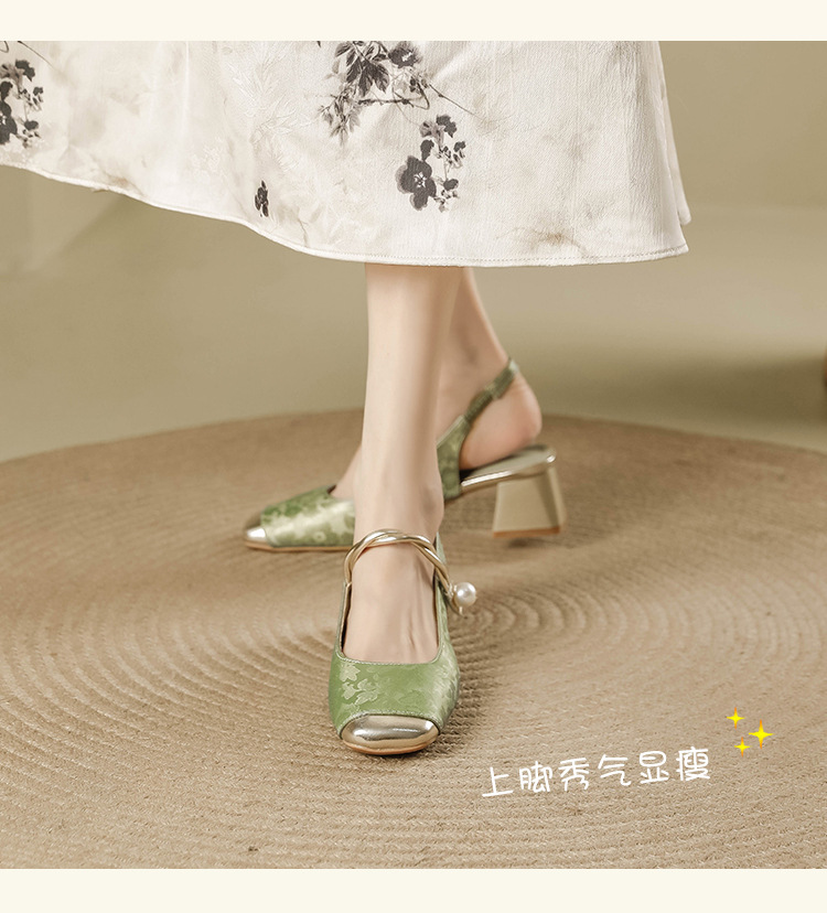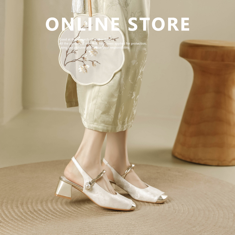 진주 샌들을 곁들인 재고 내셔널 스타일 샌들 두꺼운 힐 컬러 블록 여름 메리 제인 하이힐 신발 후면 빈 샌들