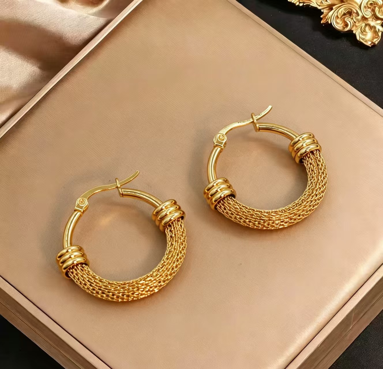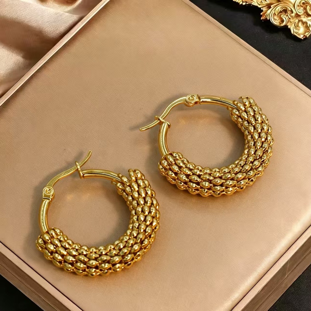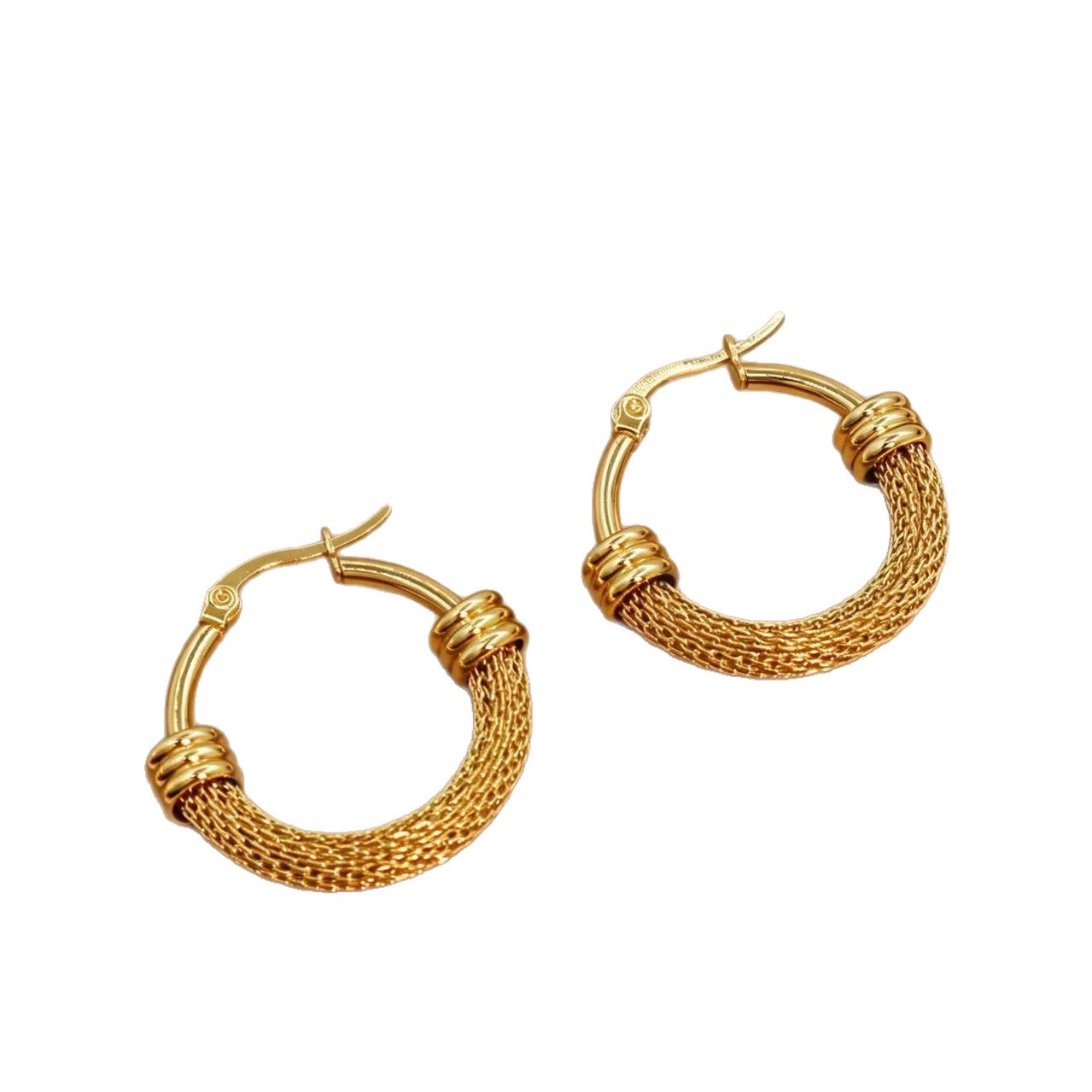 국경을 넘는 인기 상품, 메쉬 반망사 감김 귀걸이, 새로운 중국 스타일 스테인리스 원형 땋은 귀걸이, 고급스러운 느낌