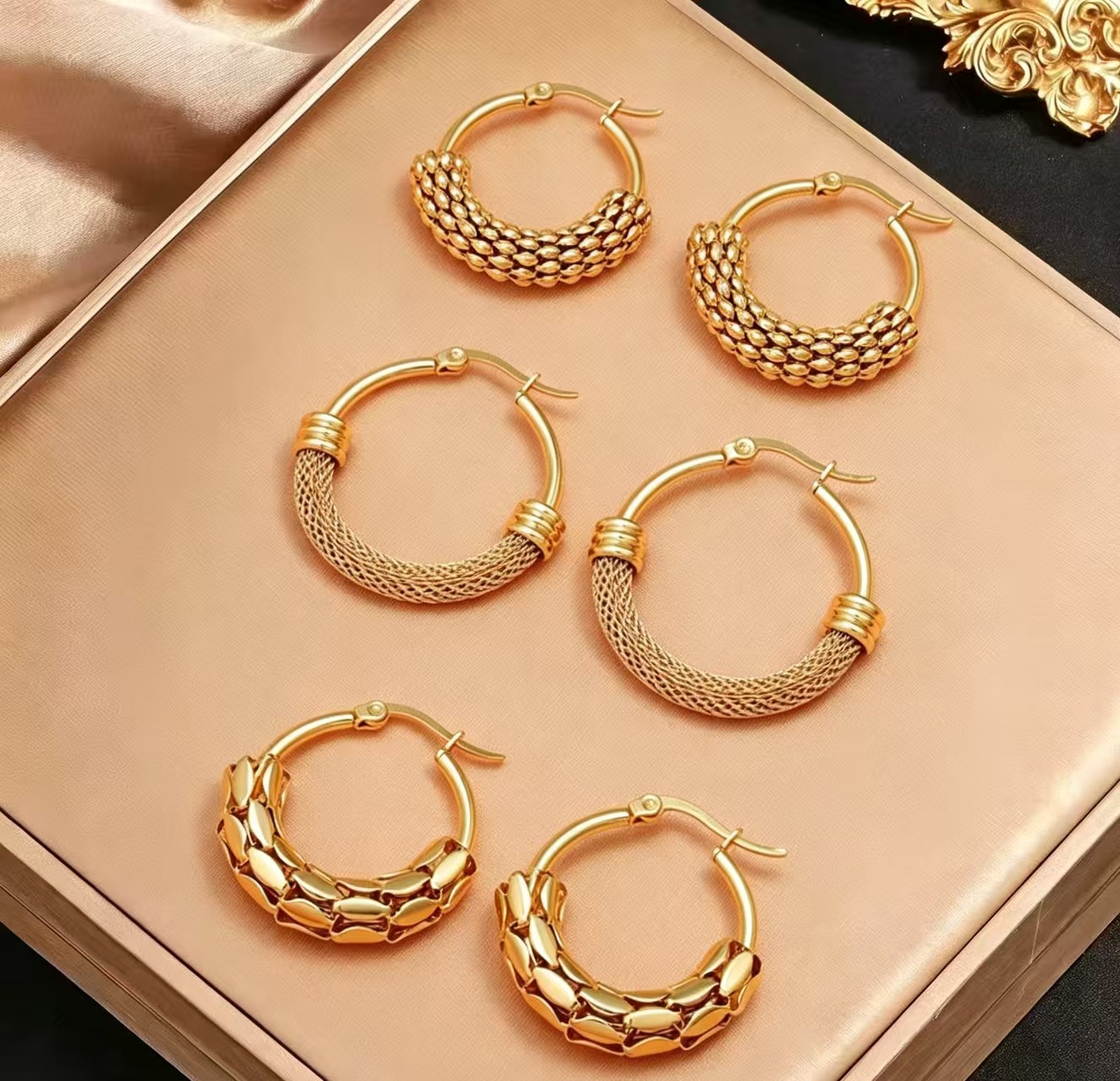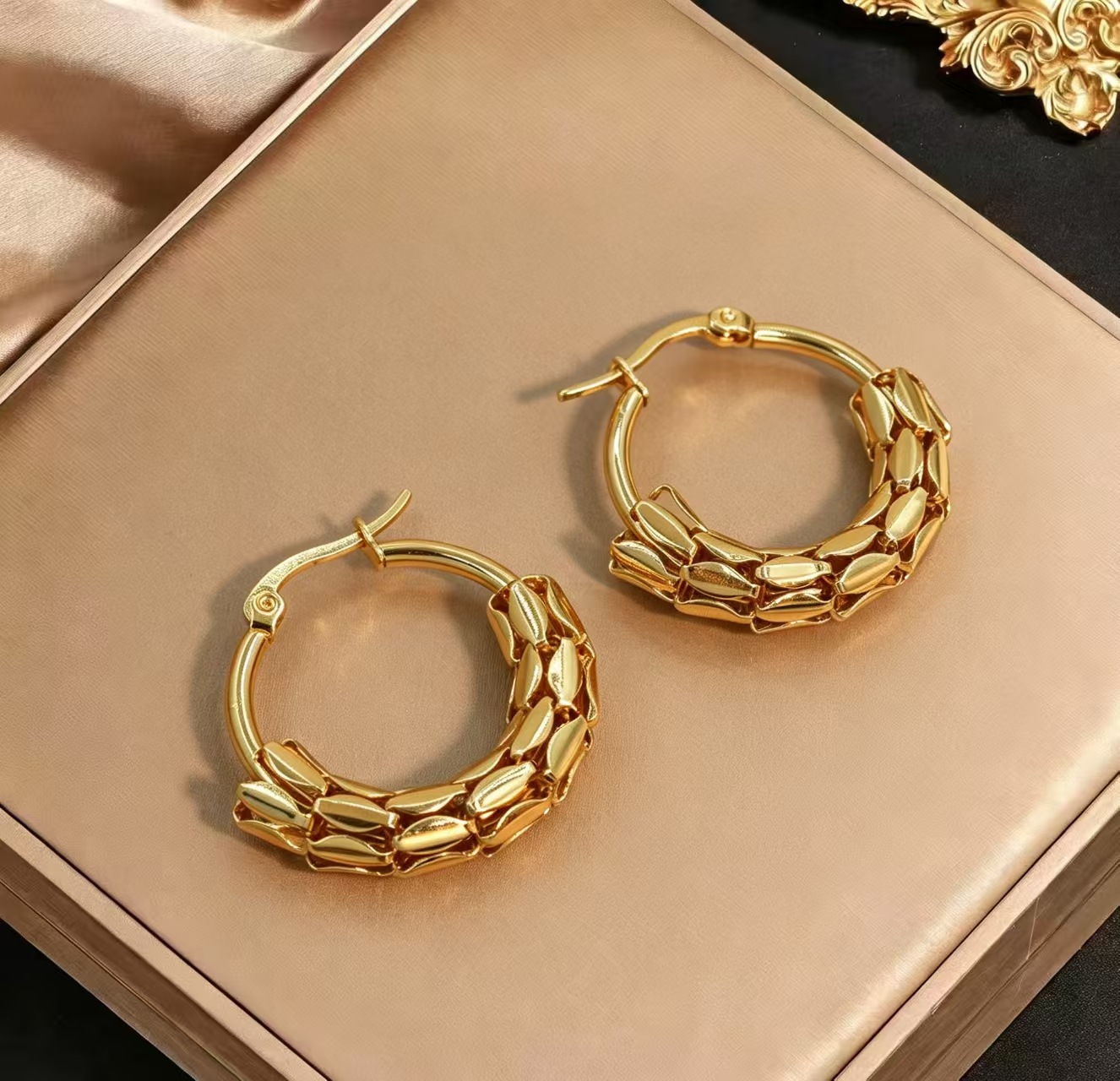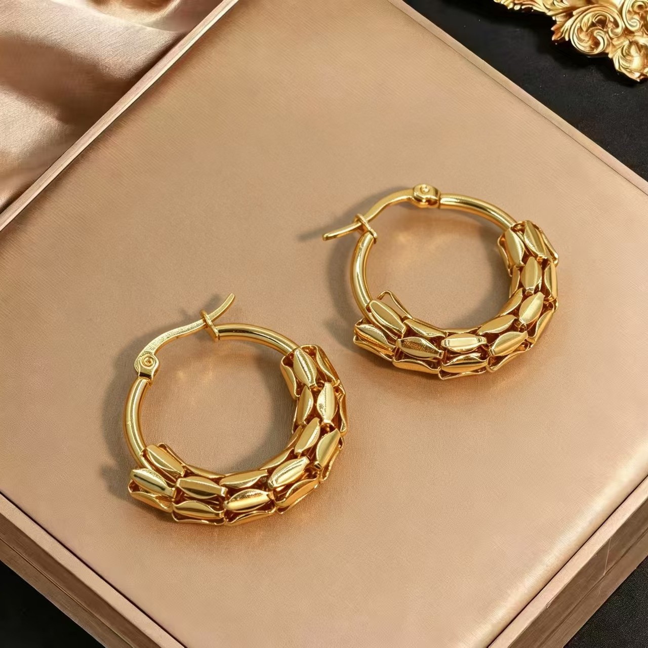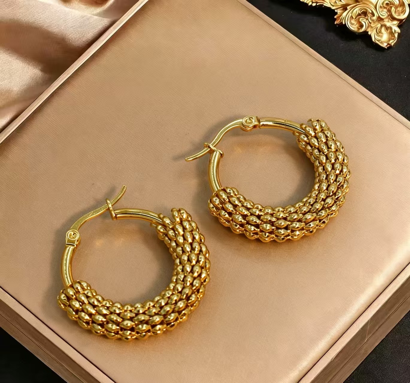 국경을 넘는 인기 상품, 메쉬 반망사 감김 귀걸이, 새로운 중국 스타일 스테인리스 원형 땋은 귀걸이, 고급스러운 느낌