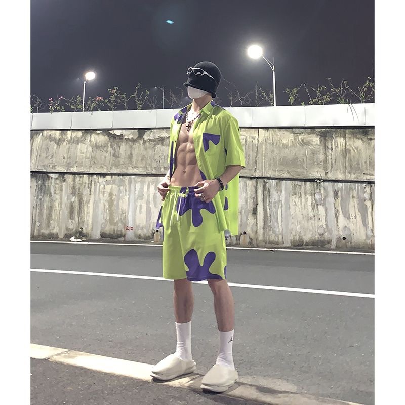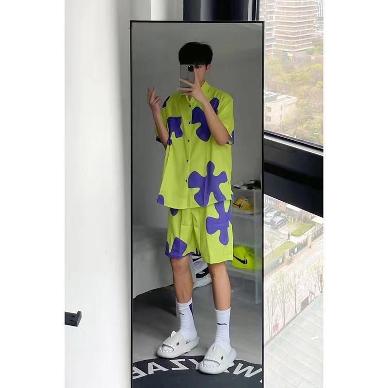 여름 새로운 패트릭 슬리핑 반바지 남자 비치 바지 하와이 세트 셔츠 스포츠 캐주얼 파자마 바지