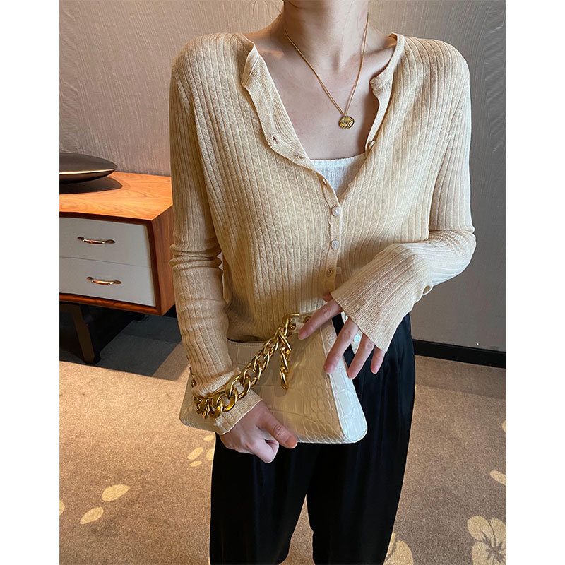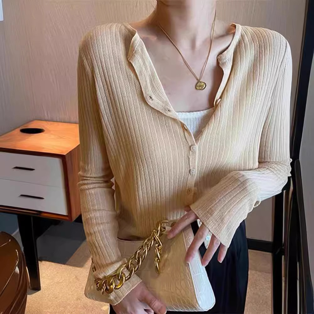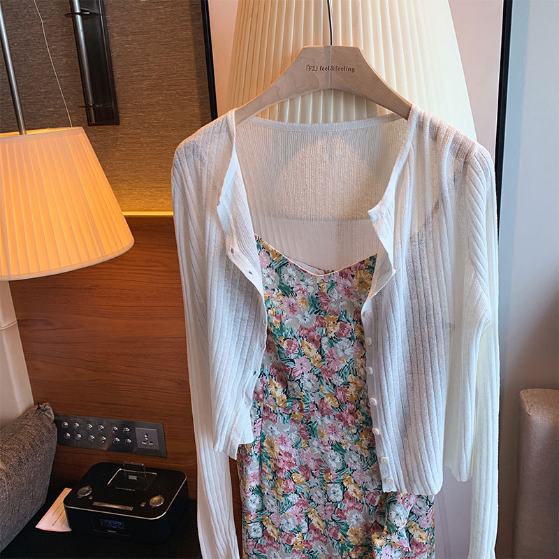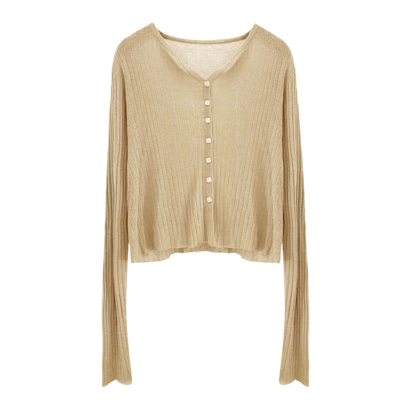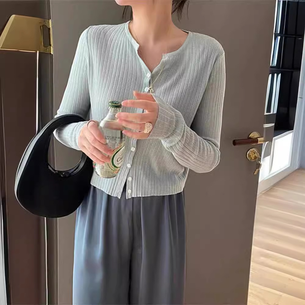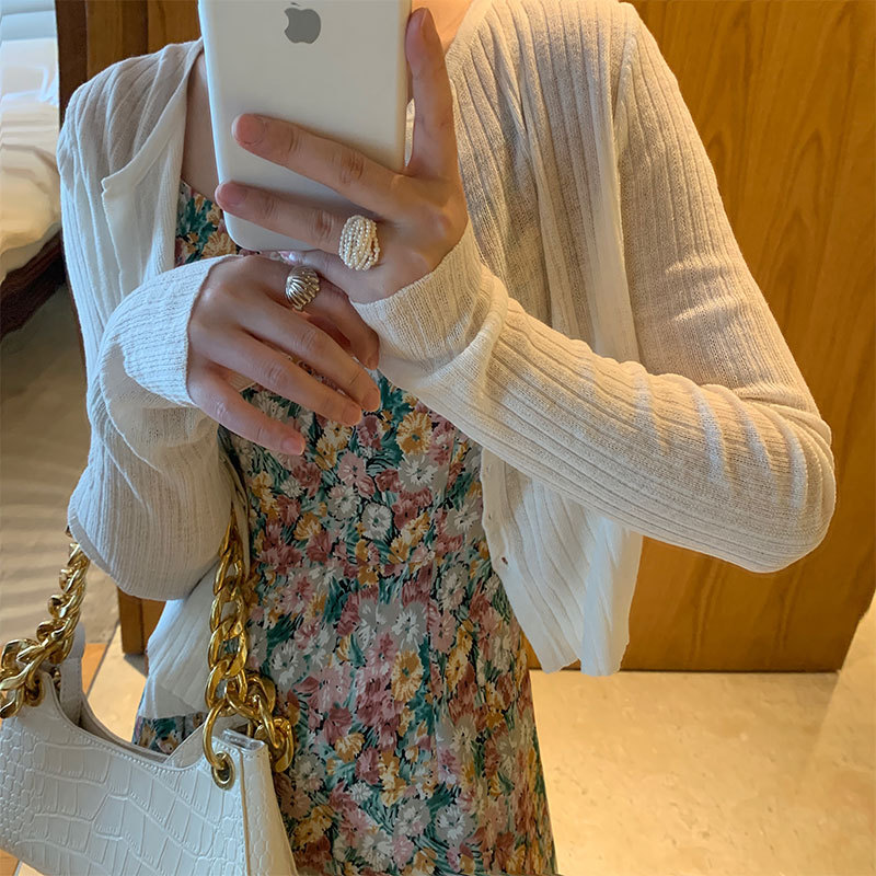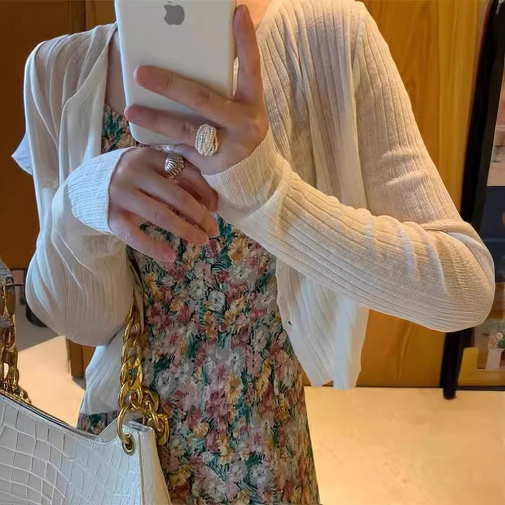 여름 아이스 실크 얇은 선 스크린 니트 카디건 여성용 짧은 목도리 블라우스 코트 하이 엔드 센스 우아한 아우터 탑