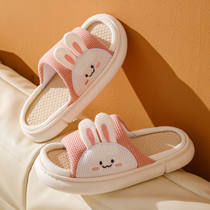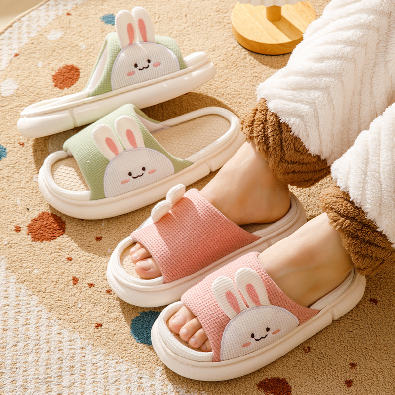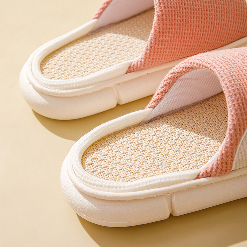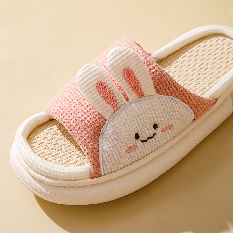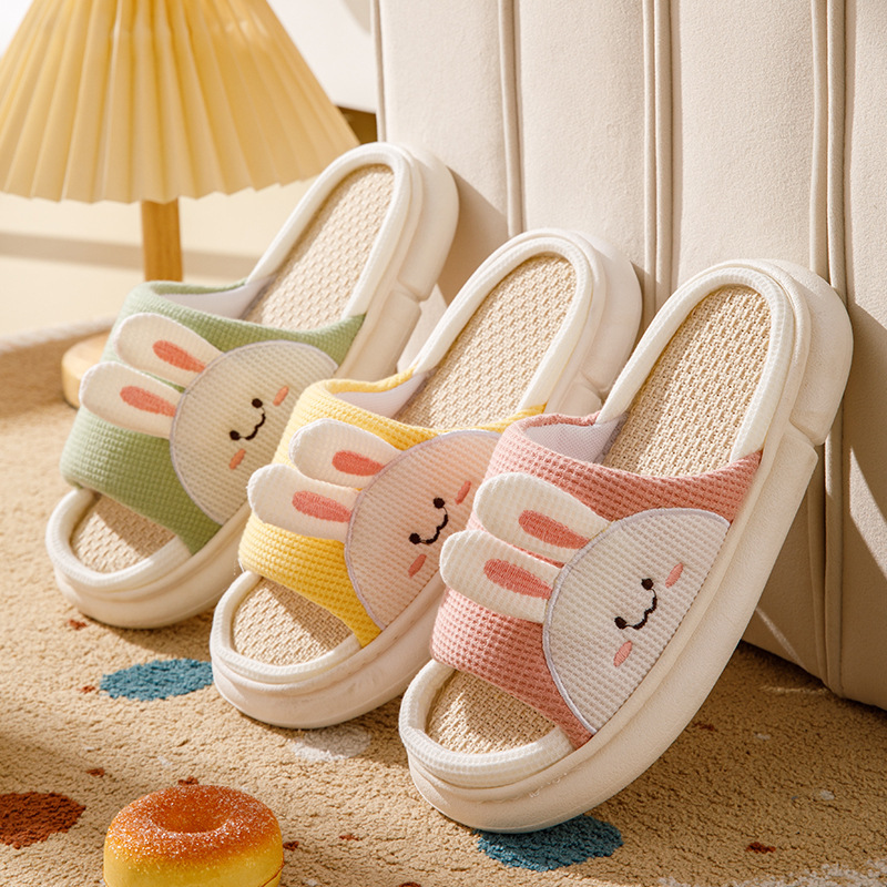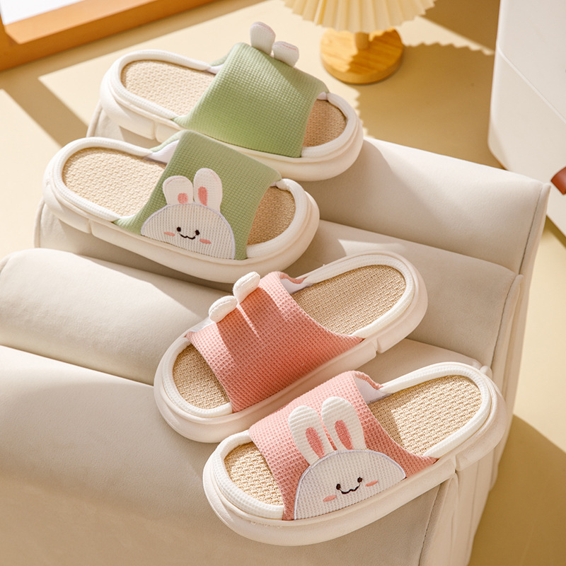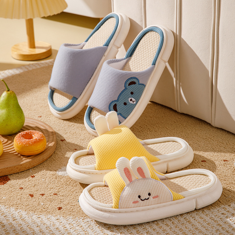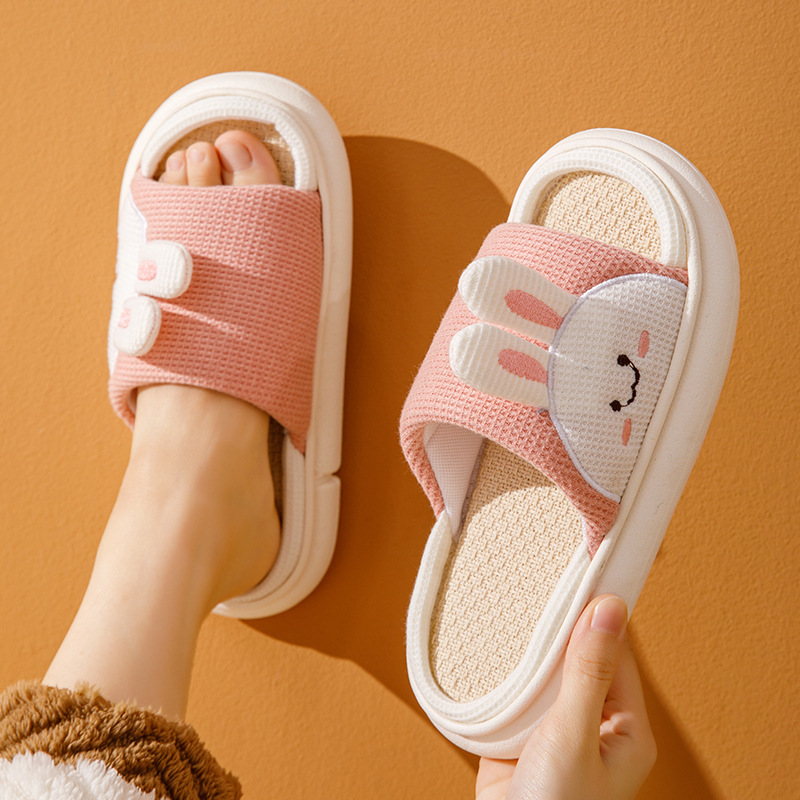 여성용 여름 실내 욕실을위한 귀여운 린넨 부드러운 밑창 슬리퍼 미끄럼 새 집 두꺼운 밑창 샌들 도매