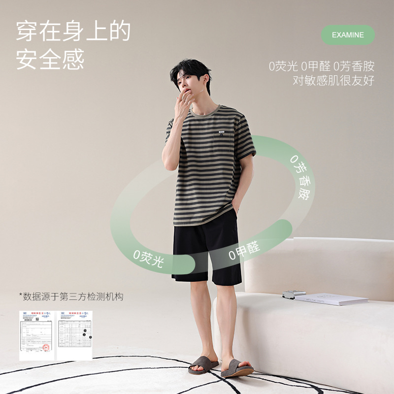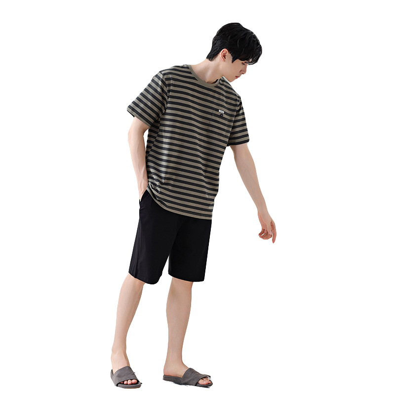 [면] 시원한 면 잠옷 남성 여름 고품질 부드러운 소년 대형 가정복 반팔 양복