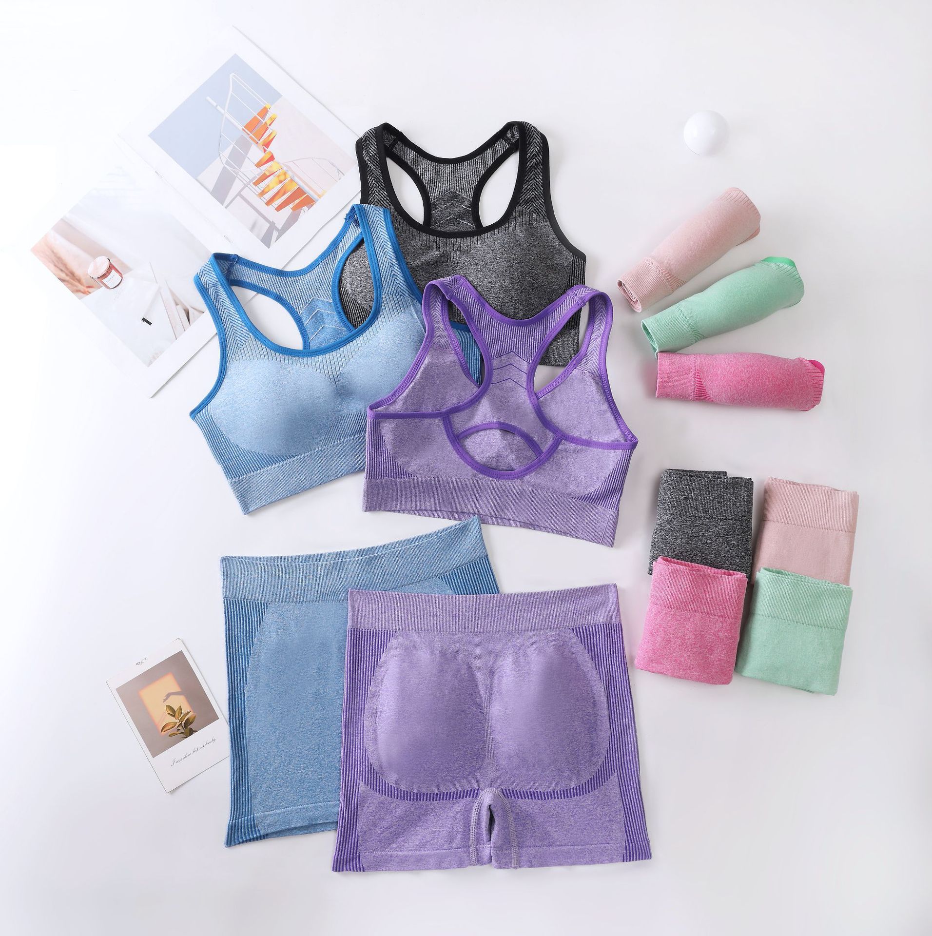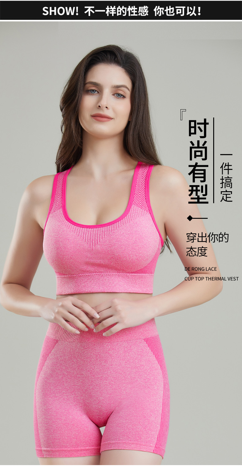국경 간 원활한 백 스포츠 브라 푸시 업 통기성 충격 러닝 요가 속옷 힙합 피트니스 조끼 세트
