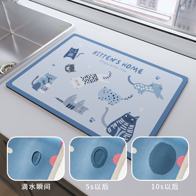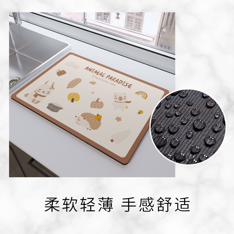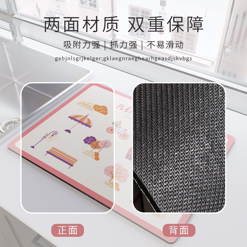 PU 플란넬 부드러운 규조 진흙 배수 패드 흡수성 빠른 건조 직사각형 주방 배수 패드 싱크 표면 흡수 패드