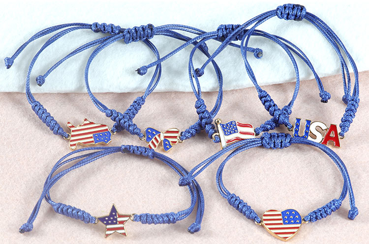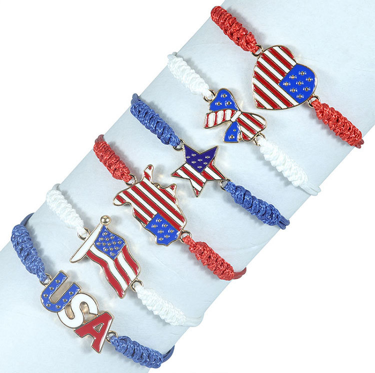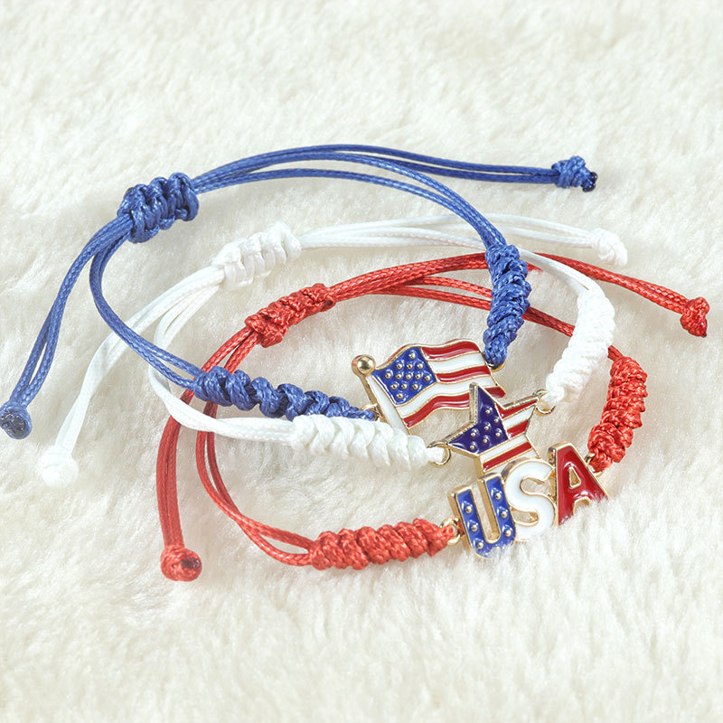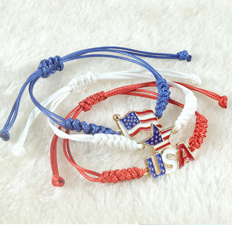 유럽과 미국 베스트 셀러 새로운 미국 5 각 별 수제 팔찌 미국 독립 기념일 깃발 손 로프 공장 직접 판매
