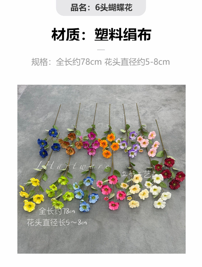 仿真蝴蝶花6头蝴蝶洋牡丹仿真花婚庆婚礼家居摆件软装样板间假花